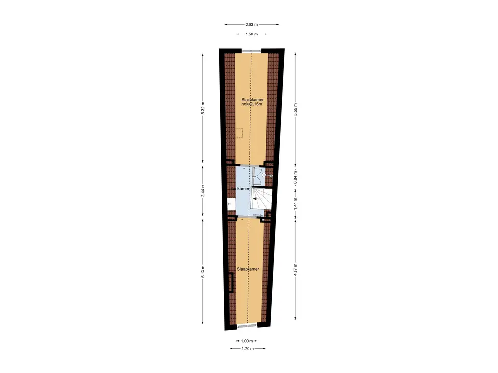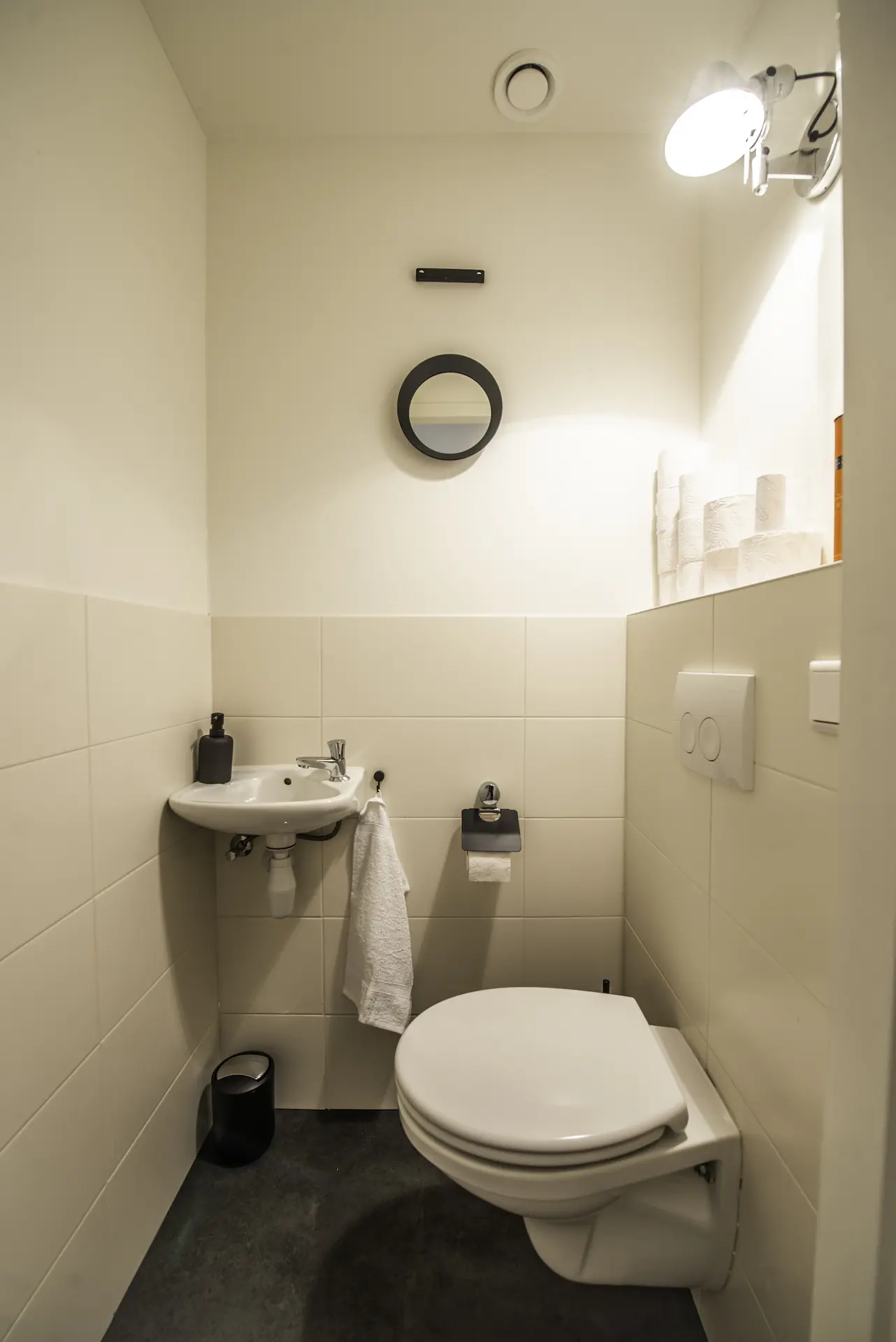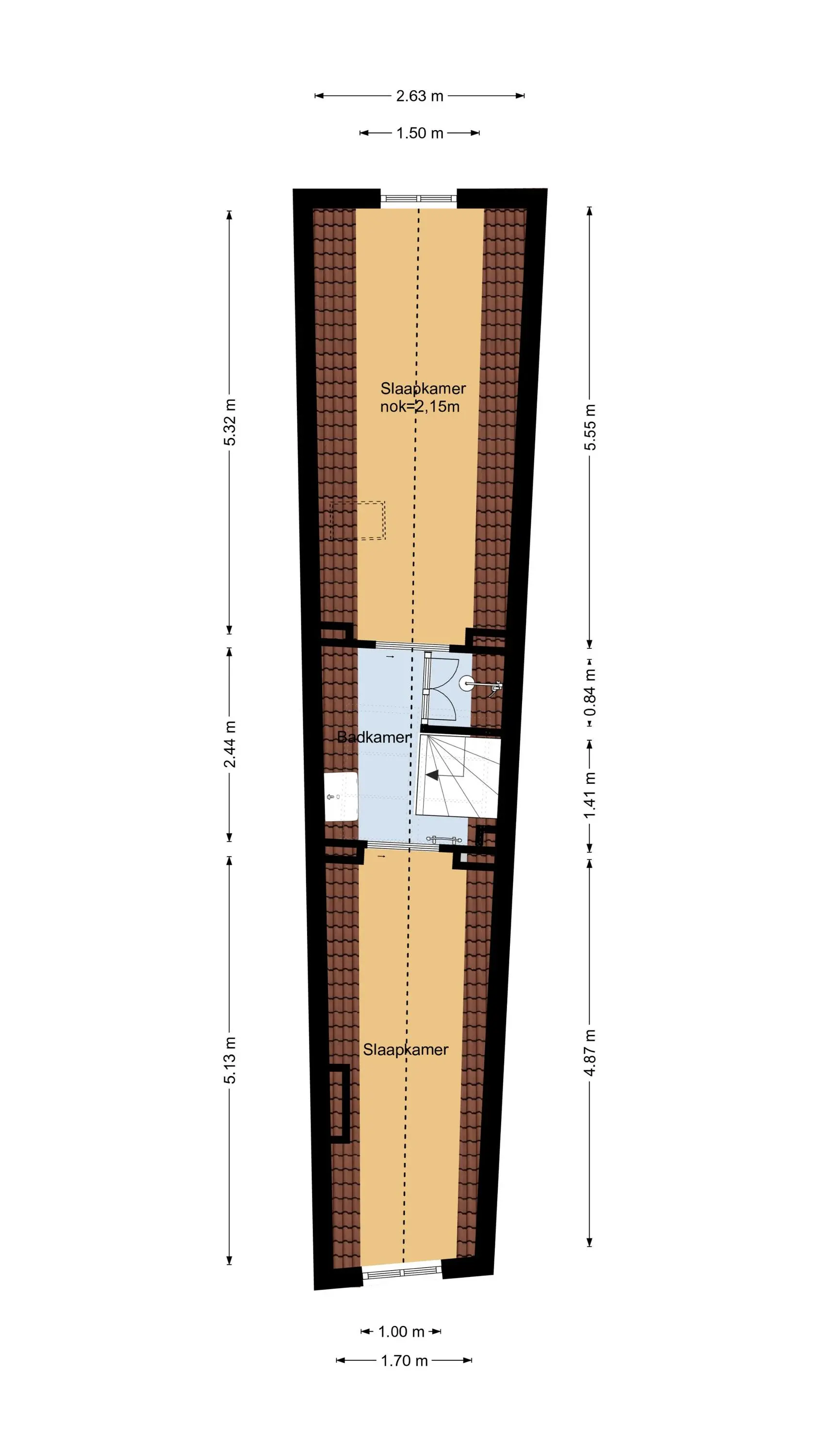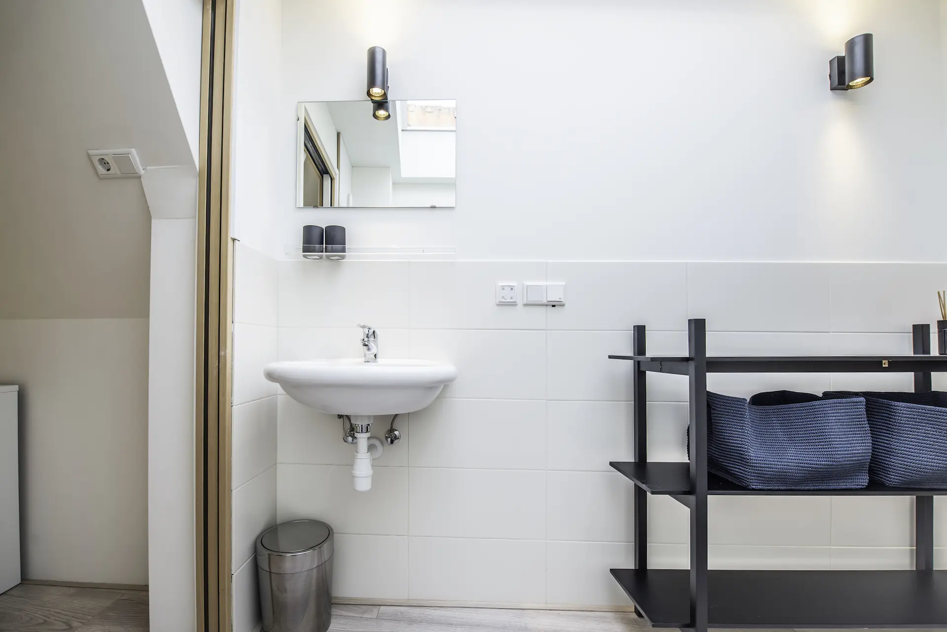 Via de spiltrap vanuit de keuken kom je op de verdieping met twee slaapkamers. Beide kamers beschikken over een raam of dakraam, waardoor er voldoende daglicht binnenkomt. De lichtstraat met dubbel glas zorgt voor extra licht en een ruimtelijk gevoel. Op de overloop vind je een douchecabine en een wastafel.
