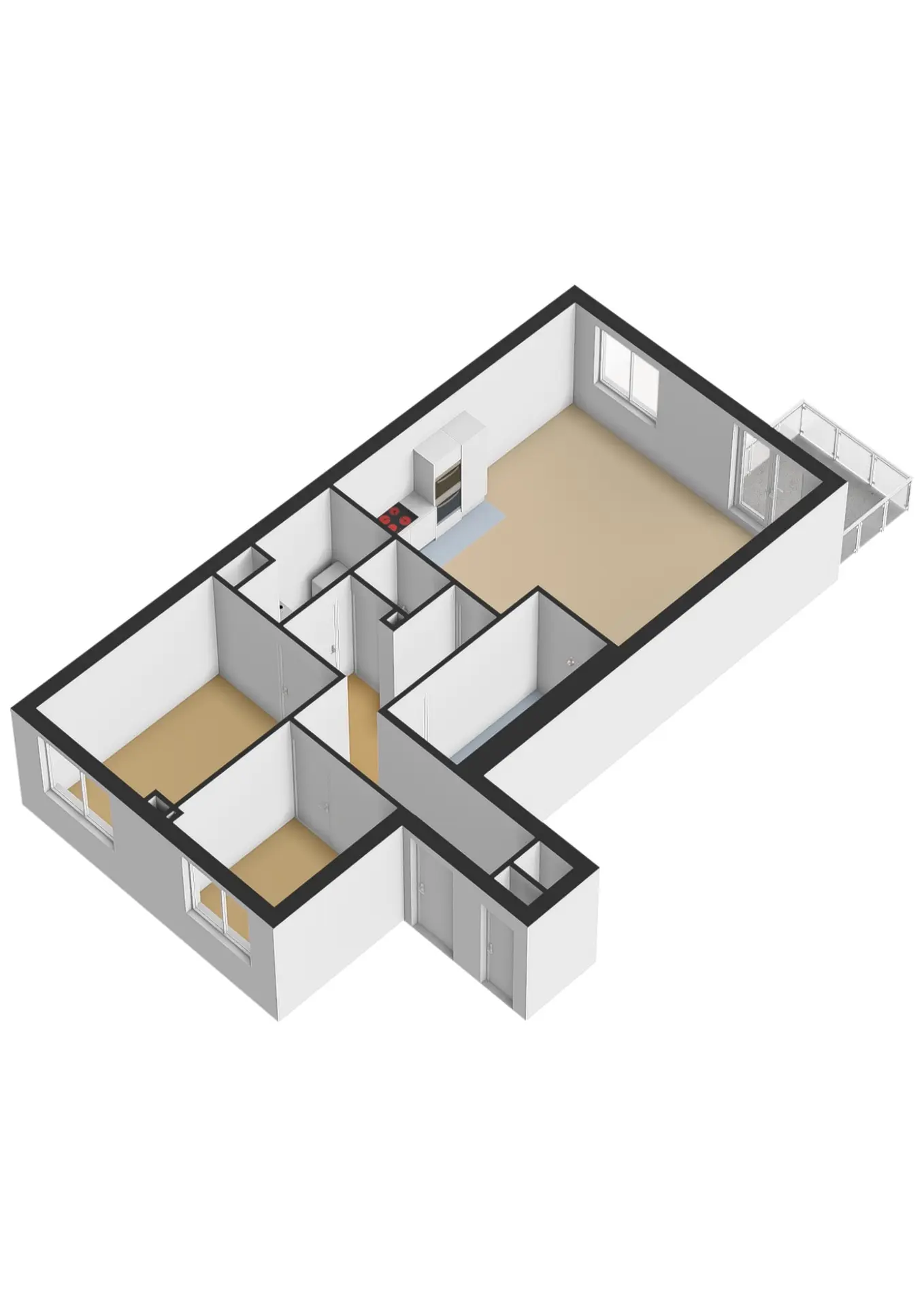 Indeling van het appartement, gelegen op de 2e verdieping van het appartementencomplex: