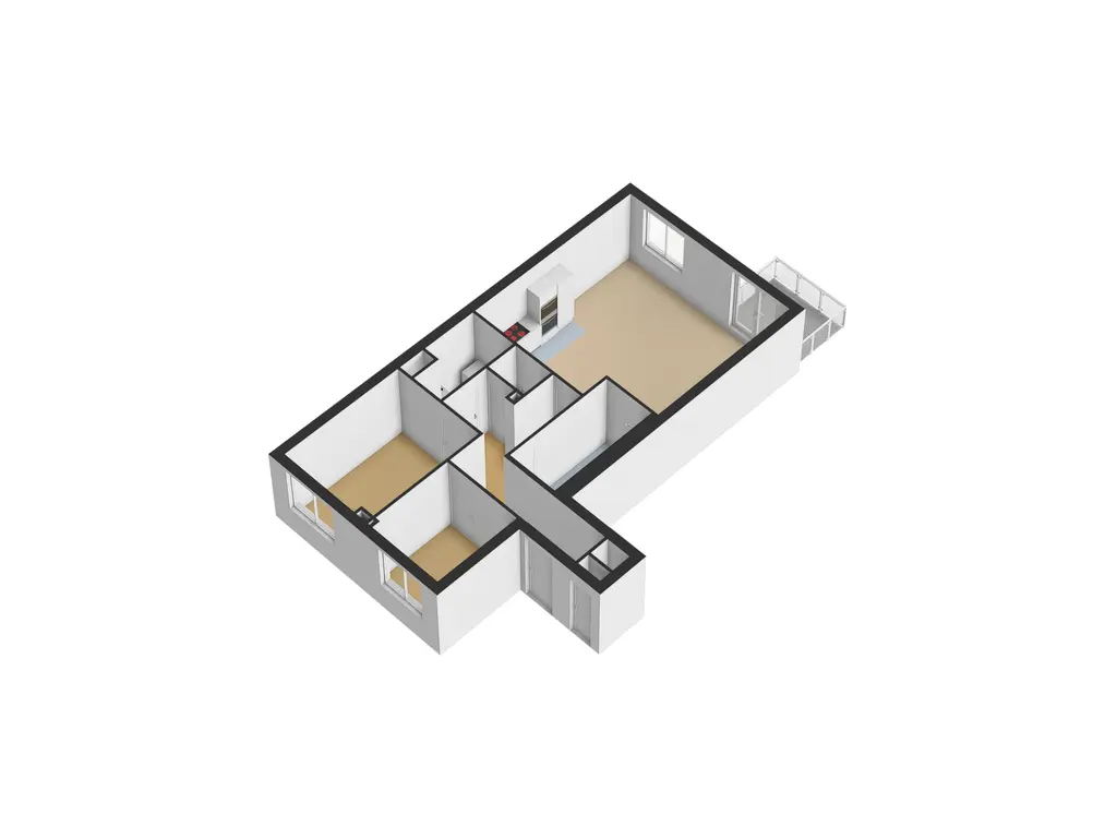 - Woonkamer + keuken ca. 34 m²