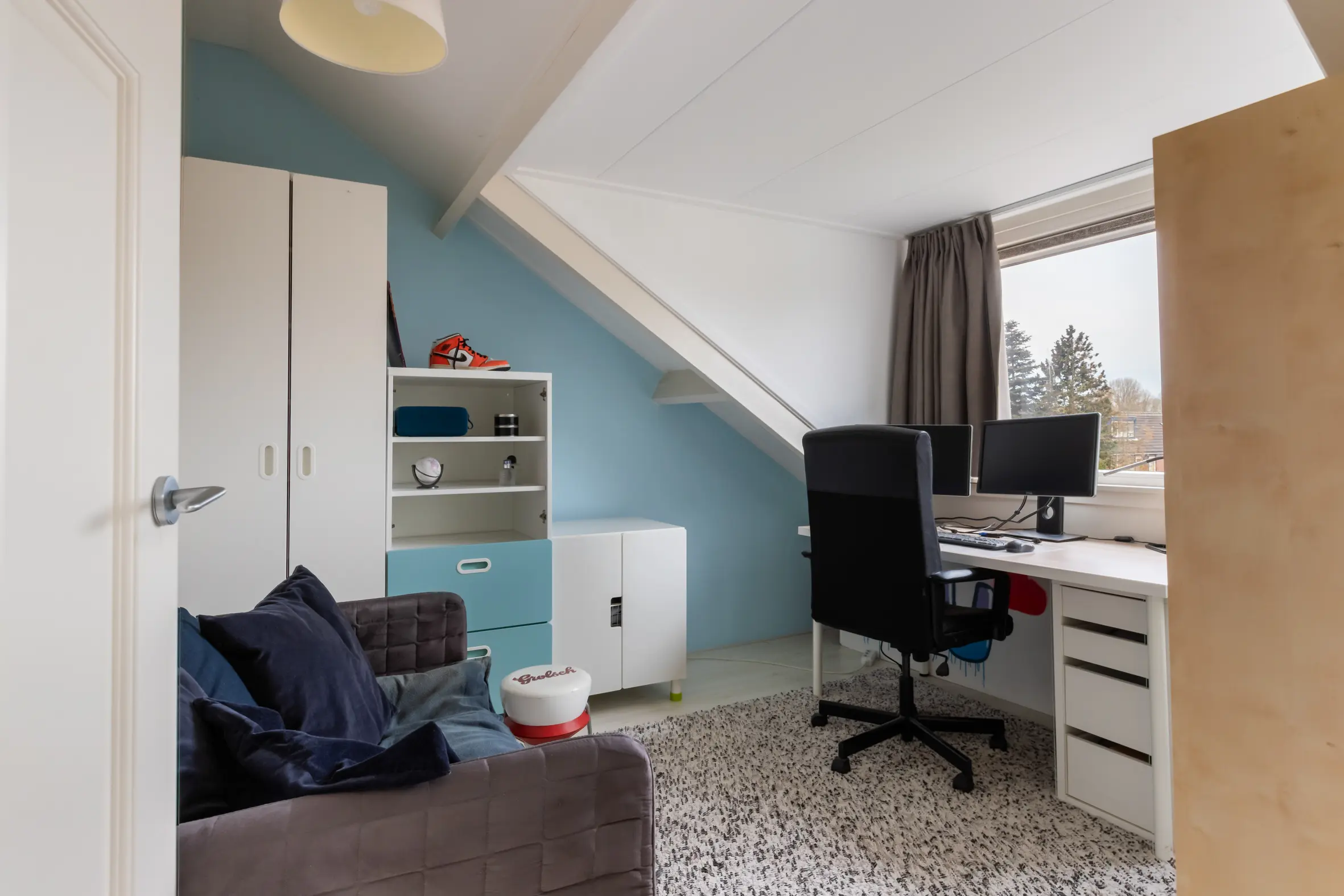 De tweede verdieping biedt nog eens twee volwaardige slaapkamers, beide met een dakkapel aan de voor- en achterzijde. Op de voorzolder is ruimte voor de wasmachine, droger en de cv-ketel (Vaillant EcoTec CW5, 2015). Een dakraam zorgt hier voor extra daglicht en achter de knieschotten is praktische bergruimte aanwezig.