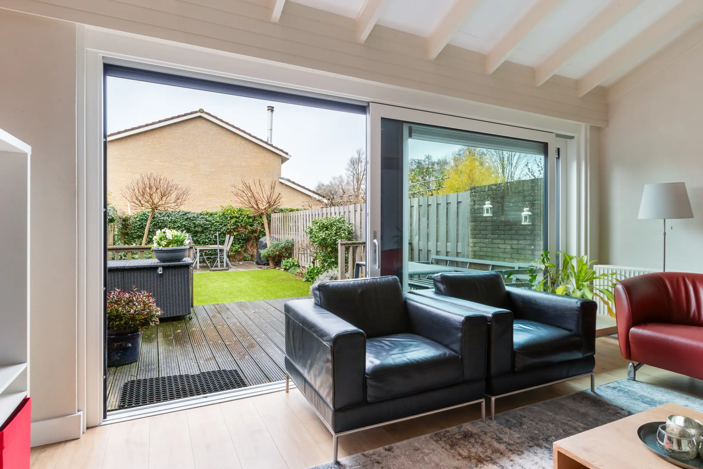 - Schuifpui naar achtertuin vernieuwd 2024 en voorzien van HR++ (triple) glas;