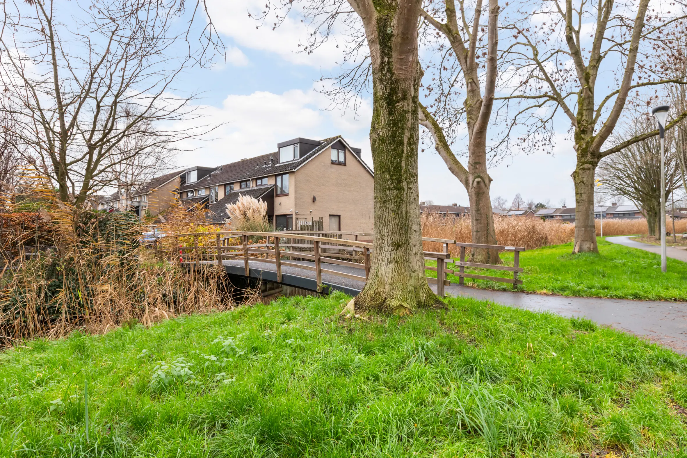 De Grassenbuurt is populair vanwege de rustige, kindvriendelijke opzet en het autoluwe karakter. In de directe omgeving vind je meerdere speelplekken, basisscholen en winkelcentrum Bloemendaal met een divers aanbod aan winkels en voorzieningen. Het centrum van Gouda en het NS-station zijn binnen ongeveer tien minuten fietsen bereikbaar. Ook de Reeuwijkse Plassen liggen op korte afstand, hemelsbreed nog geen 500 meter, waardoor wonen in het groen hier moeiteloos samengaat met alle dagelijkse voorzieningen binnen handbereik.