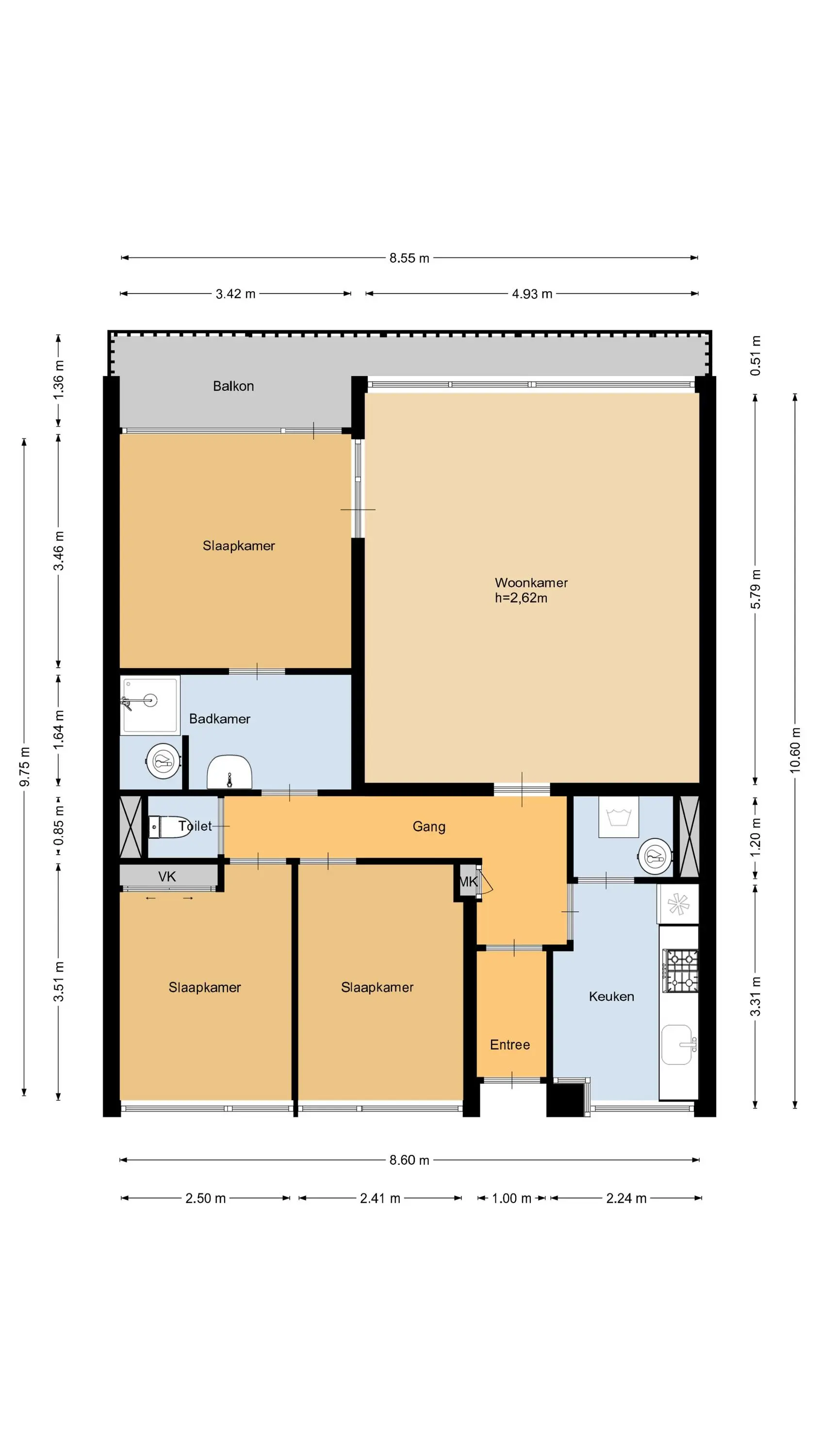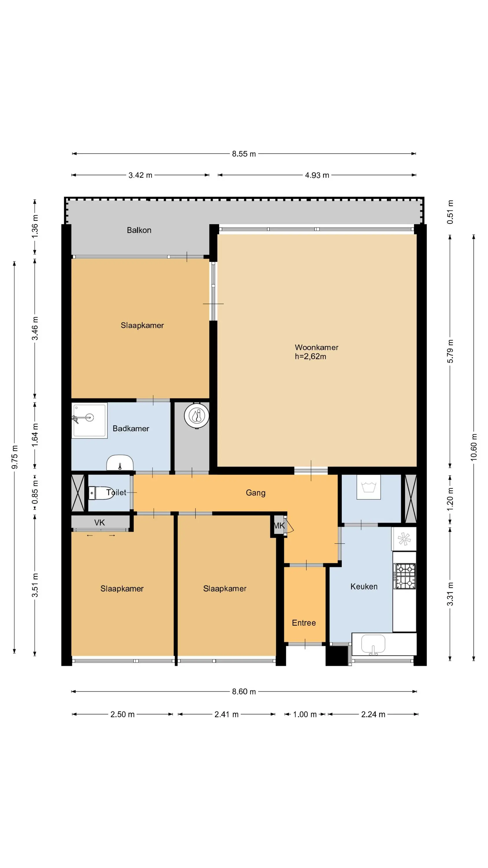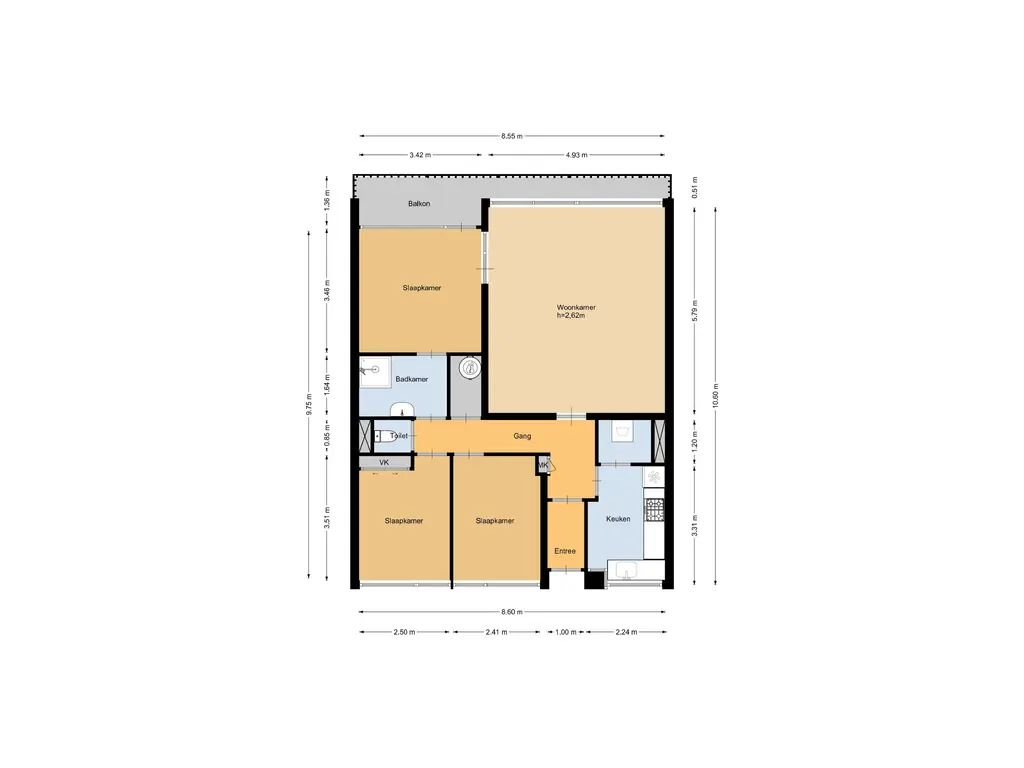 Je komt binnen via de entree, centrale hal met meterkast en intercom en toegang tot de diverse ruimtes.