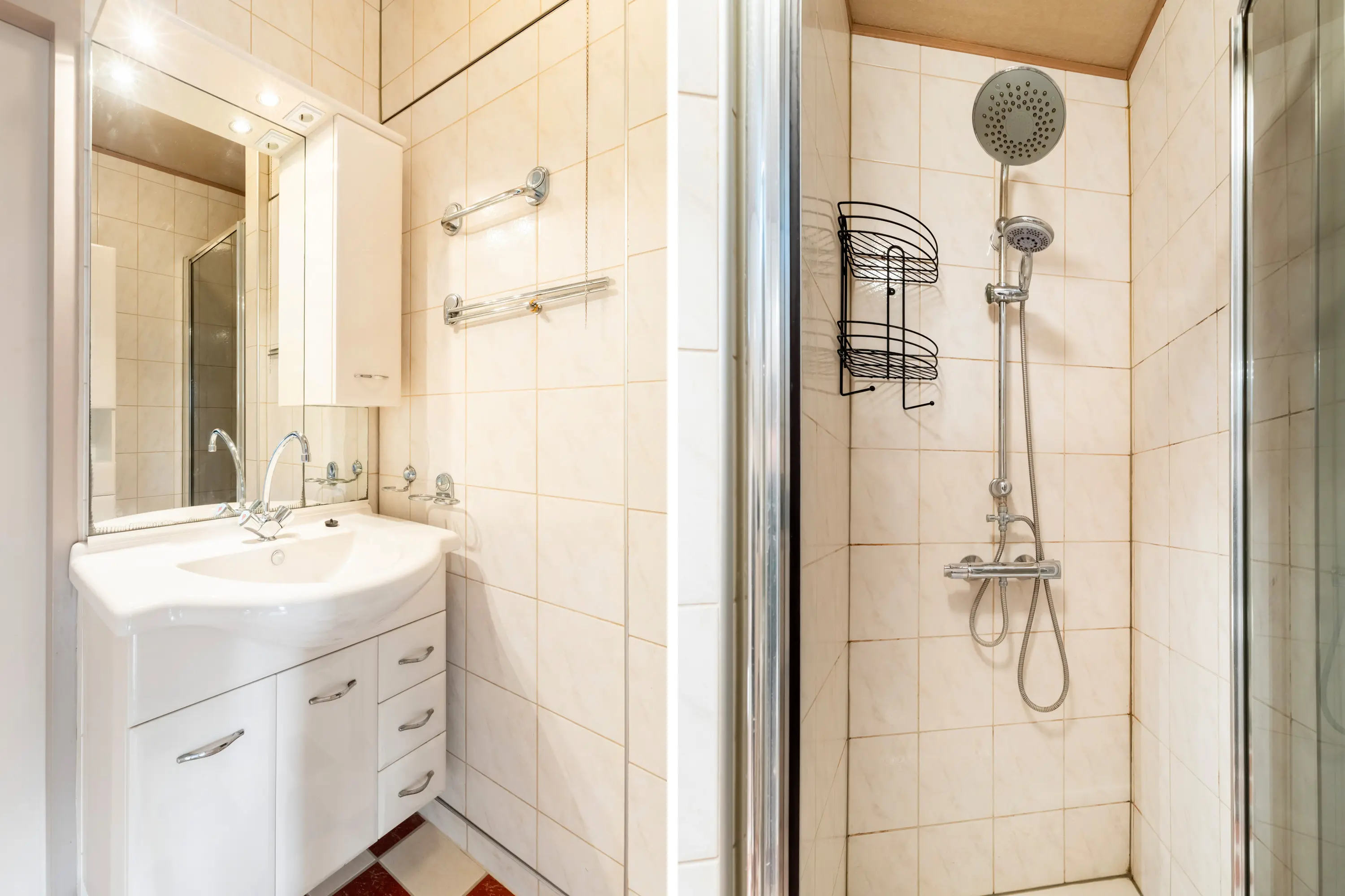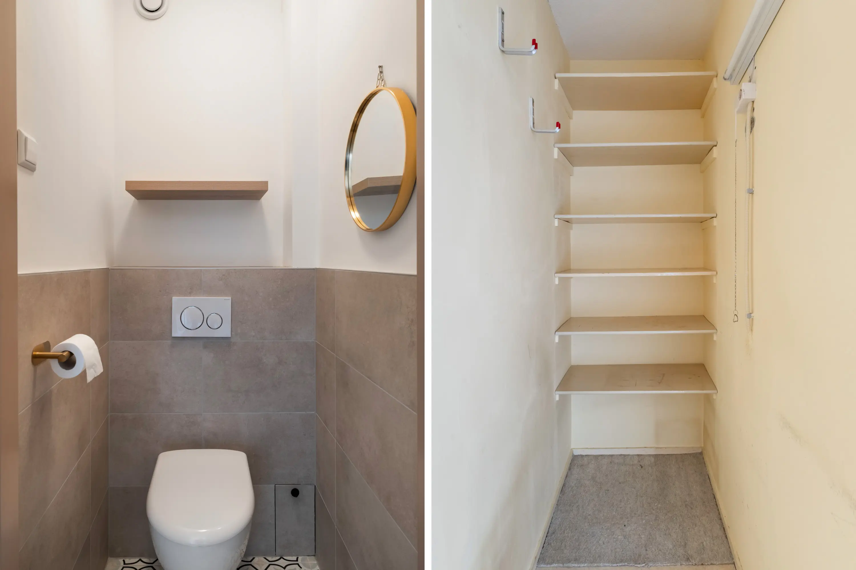 De moderne toiletruimte is in 2024 vernieuwd en voorzien van een wandcloset.