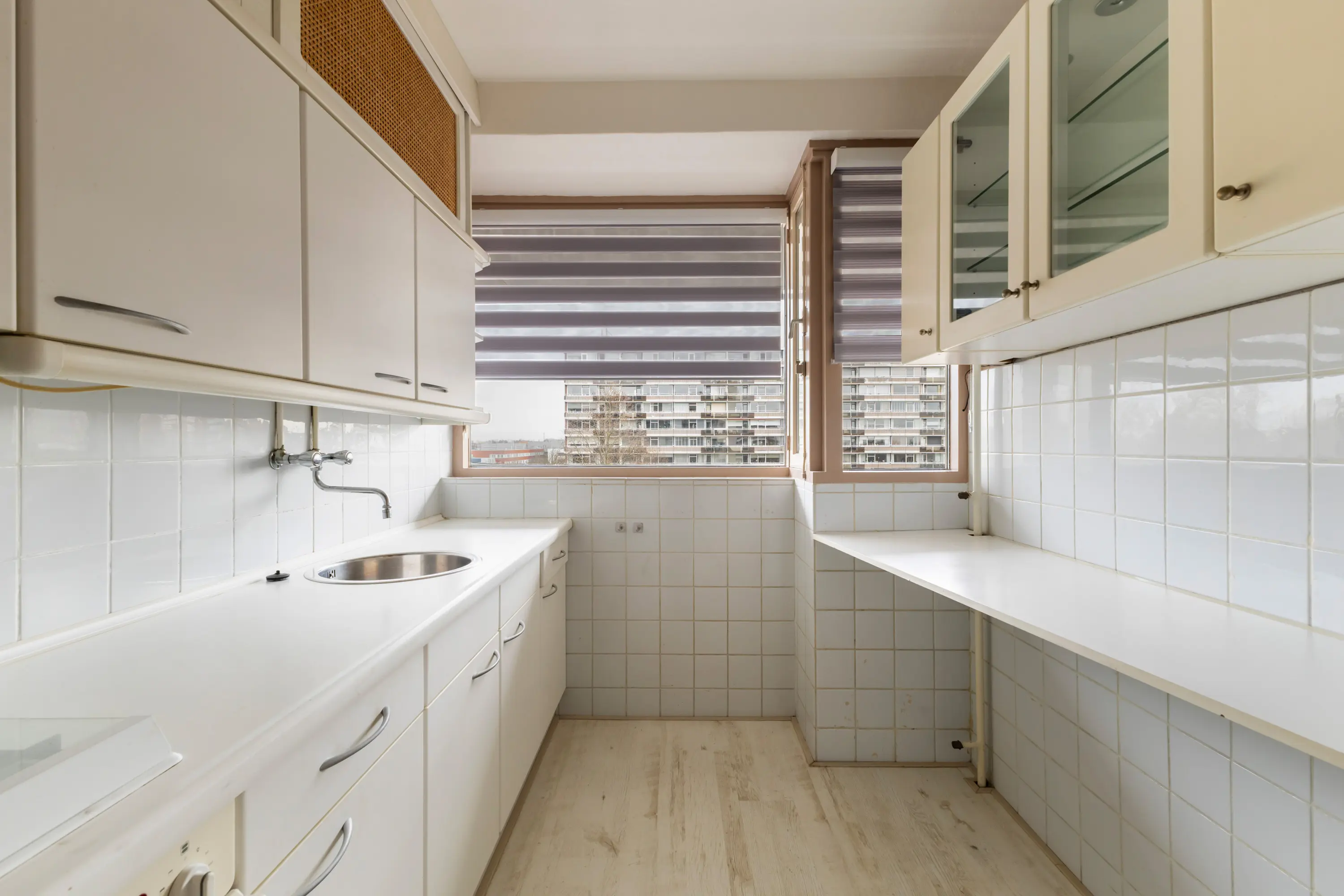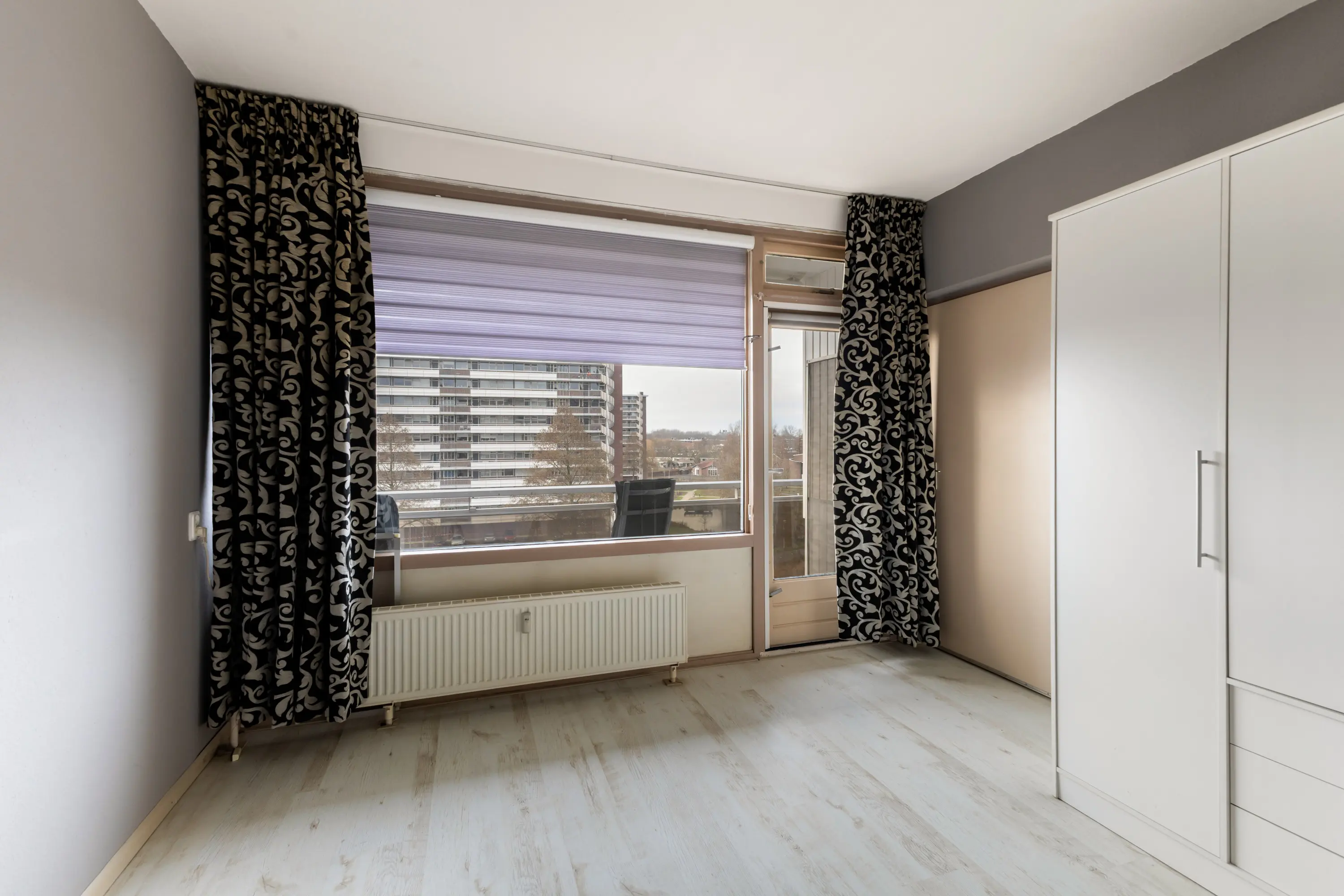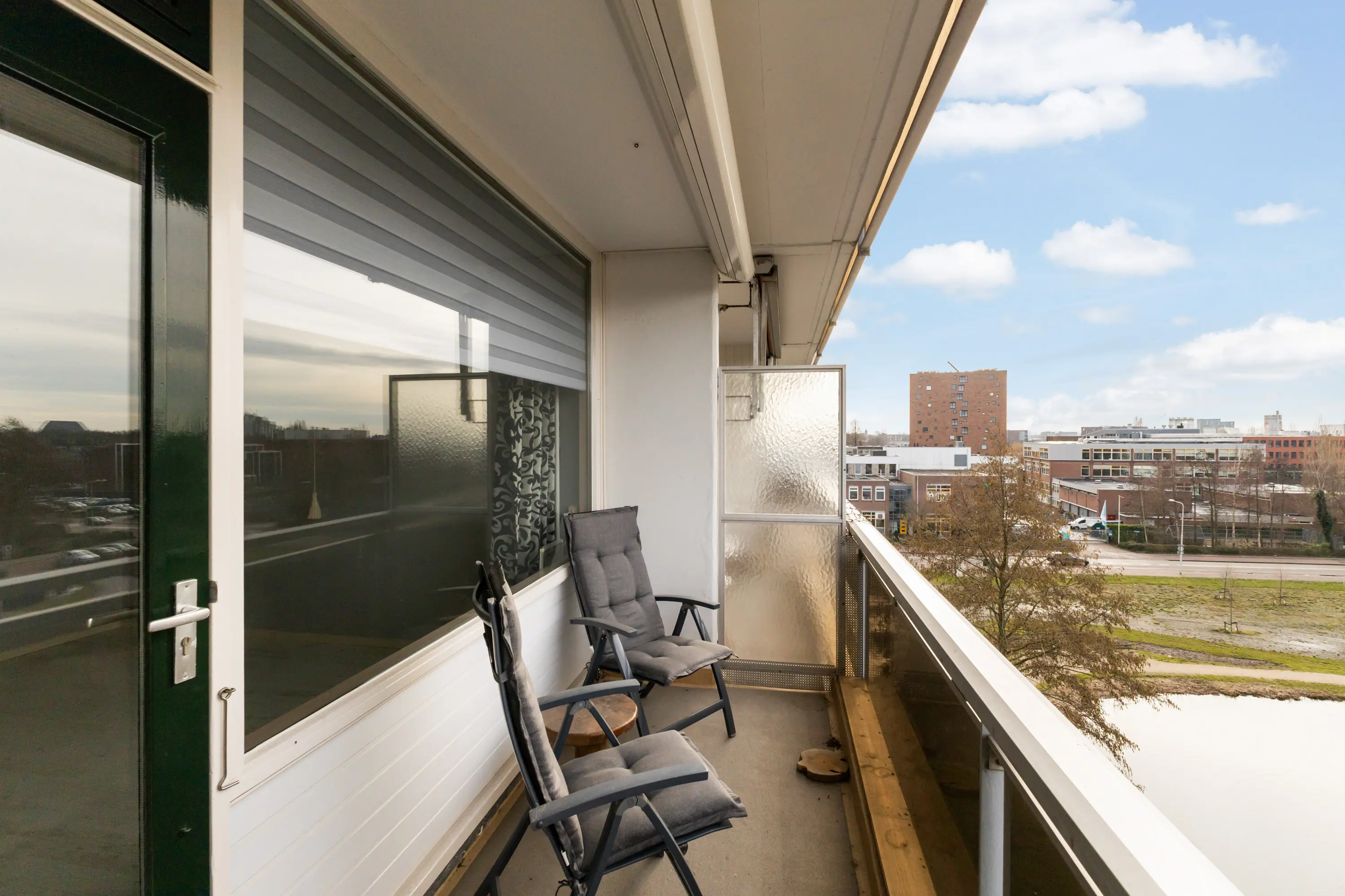 Dit ruime appartement ligt op de vijfde verdieping en biedt een vrij uitzicht over de omgeving. De woning beschikt over drie slaapkamers, een aparte keuken, een balkon met middag- en avondzon en een eigen berging. Het appartementencomplex ligt op loopafstand van voorzieningen zoals winkels, openbaar vervoer en het Groene Hart Ziekenhuis.