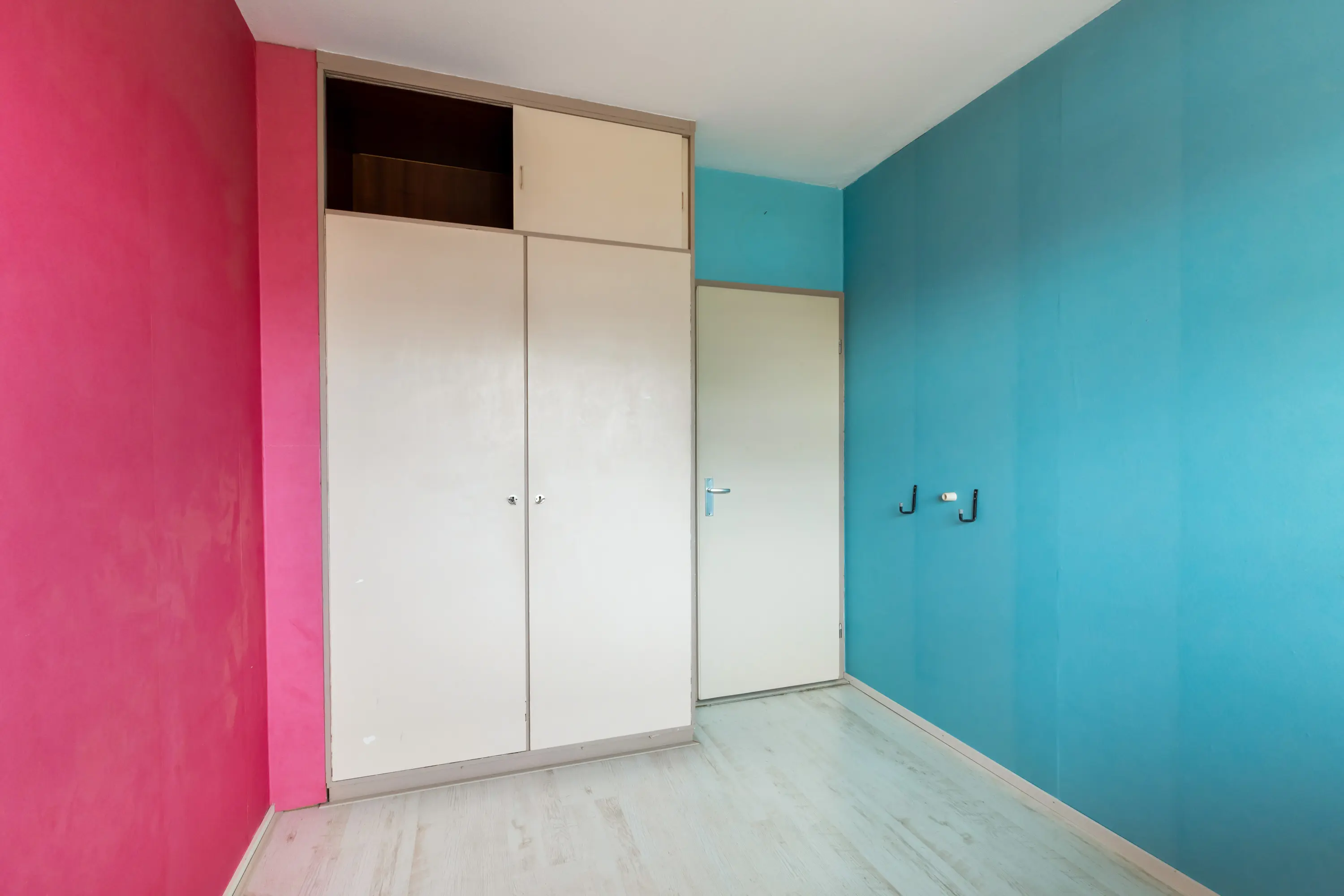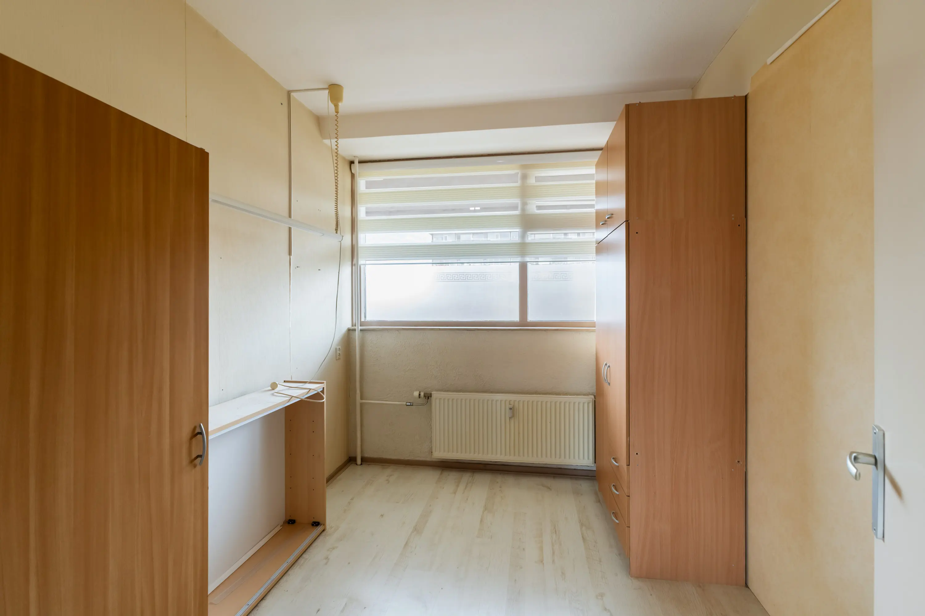 De andere twee slaapkamers zijn vanuit de hal te bereiken en bevinden zich naast elkaar aan de voorzijde van het appartement, waarvan er één is voorzien van een vaste kast. In beide kamers ligt laminaat. Er is nog een praktische bergruimte.