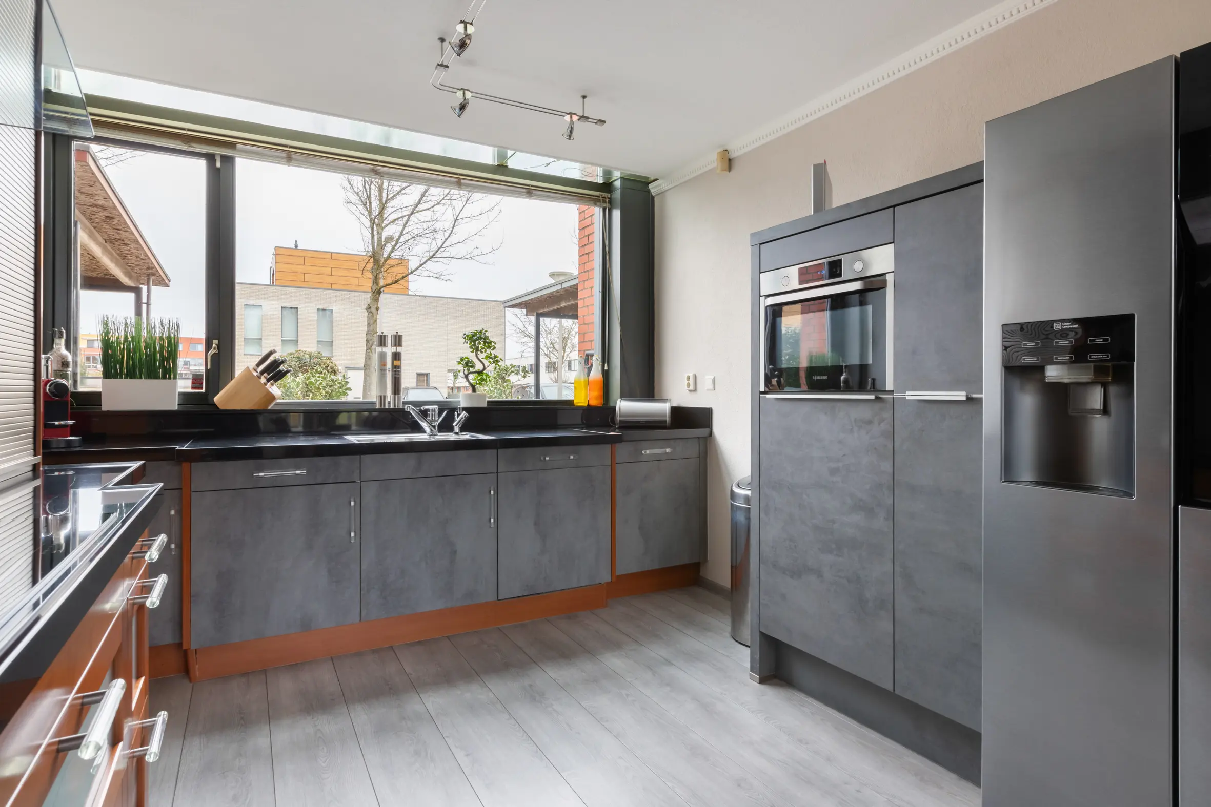 Aan de voorzijde ligt de open keuken welke is voorzien van onder andere: