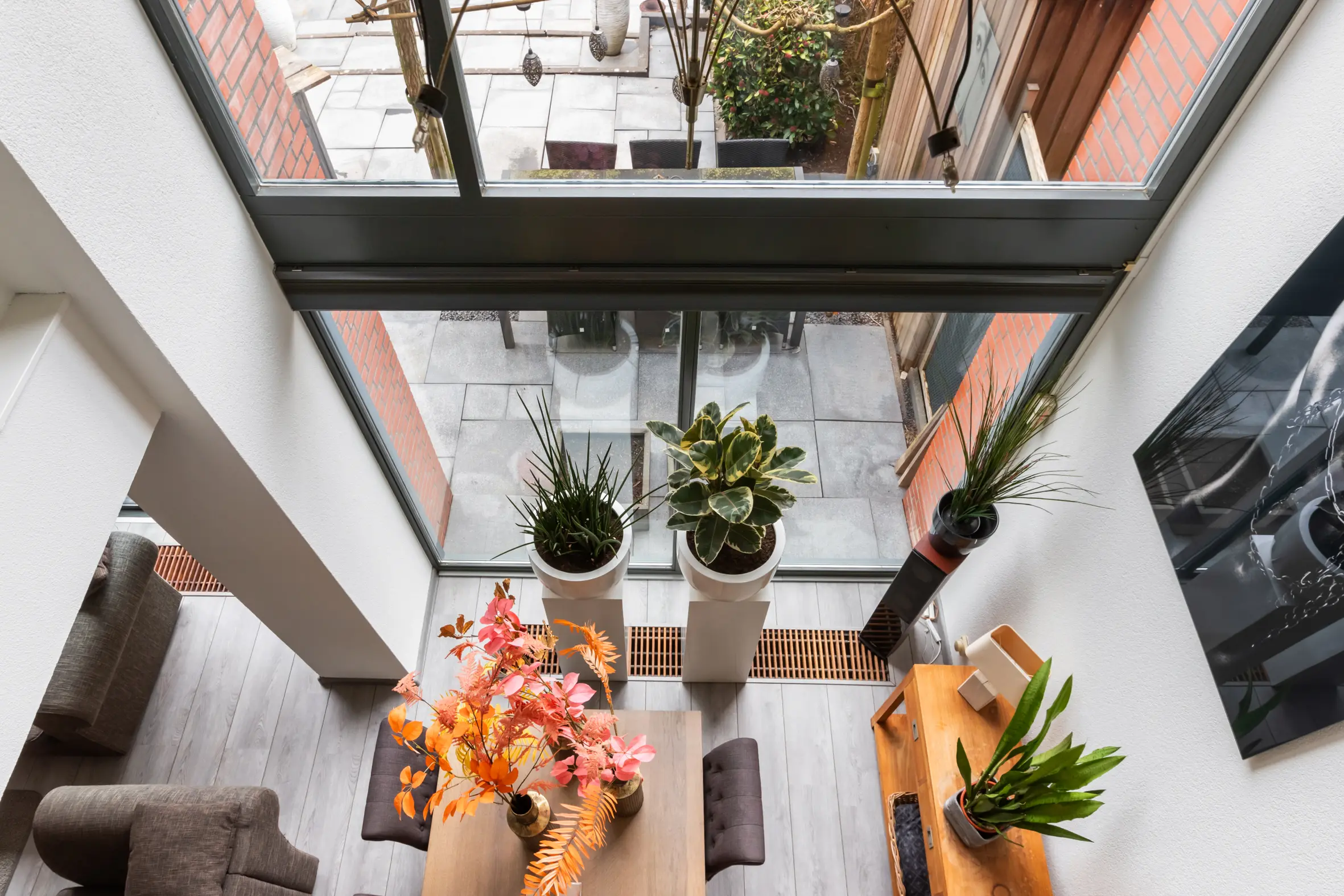 - Handmatig zonnescherm en screens aan de binnenzijde van de vide;
