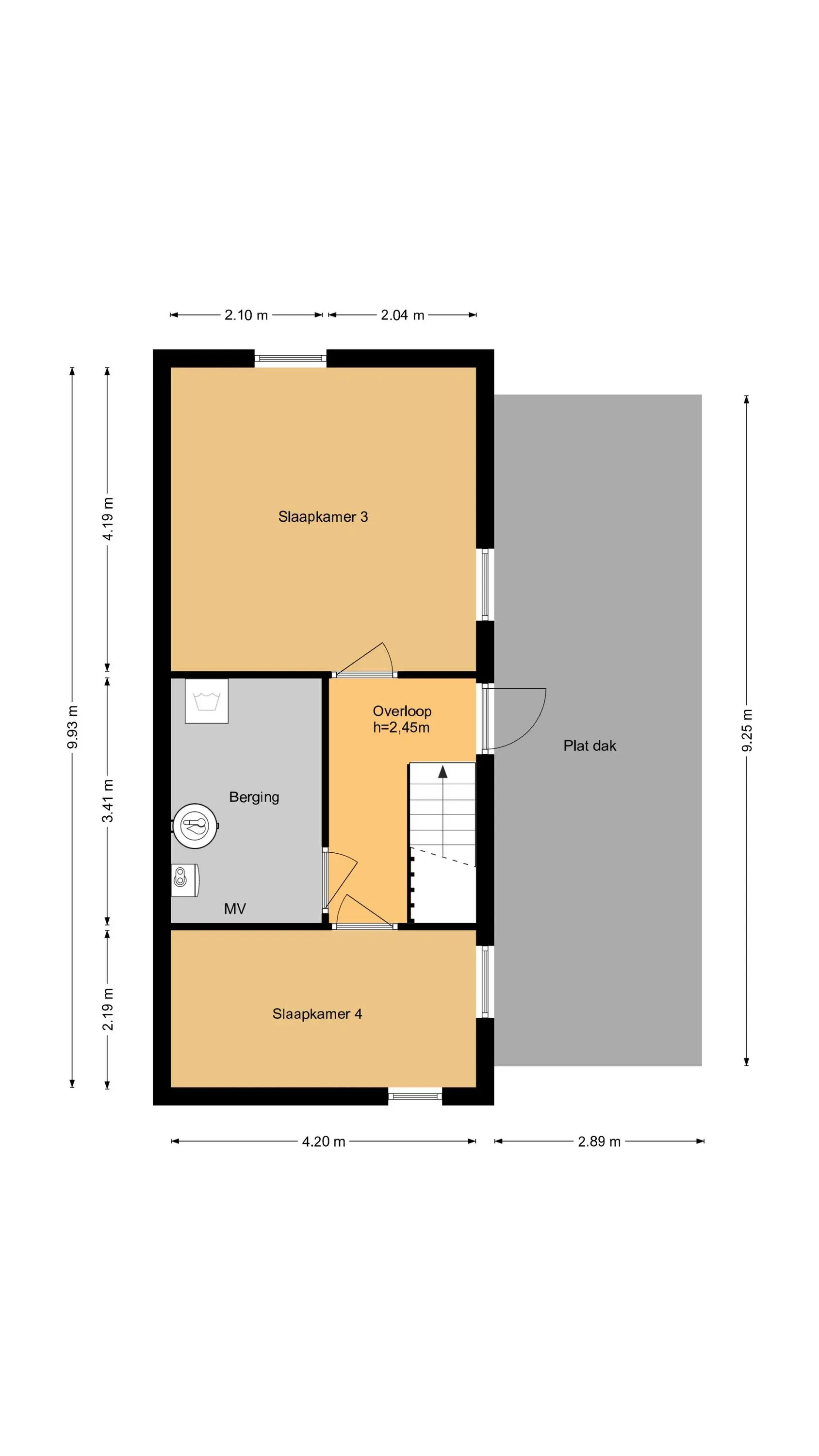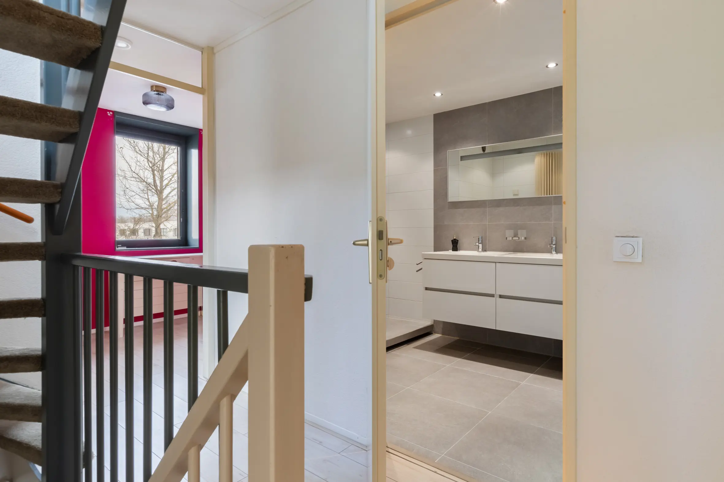 Op de overloop bevindt zich een (vlucht)deur naar het dak, waardoor het mogelijk is hier een dakterras te realiseren.