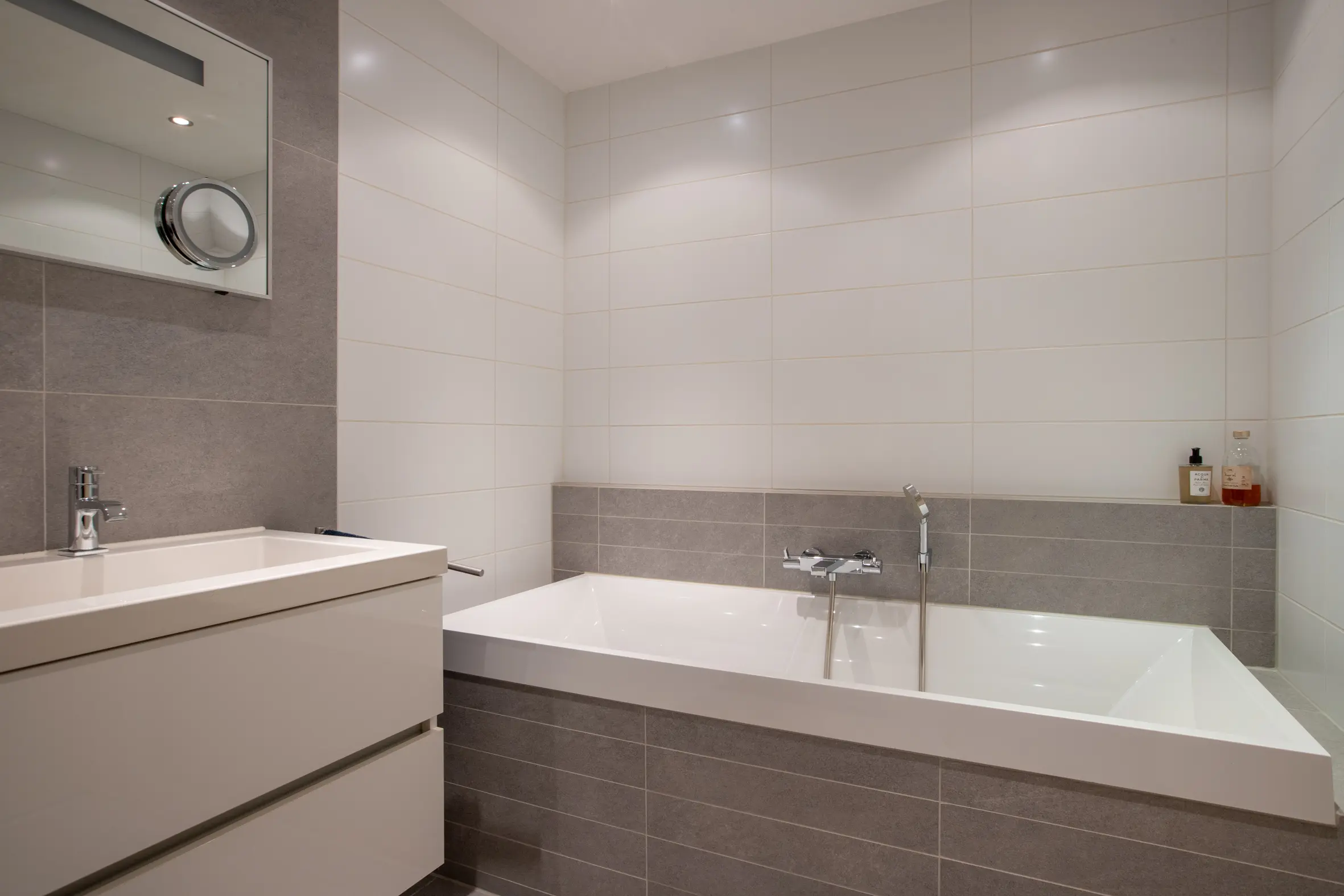 - Dubbele wastafel met meubel;