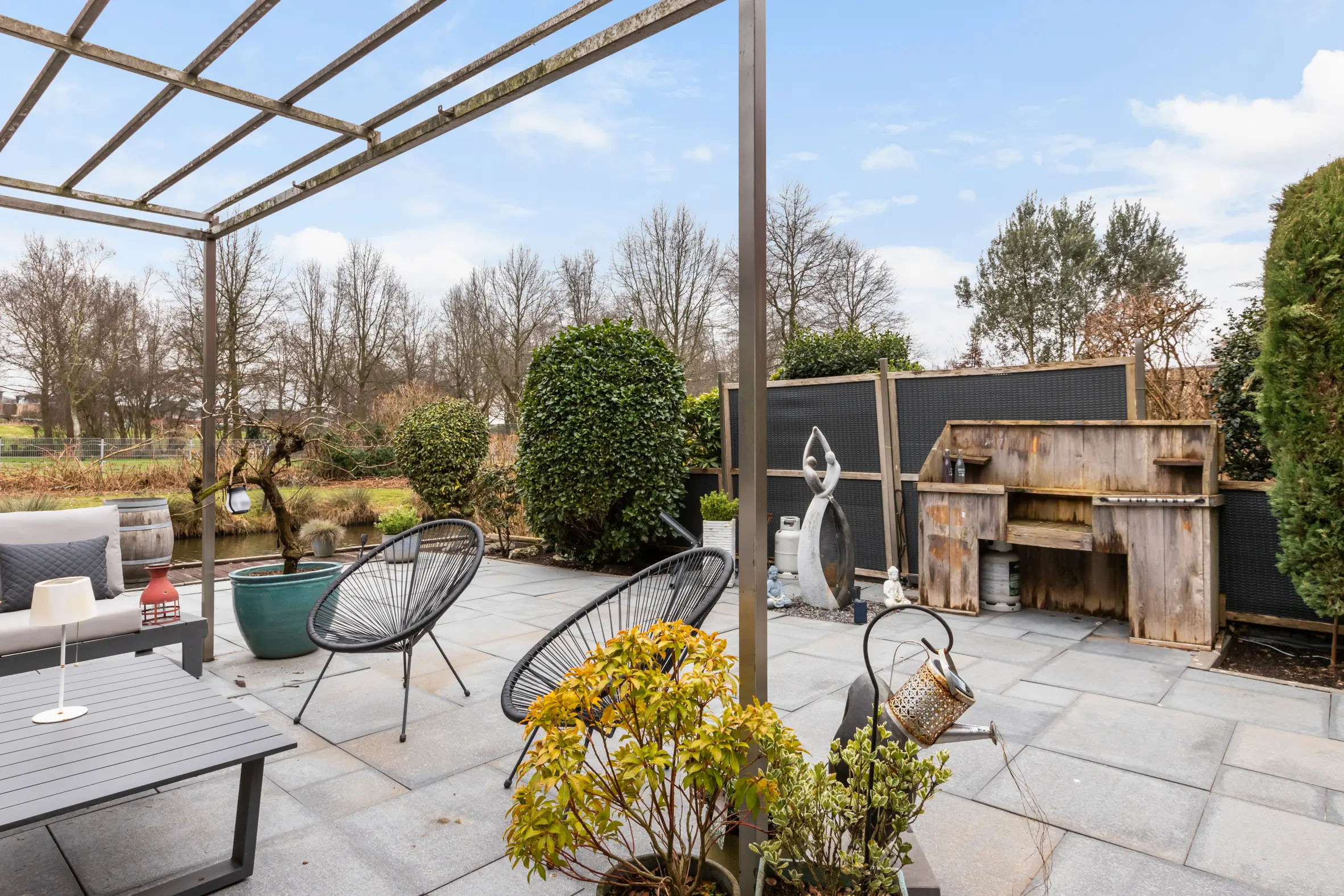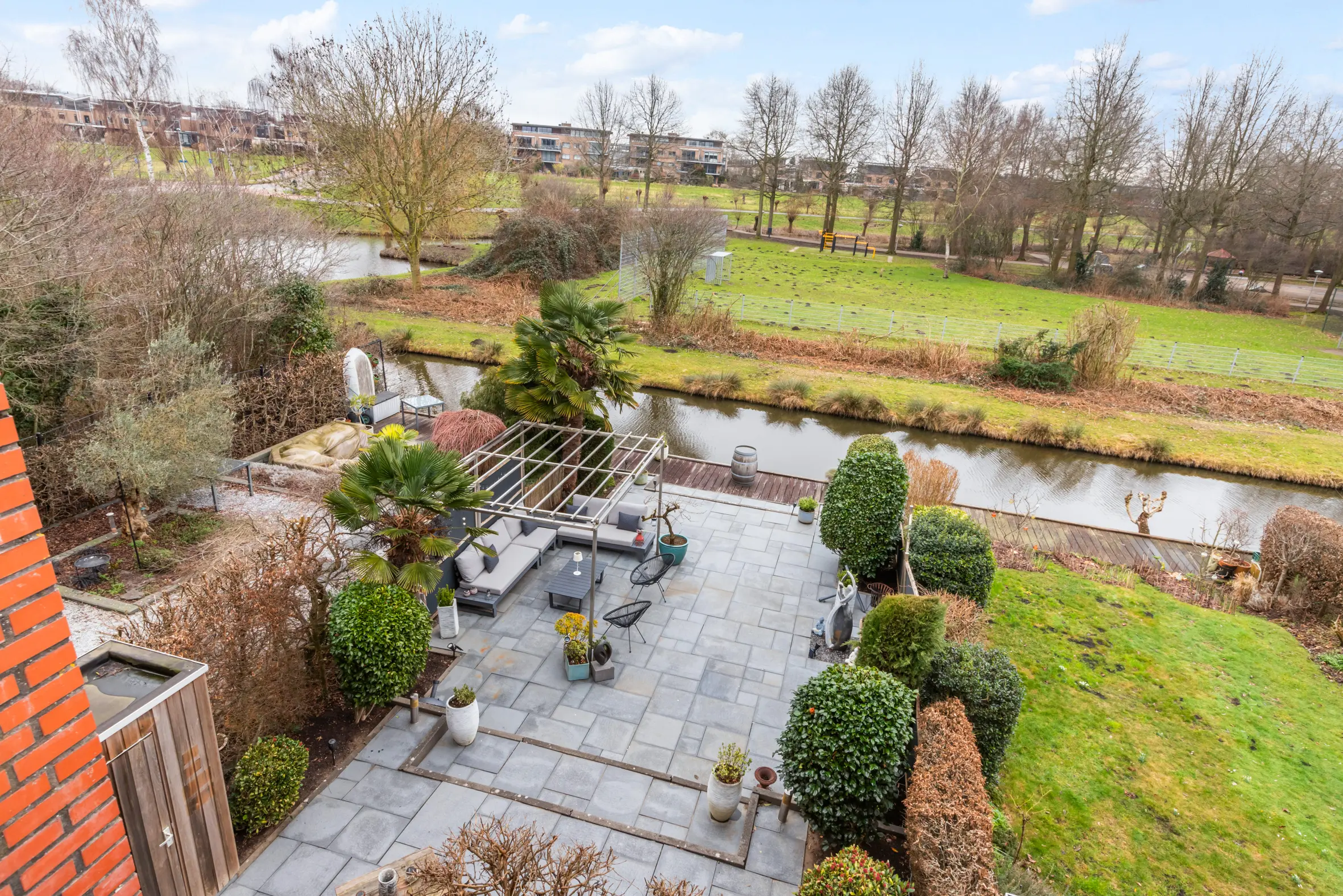 - Zonnige achtertuin gelegen aan het water en het Essepark;