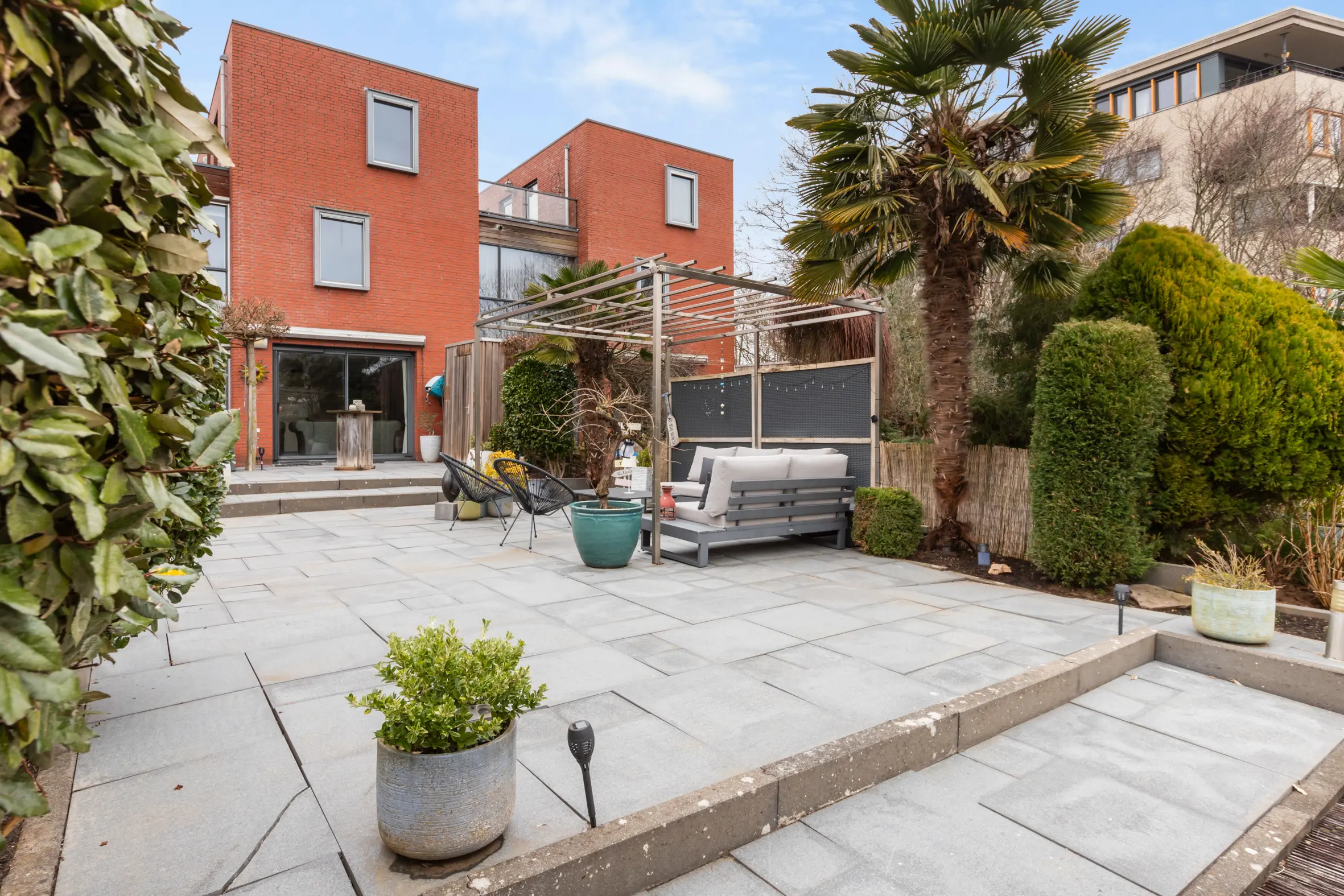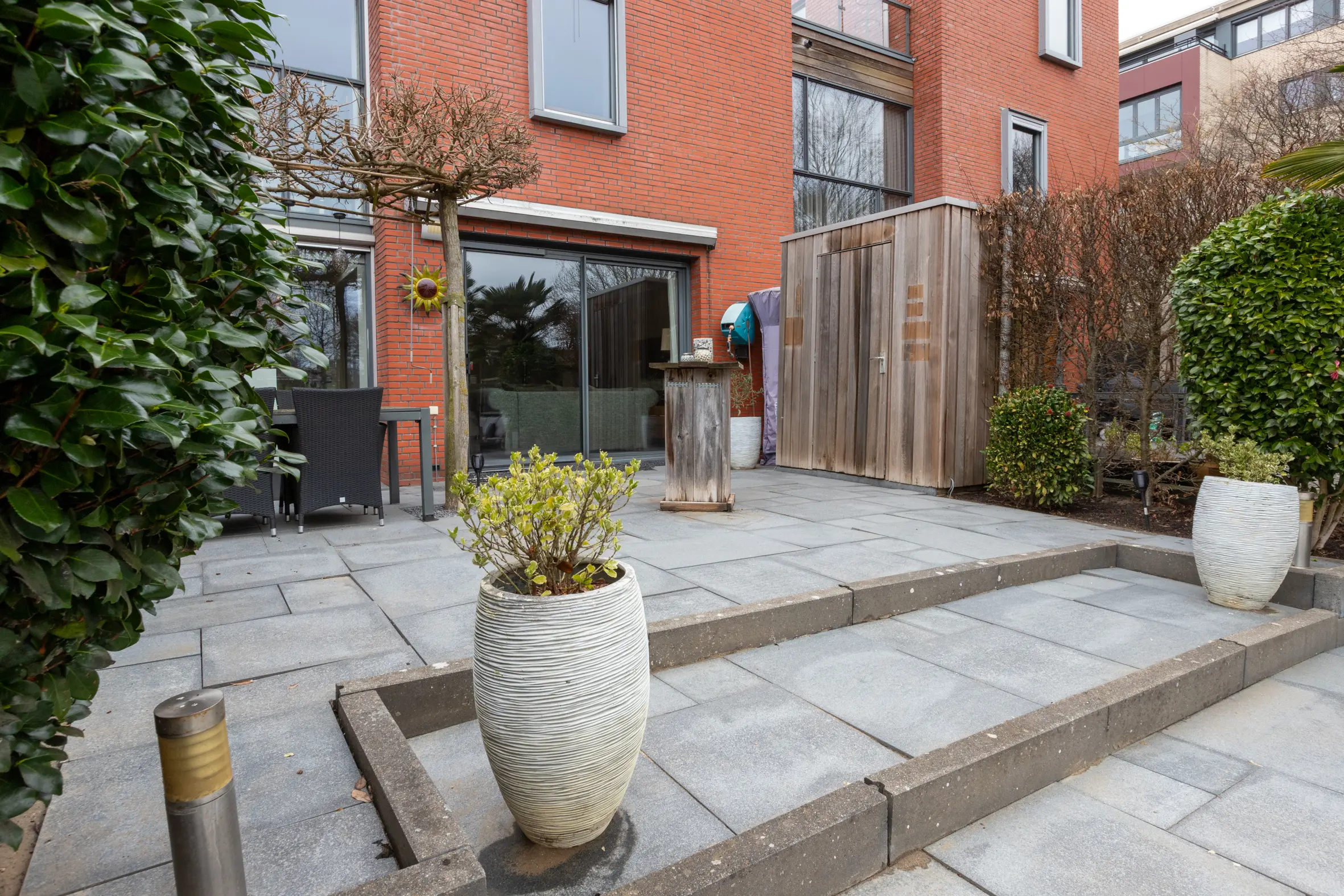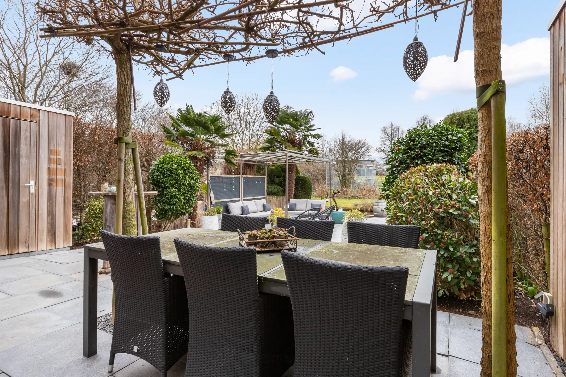 De achtertuin heeft een zonnige ligging en is aangelegd rond 2012. Er is voldoende ruimte voor een ruime loungebank en een eettafel. De tuin is echt een heerlijke plek om zomers te barbecueën of rustig te genieten van een kop koffie. Met een oppervlakte van ca. 122 m² en een vlonder aan het water en het park heb je hier veel rust en privacy. Er is een vrijstaande houten berging (ca. 2 m²). Ideaal voor het opbergen van o.a. tuingereedschap.