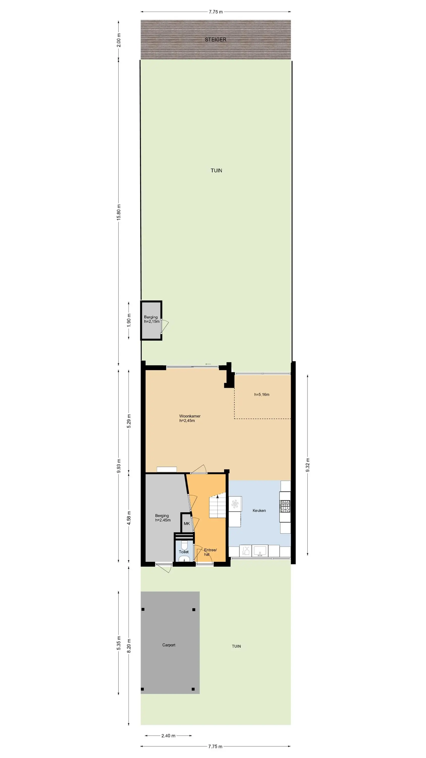 - Ruime voortuin met carport en parkeergelegenheid voor 1 auto;