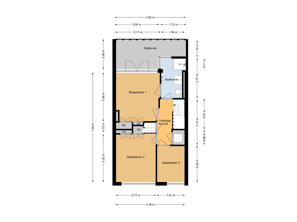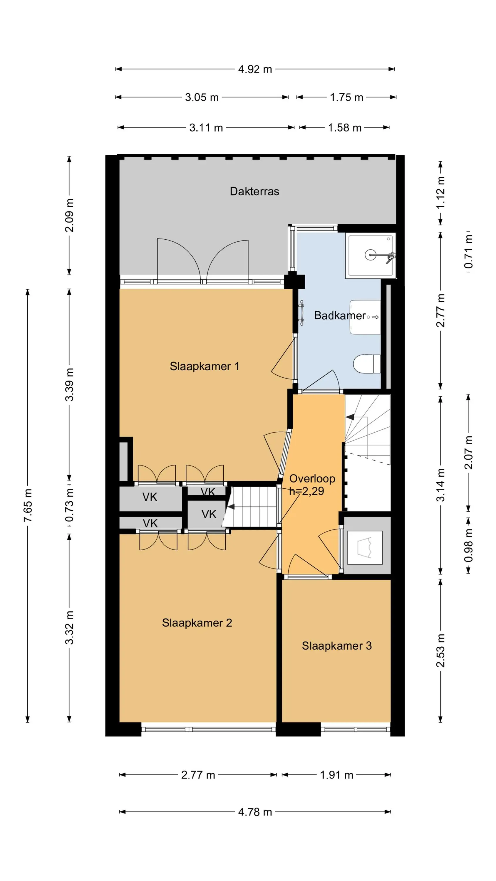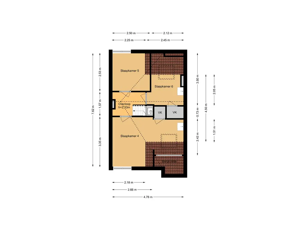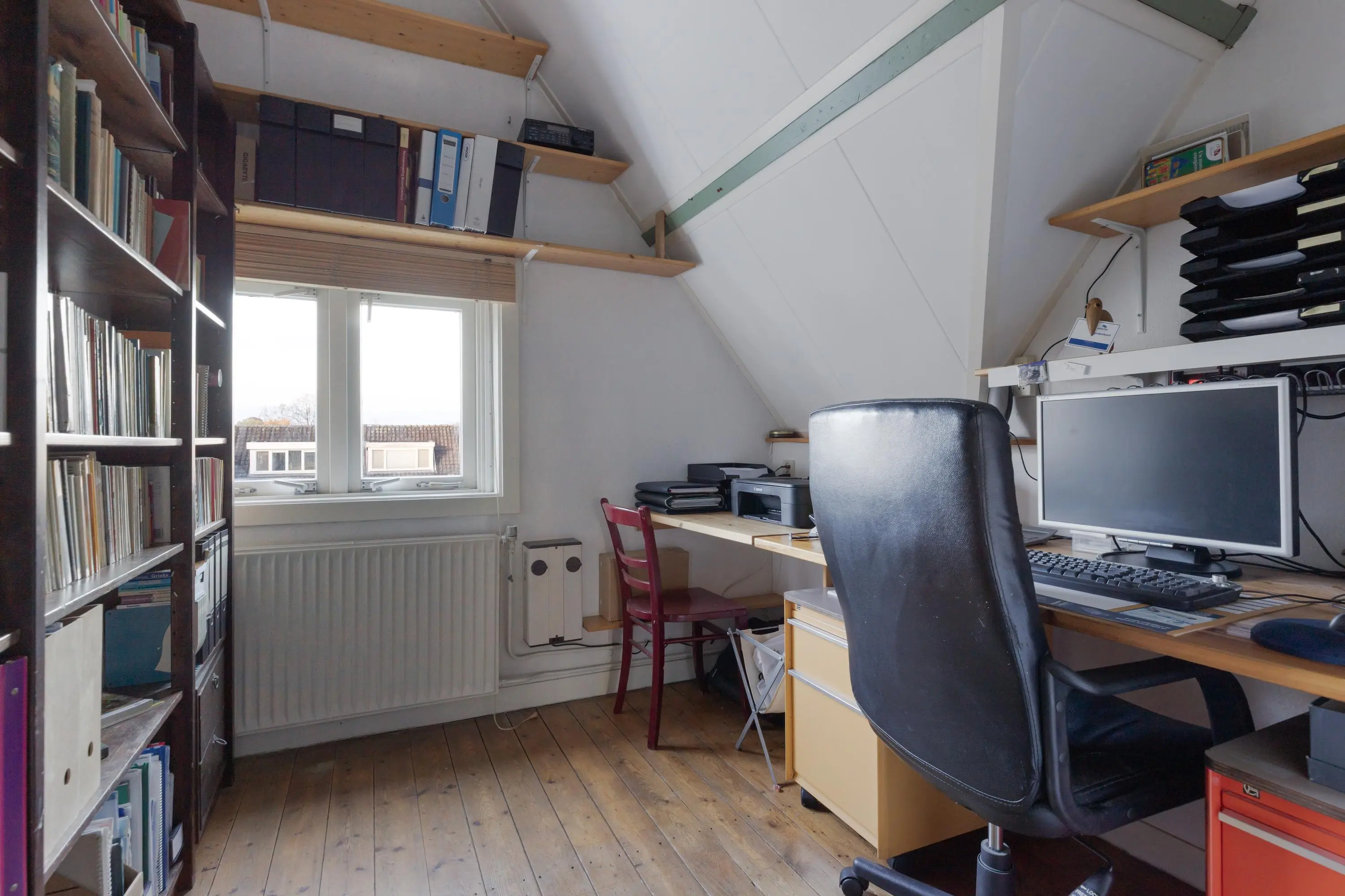 Op de overloop is de cv-ketel (Intergas HR Eco, 2015) gesitueerd. De vierde slaapkamer ligt in de punt aan de voorzijde en heeft een dakraam, houten vloer en inbouwkast. Aan de achterzijde bevinden zich slaapkamer 5 en 6. Slaapkamer 6 beschikt over twee dakramen. Bovendien is er een extra zoldertje met bergruimte.