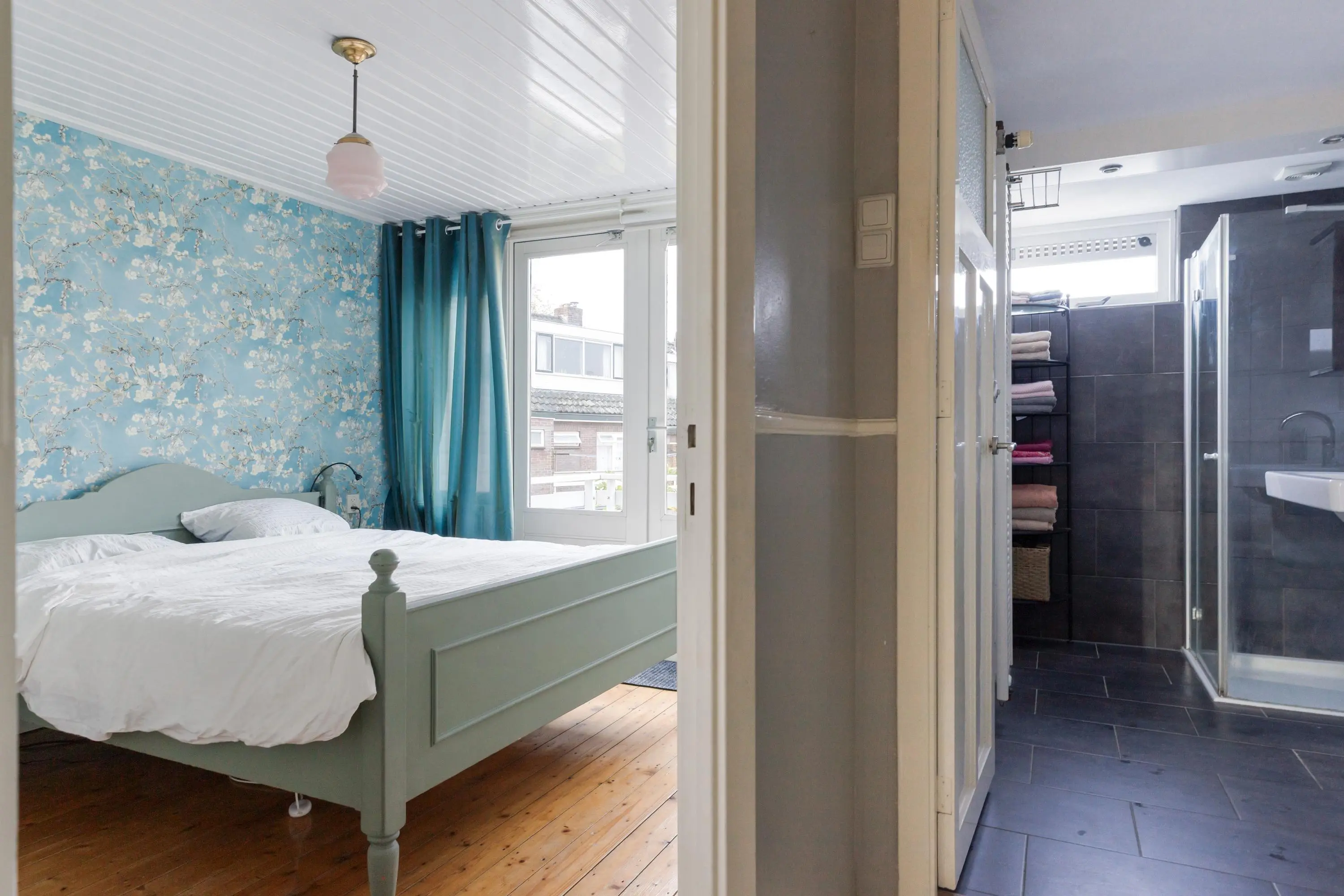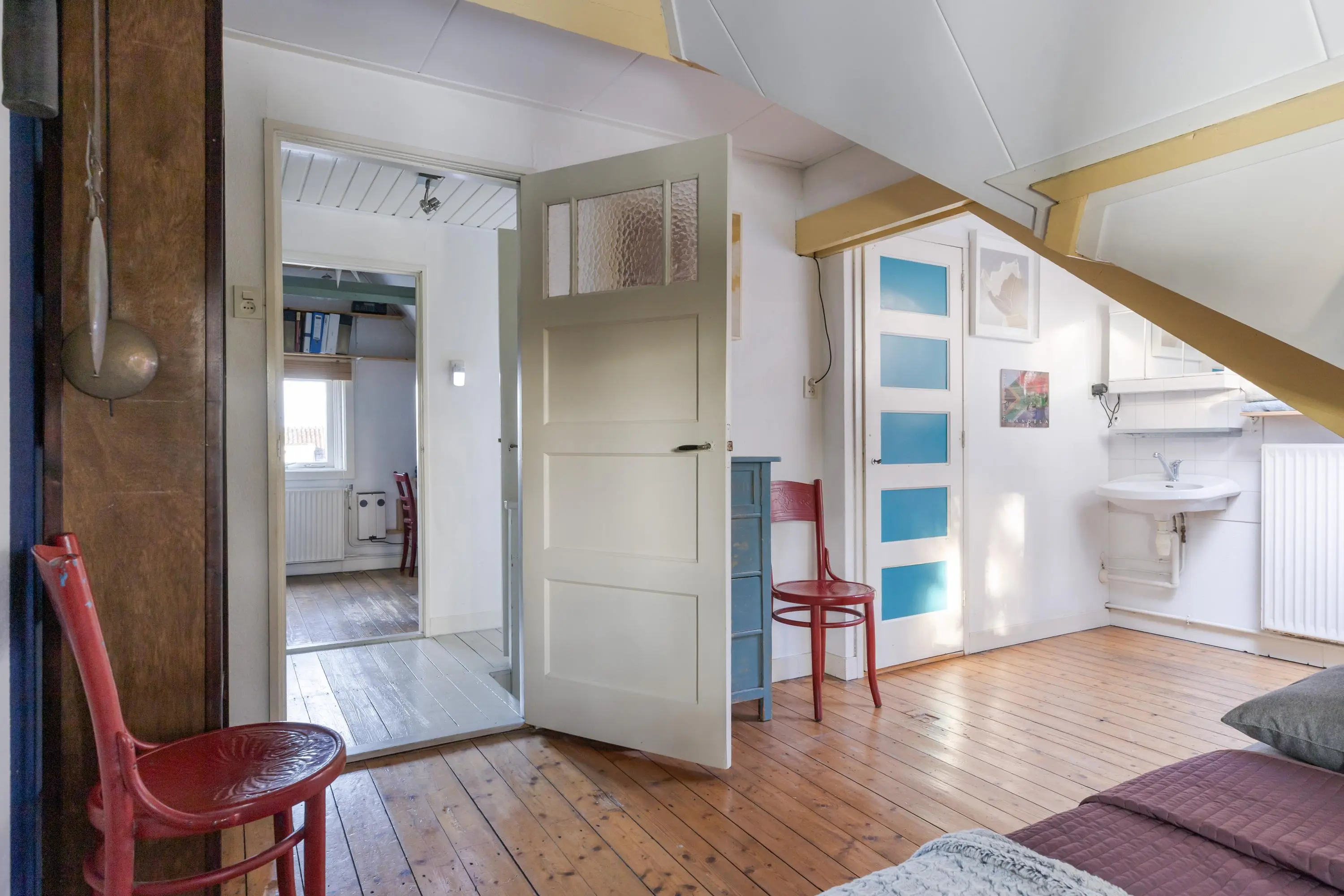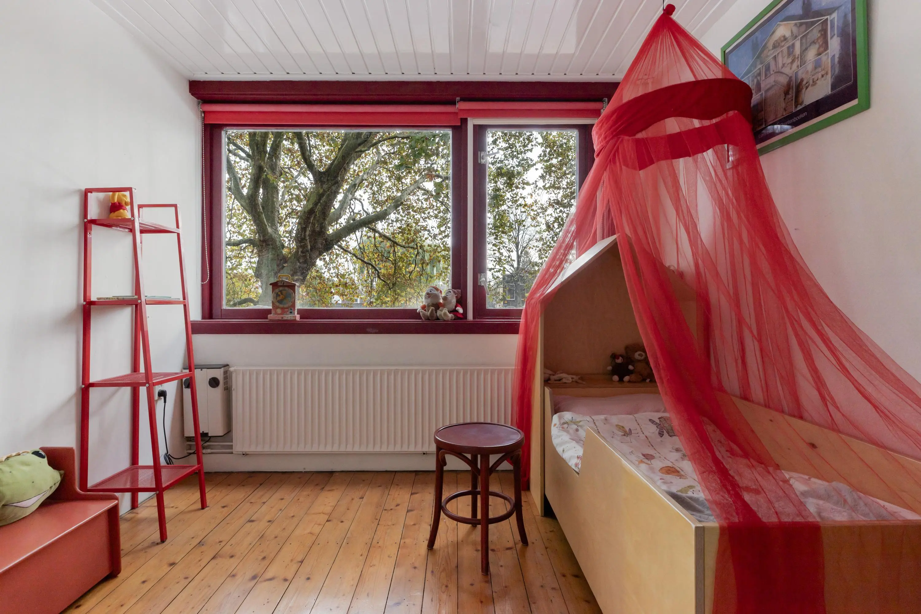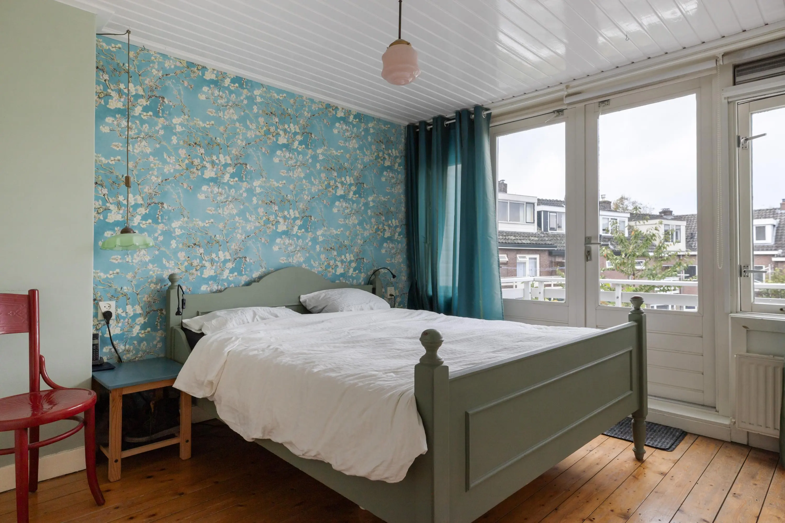 Slaapkamer 1 ligt aan de achterzijde, heeft een houten vloer, openslaande deuren naar het zonnige balkon op het westen, een inbouwkast en directe toegang tot de badkamer. Slaapkamers 2 en 3 liggen aan de voorzijde, met originele houten plafonds, inbouwkasten en extra dik dubbel glas.
