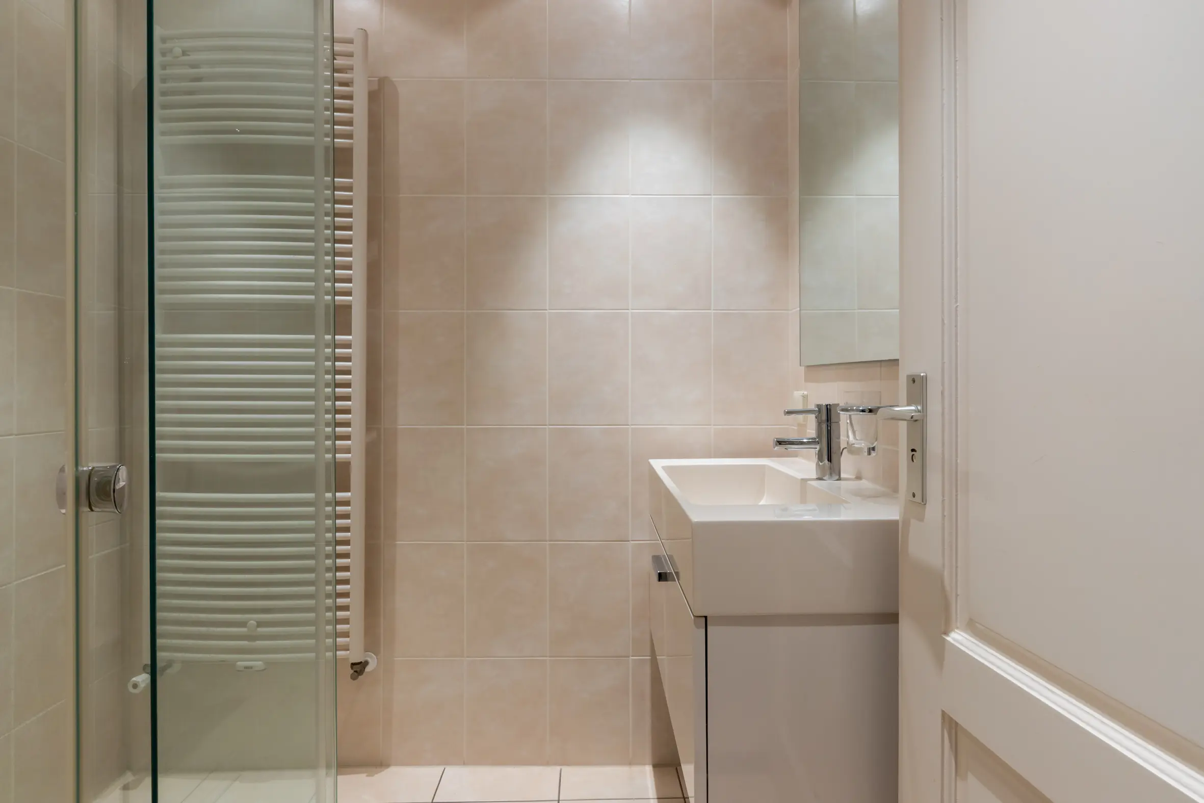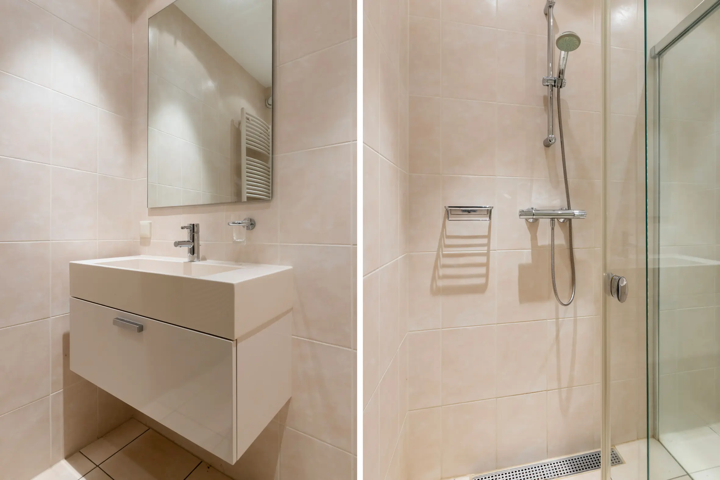De slaapkamer is royaal en voorzien van een vaste kastenwand. De comfortabele badkamer is voorzien van: