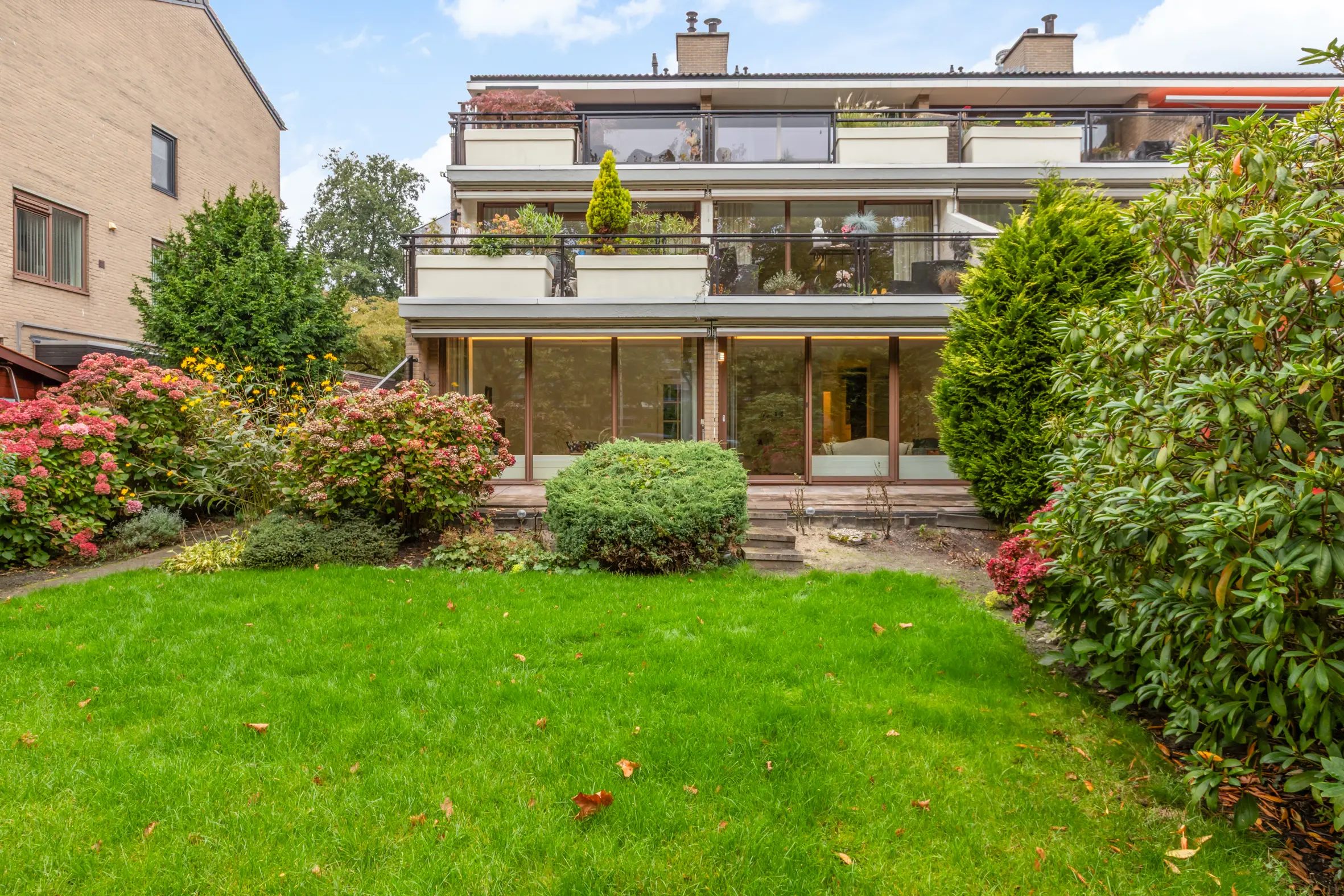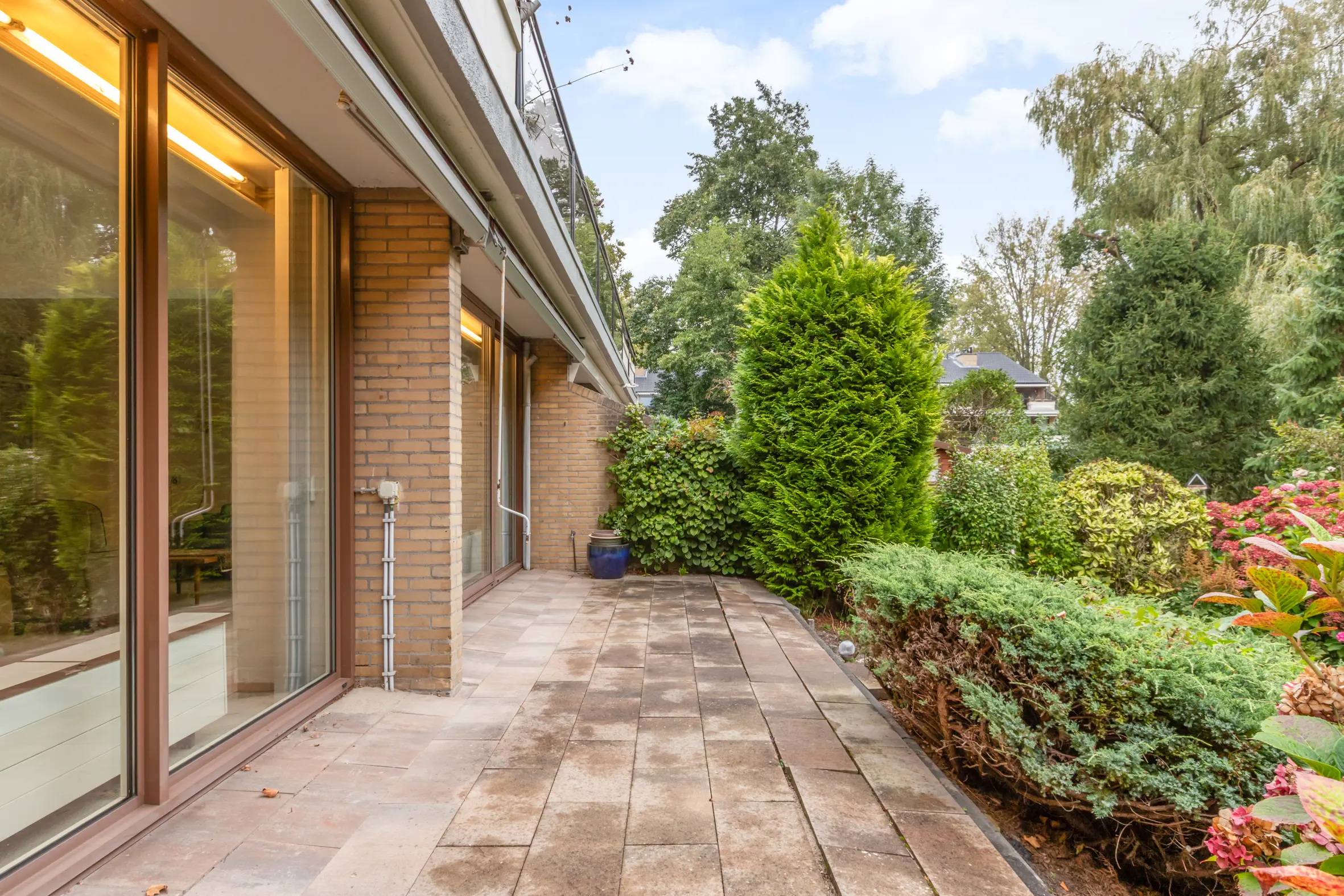 De achtertuin is zeer royaal en grenst direct aan het water. Met een oppervlakte van circa 180 m² is er volop ruimte om buiten te leven en te genieten van het groen. Dankzij de ligging op het zuidoosten is het hier ’s ochtends al zonnig, en blijft de zon tot in de vroege tot midden middag aanwezig. Direct achter de woning ligt een terras, de rest van de tuin is ingericht met gras en beplanting.