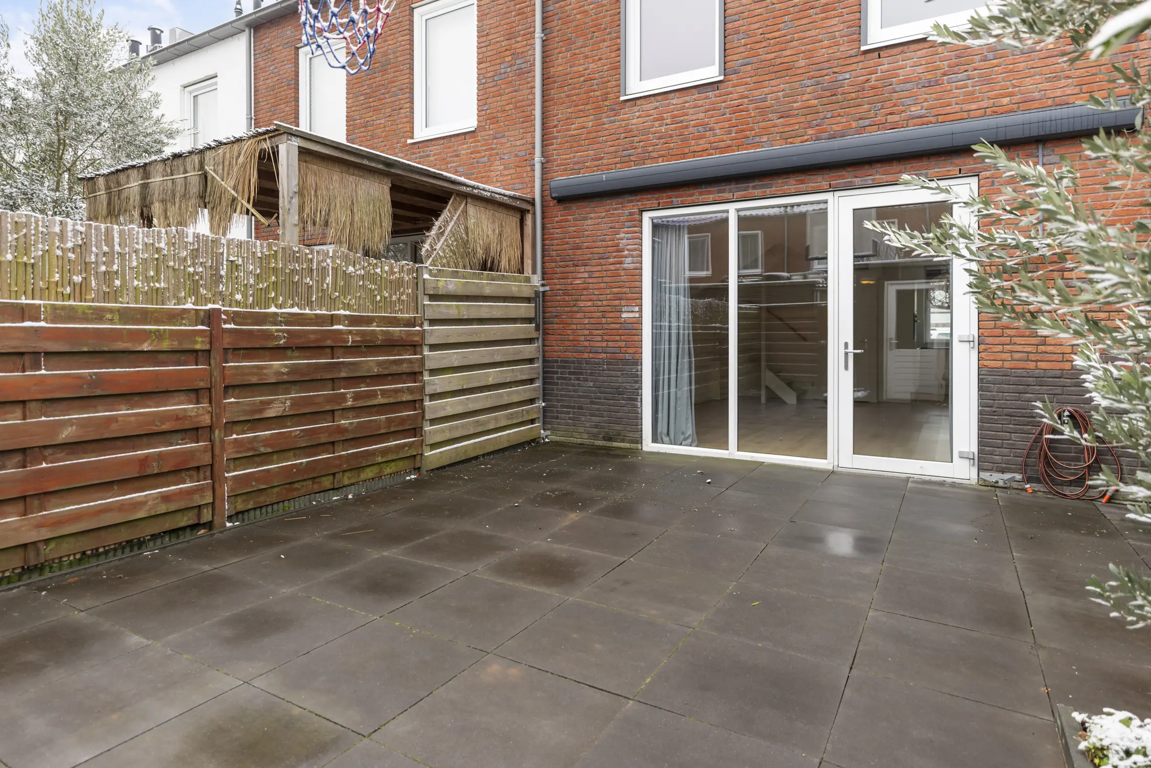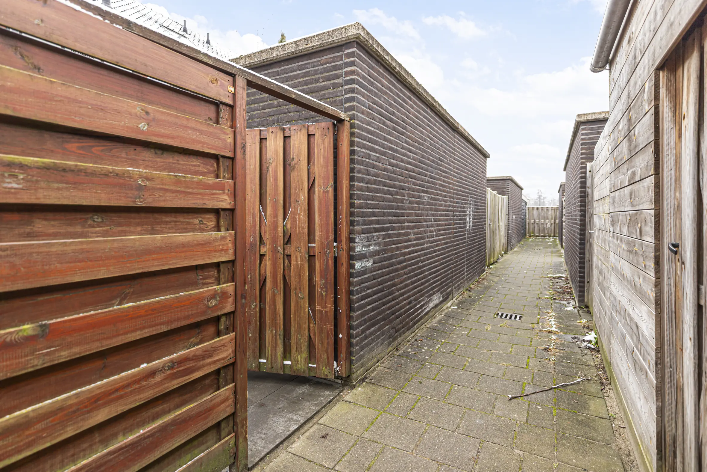 De achtertuin is onderhoudsvriendelijk aangelegd en is bereikbaar via de achterdeur en via de achterpoort. De tuin ligt op het oosten en beschikt over een stenen berging met elektra. In de voortuin is een laadpaal aanwezig.