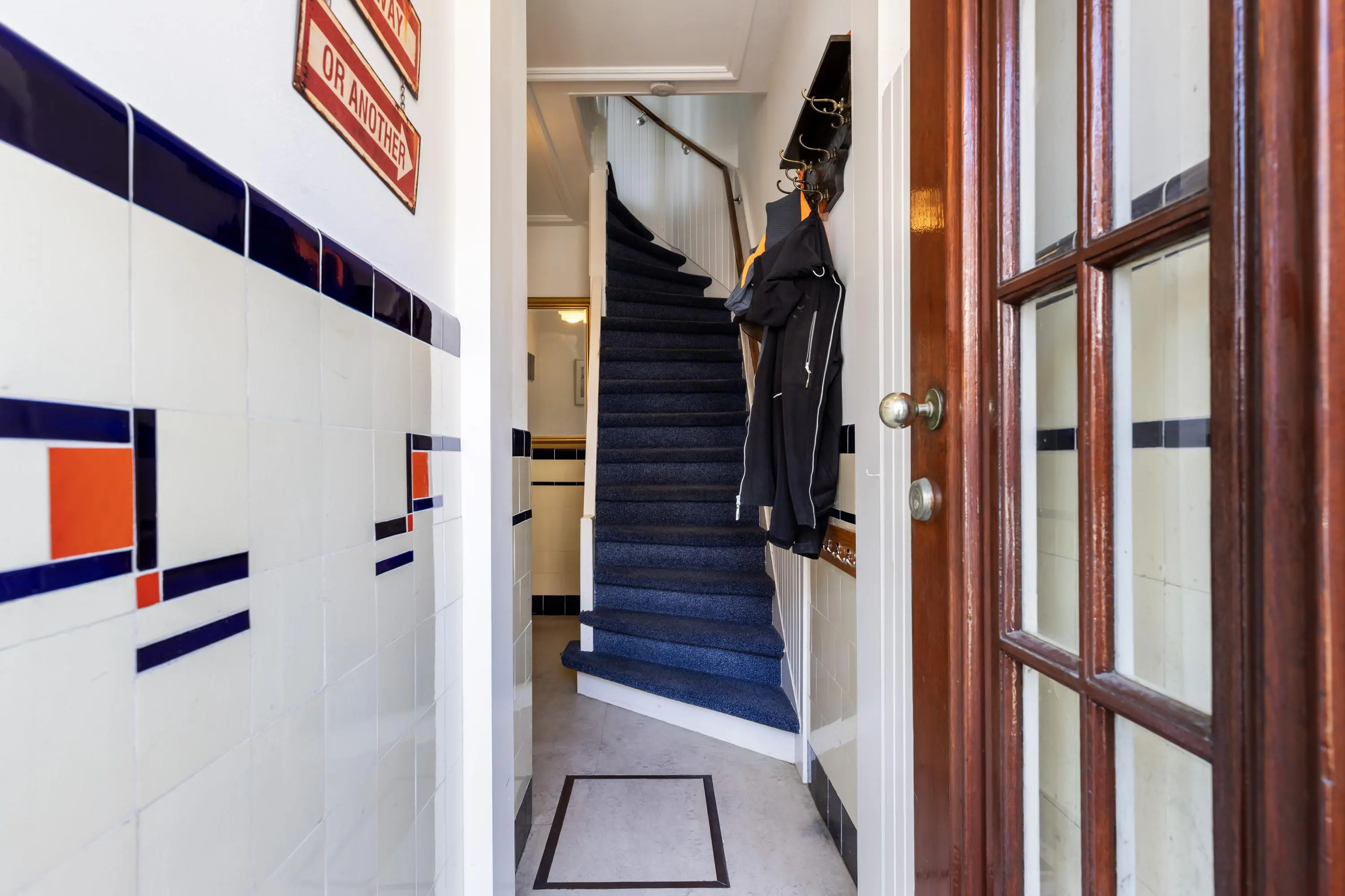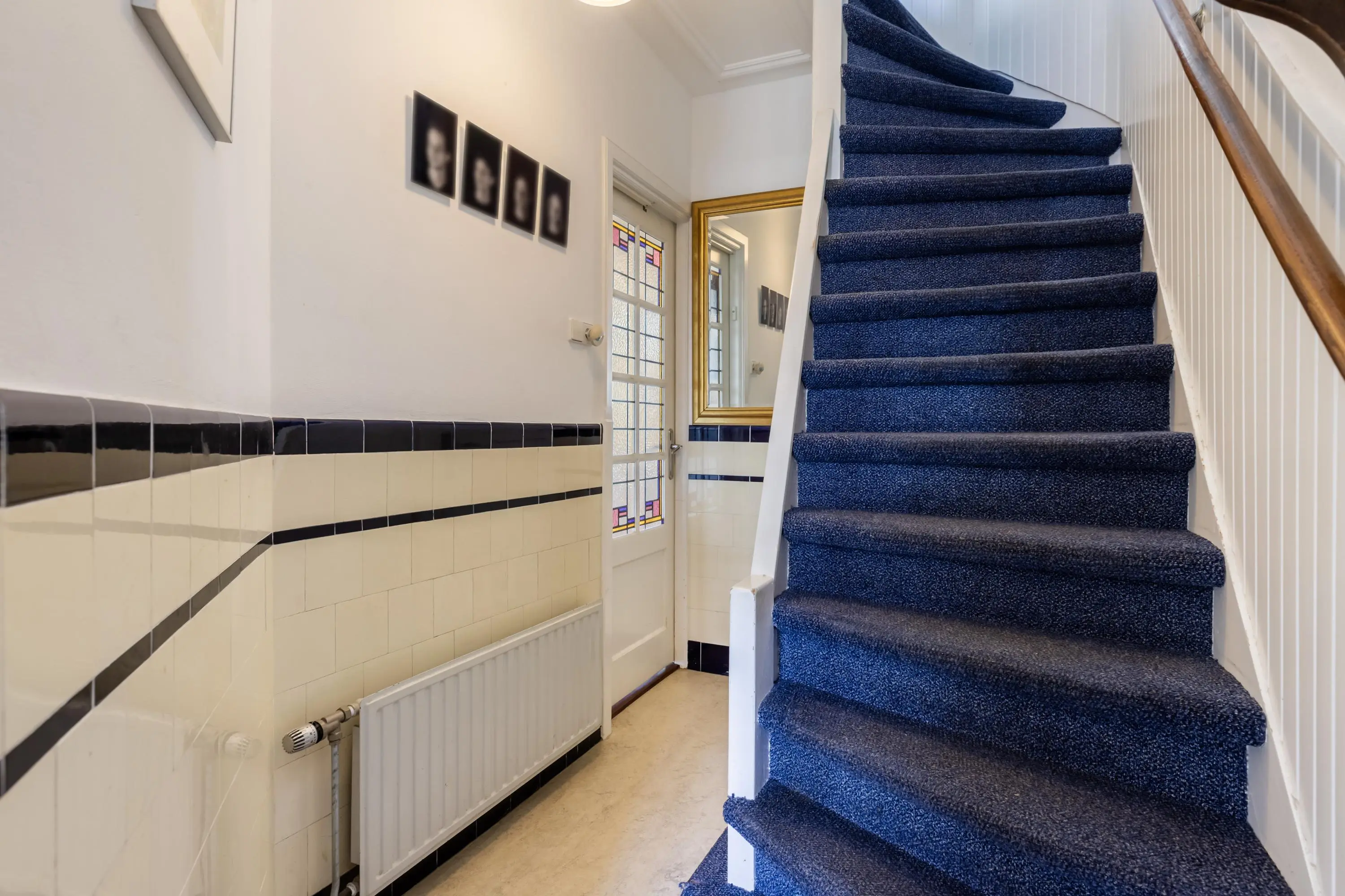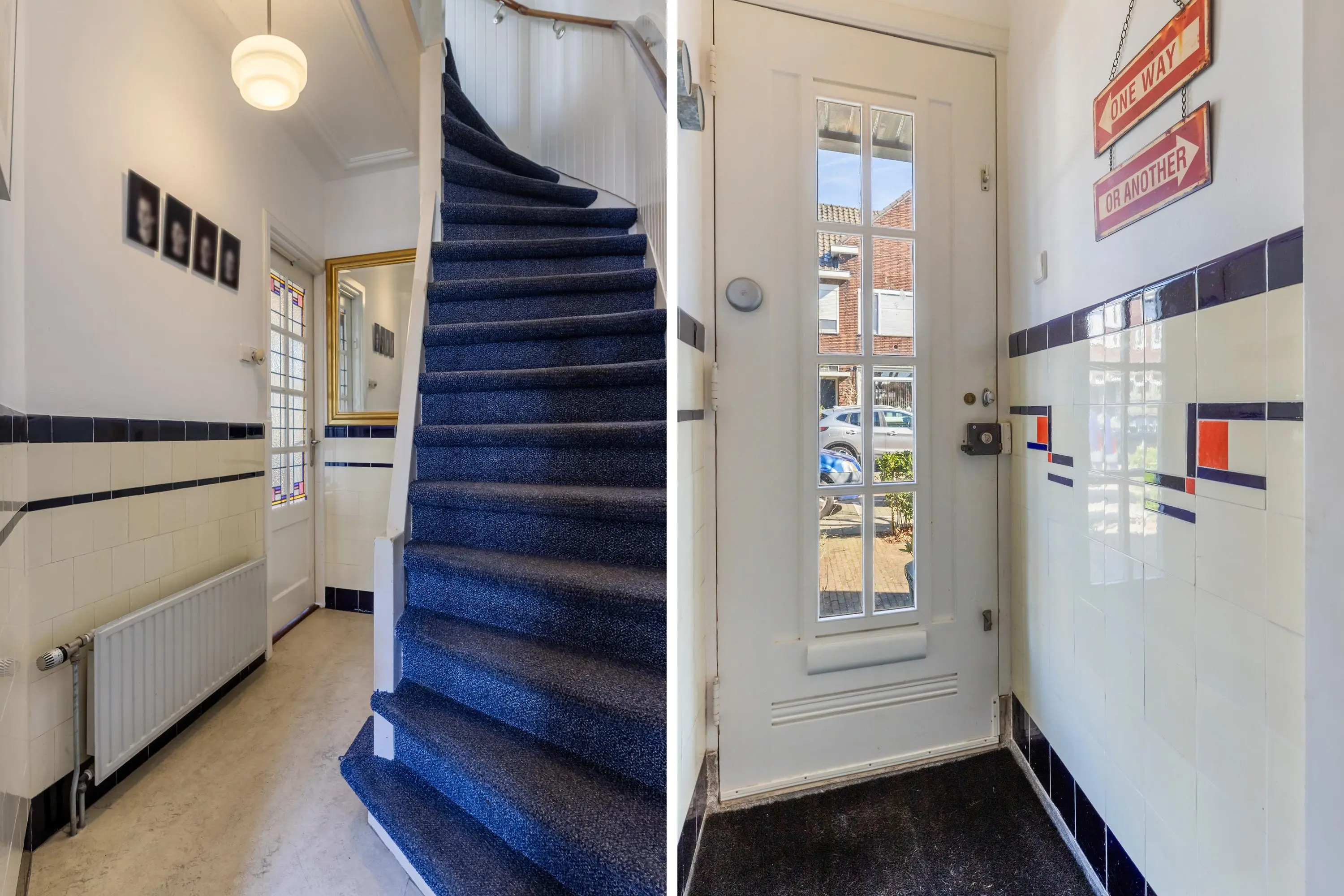 Via de entree kom je binnen in de hal met toiletruimte, voorzien van een staand toilet en originele tegels. Ook bevindt zich in de hal de vernieuwde meterkast.