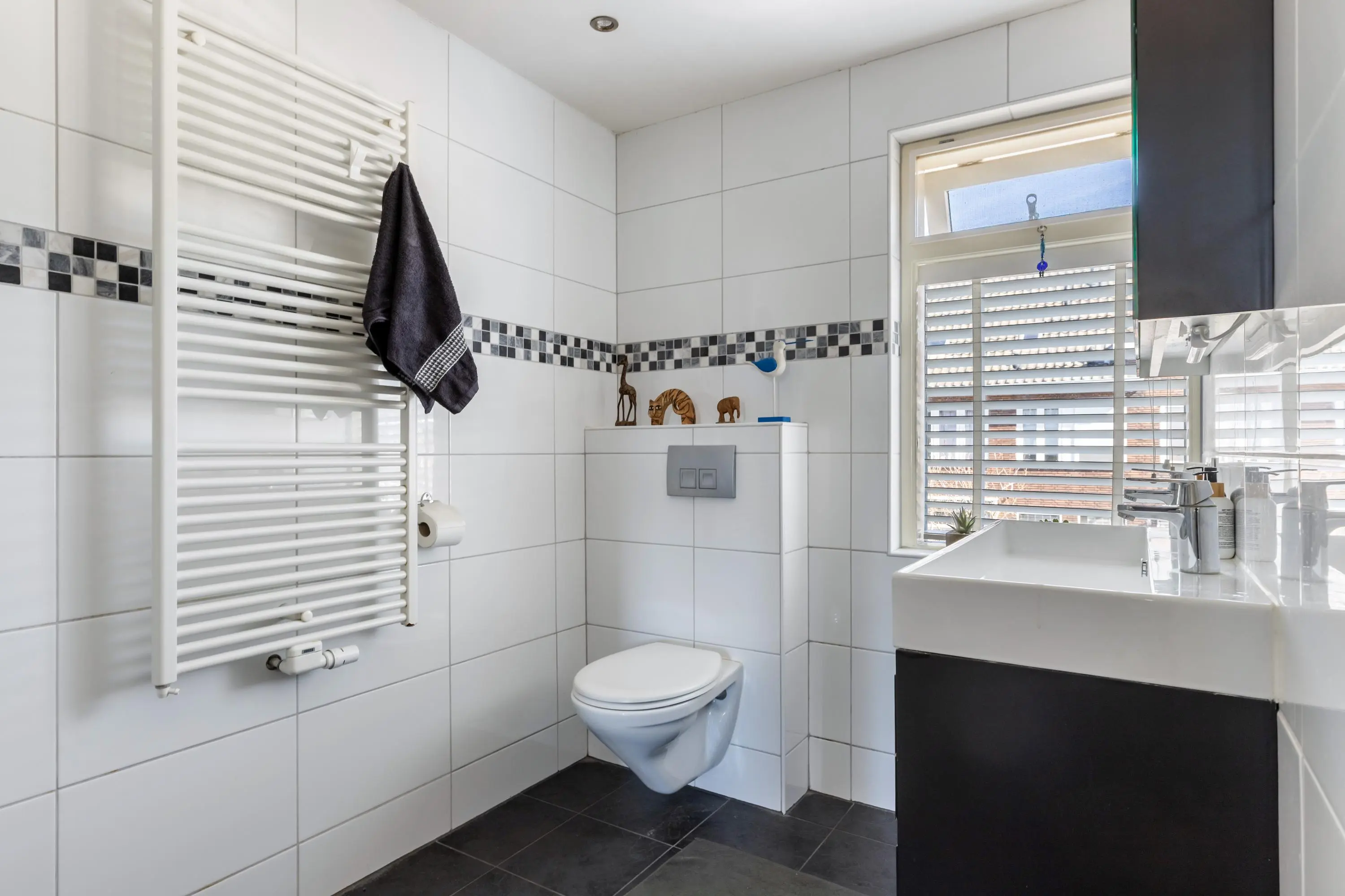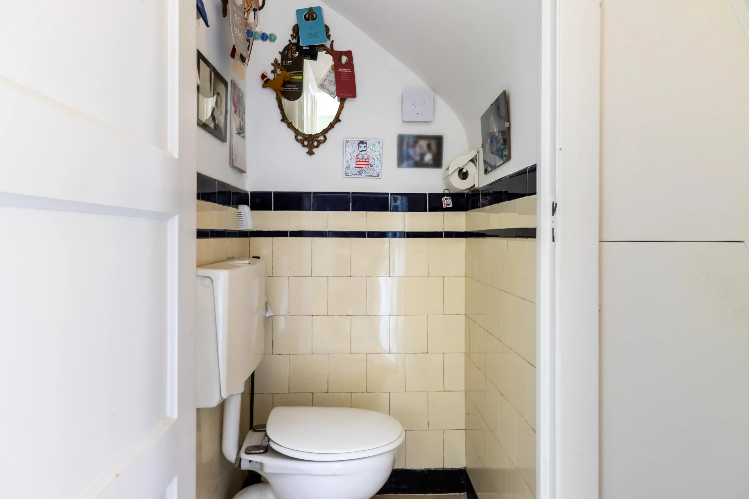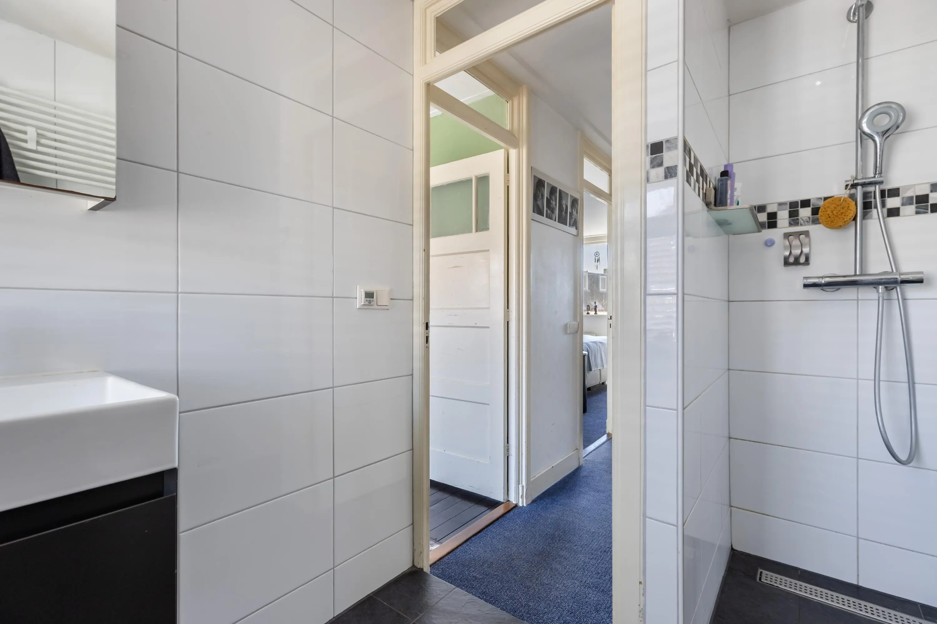Via de entree kom je binnen in de hal met toiletruimte, voorzien van een staand toilet en originele tegels. Ook bevindt zich in de hal de vernieuwde meterkast.