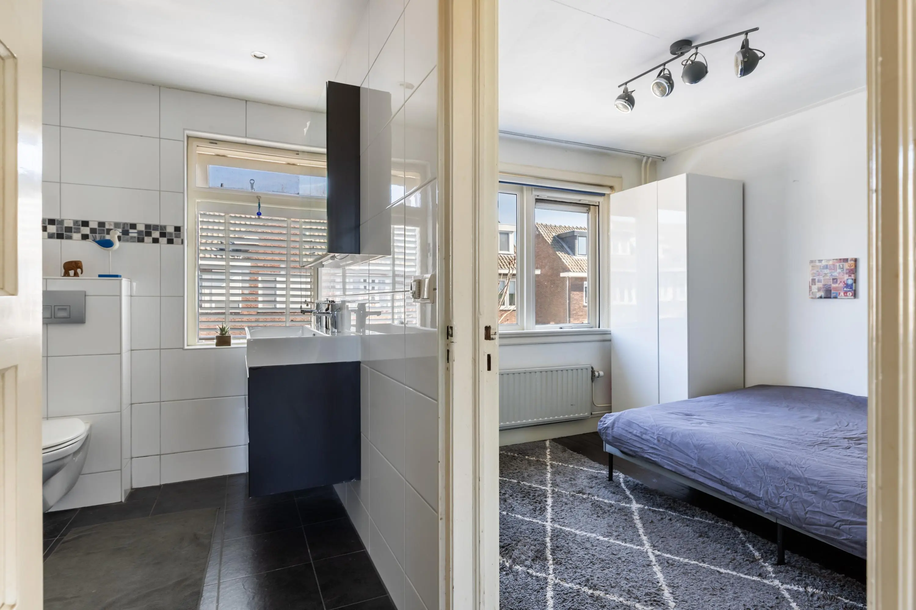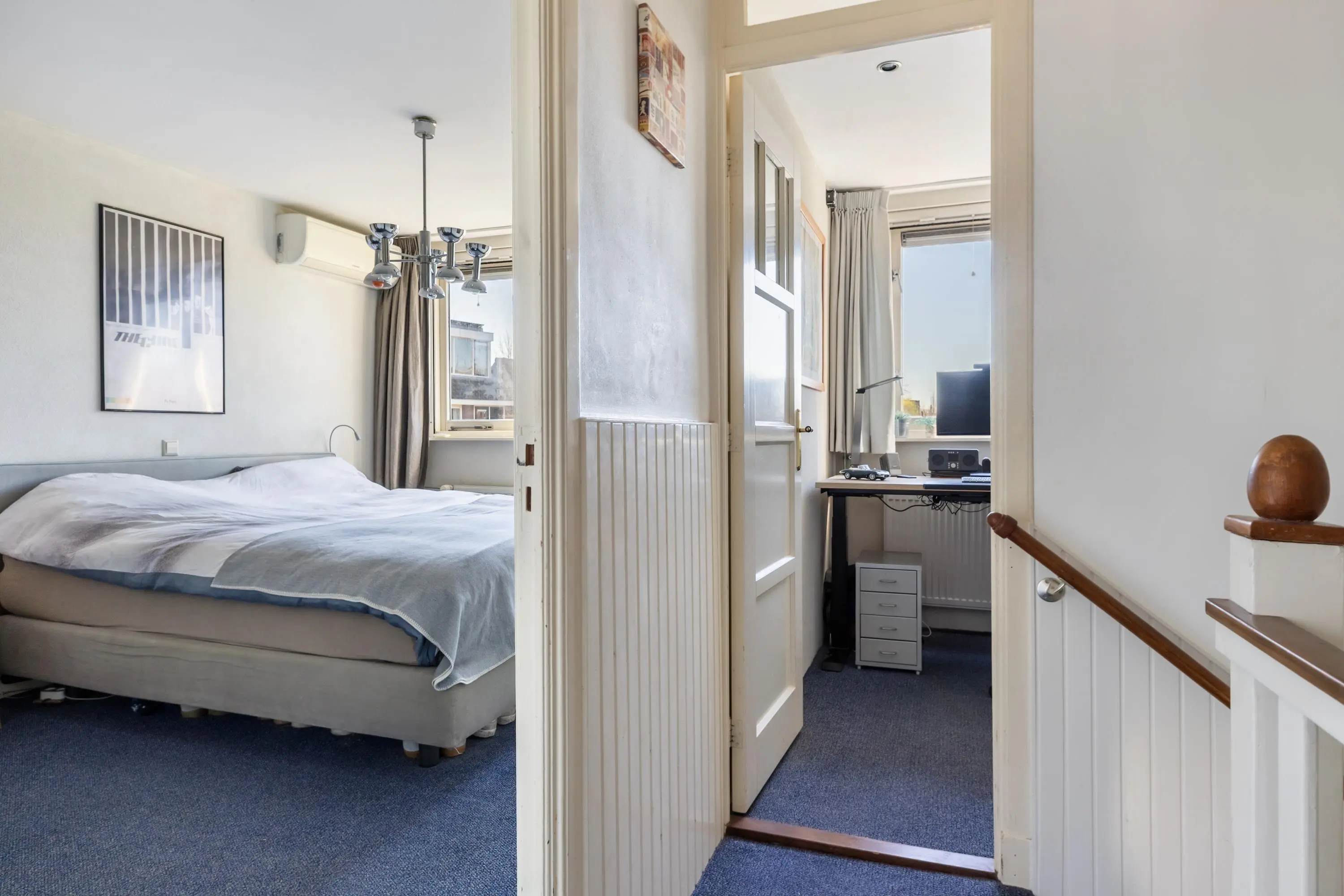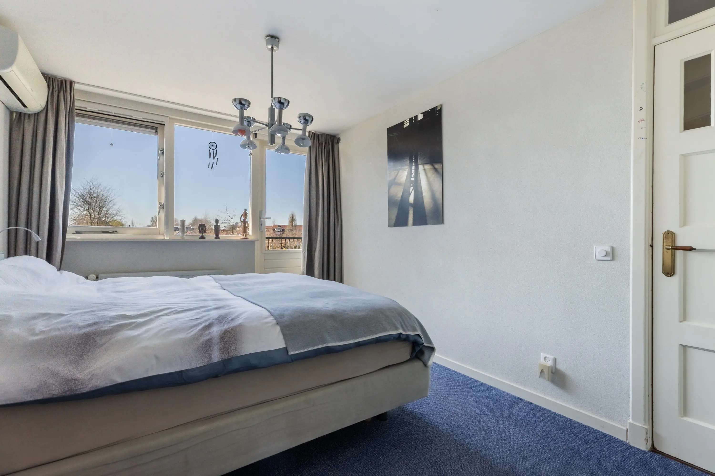 De grootste slaapkamer ligt aan de achterzijde en is uitgebouwd. Deze kamer beschikt over een vaste kastenwand, airconditioning en een deur naar het ruime terras. Daarnaast is er een handmatig zonnescherm aanwezig. De wanden zijn afgewerkt met spachtelputz en op de vloer ligt vloerbedekking. De tweede slaapkamer ligt eveneens aan de achterzijde en is goed te gebruiken als werkkamer. De derde slaapkamer bevindt zich aan de voorzijde van de woning. De badkamer is voorzien van: