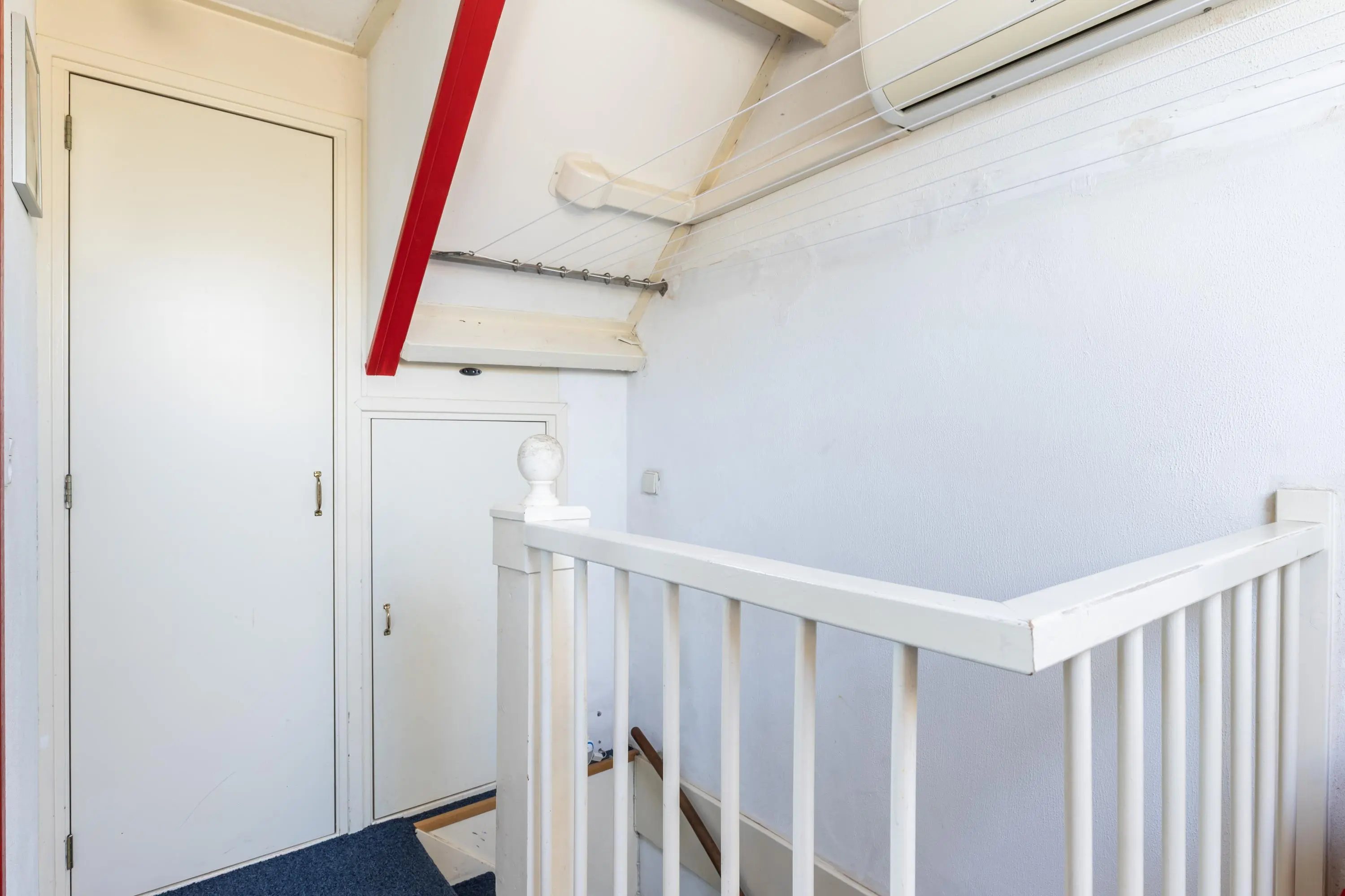 De overloop geeft toegang tot 3 slaapkamers, de badkamer en de trap naar de tweede verdieping.