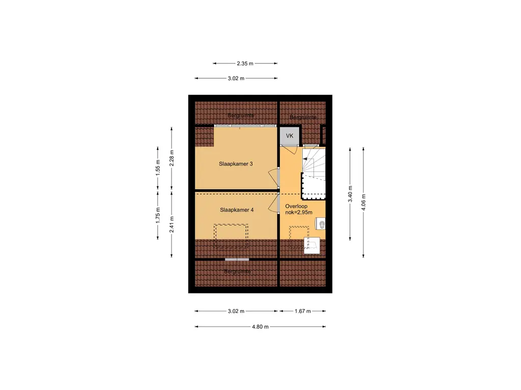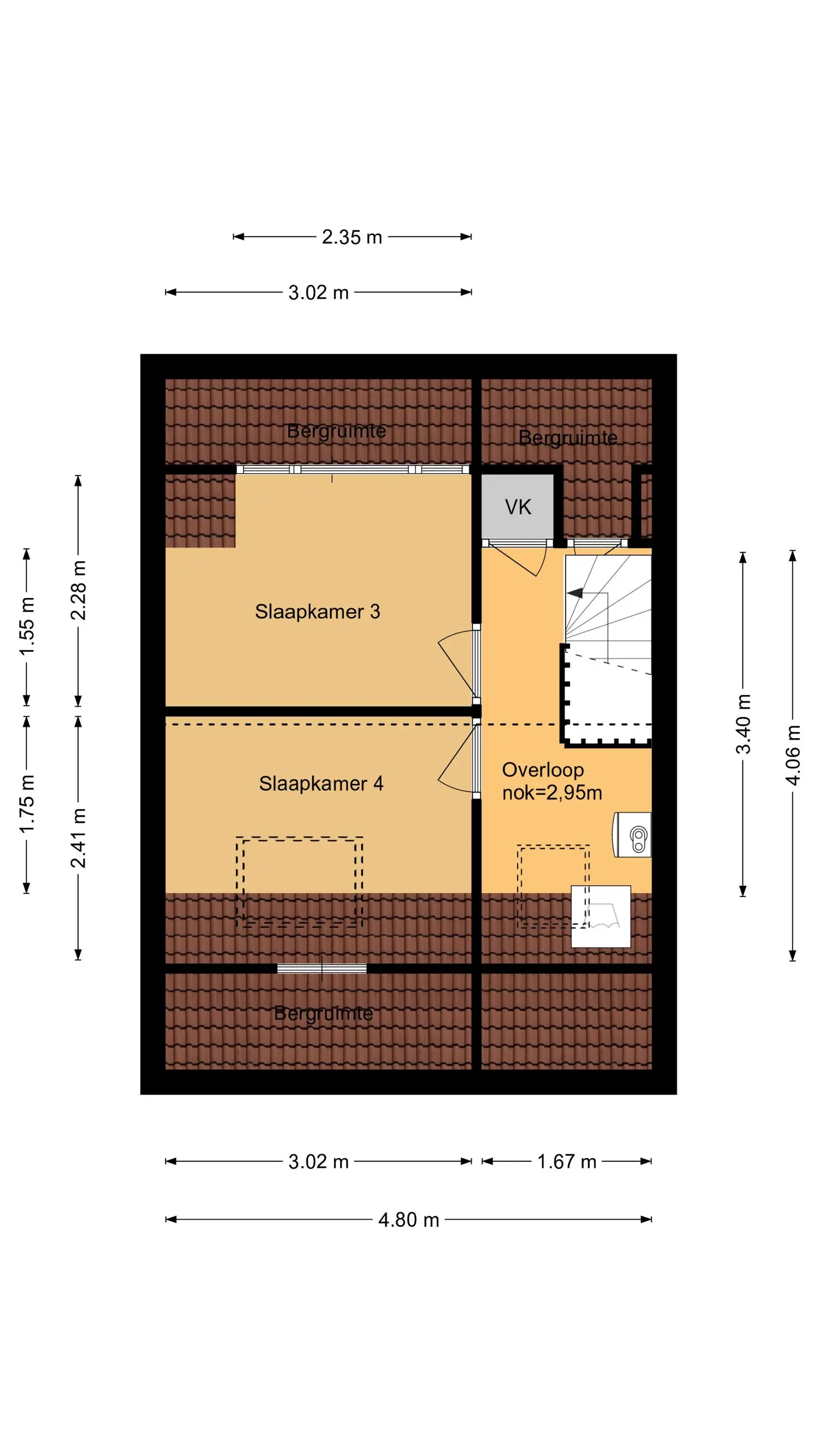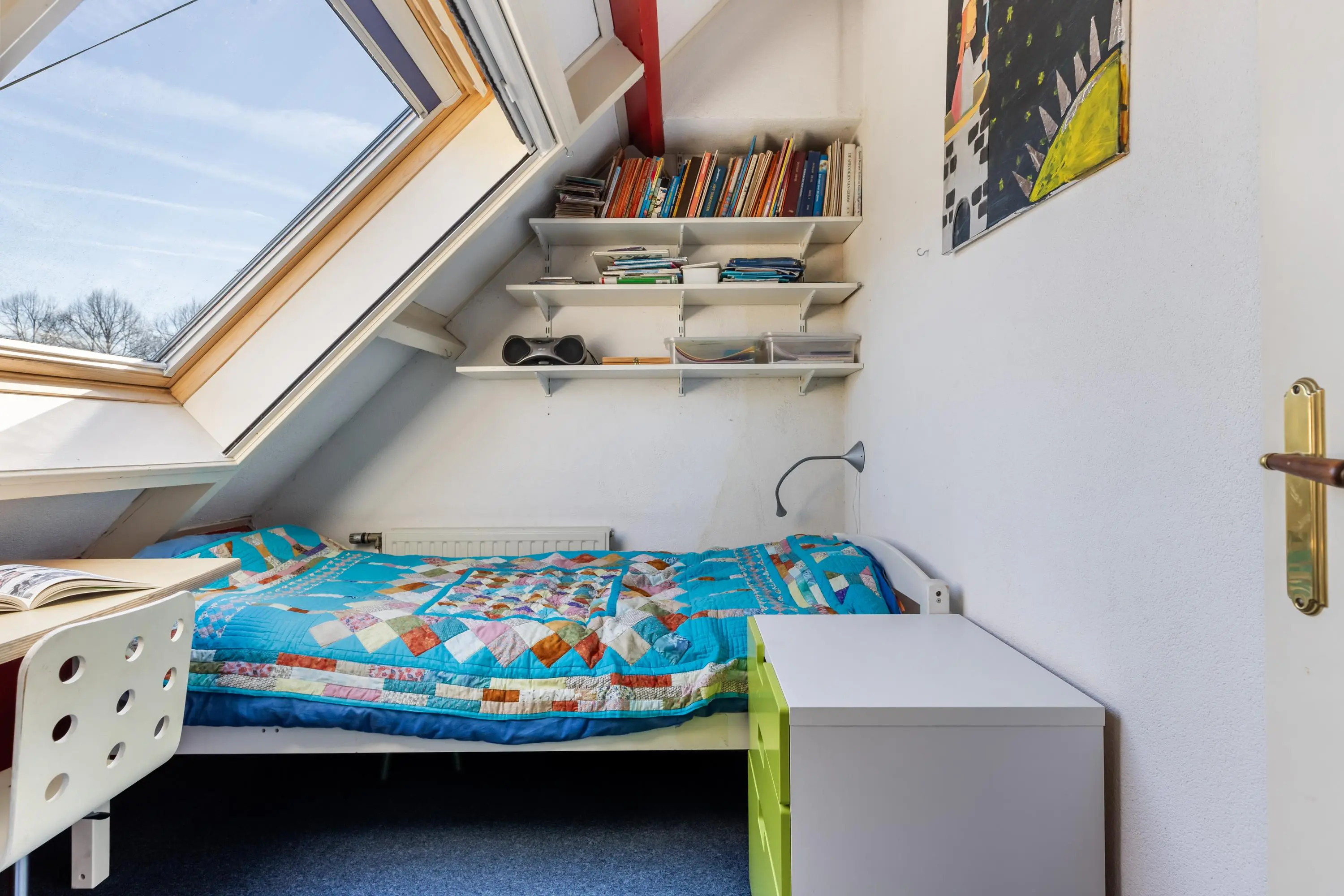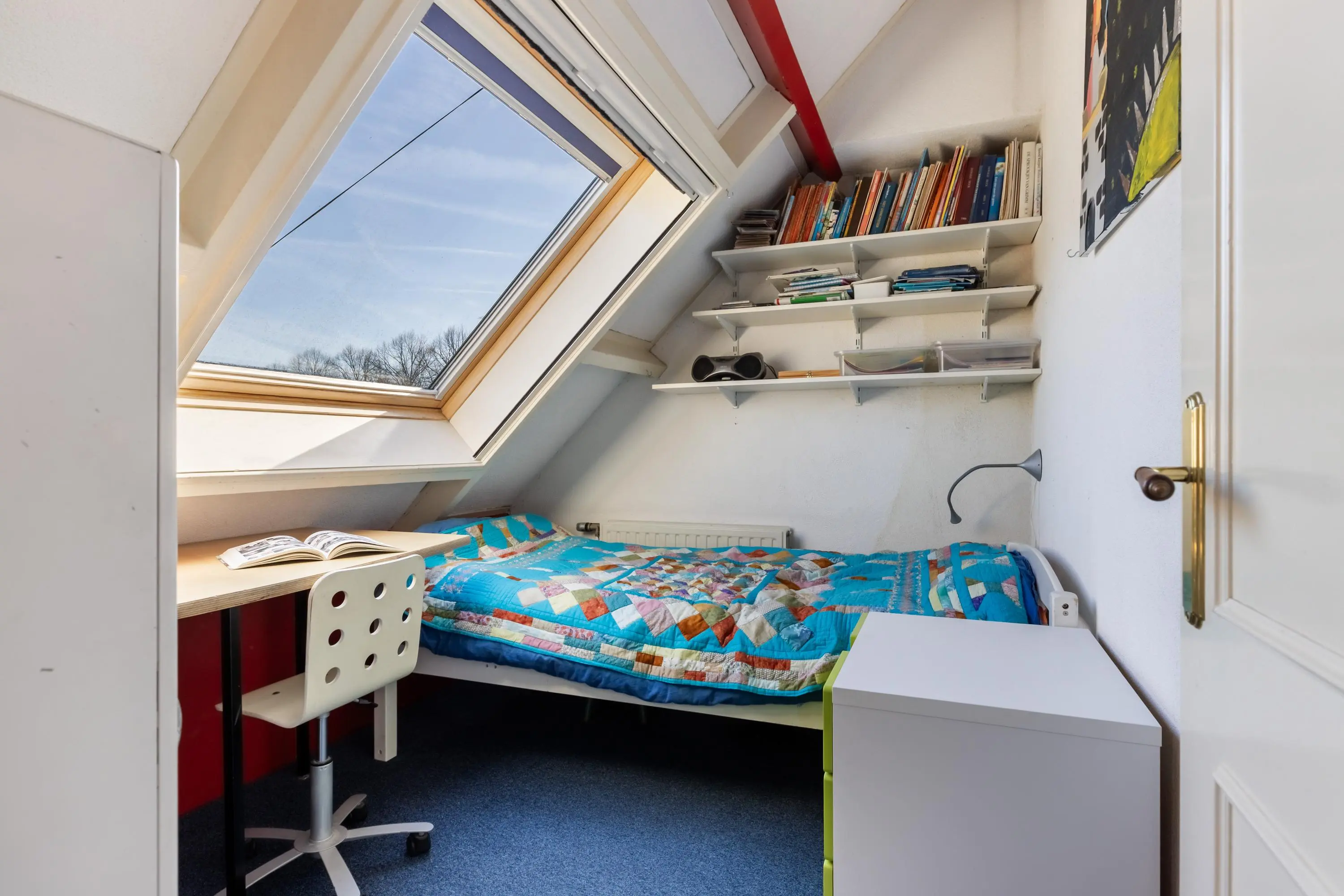 Op de tweede verdieping kom je eerst op een ruime voorzolder met Velux dakraam. Hier bevinden zich de wasmachineaansluiting, de omvormer zonnepanelen, de cv-ketel, airco unit, veel diepe bergruimte en een opbergzolder. Verder zijn er op deze verdieping nog 2 slaapkamers aanwezig. Eén kamer (voorzijde) is voorzien van een groot Velux dakraam en de andere kamer van een dakkapel met zonwerend screen. Beide kamers zijn afgewerkt met vloerbedekking. In de knieschotten van beide kamers is ook veel bergruimte aanwezig.