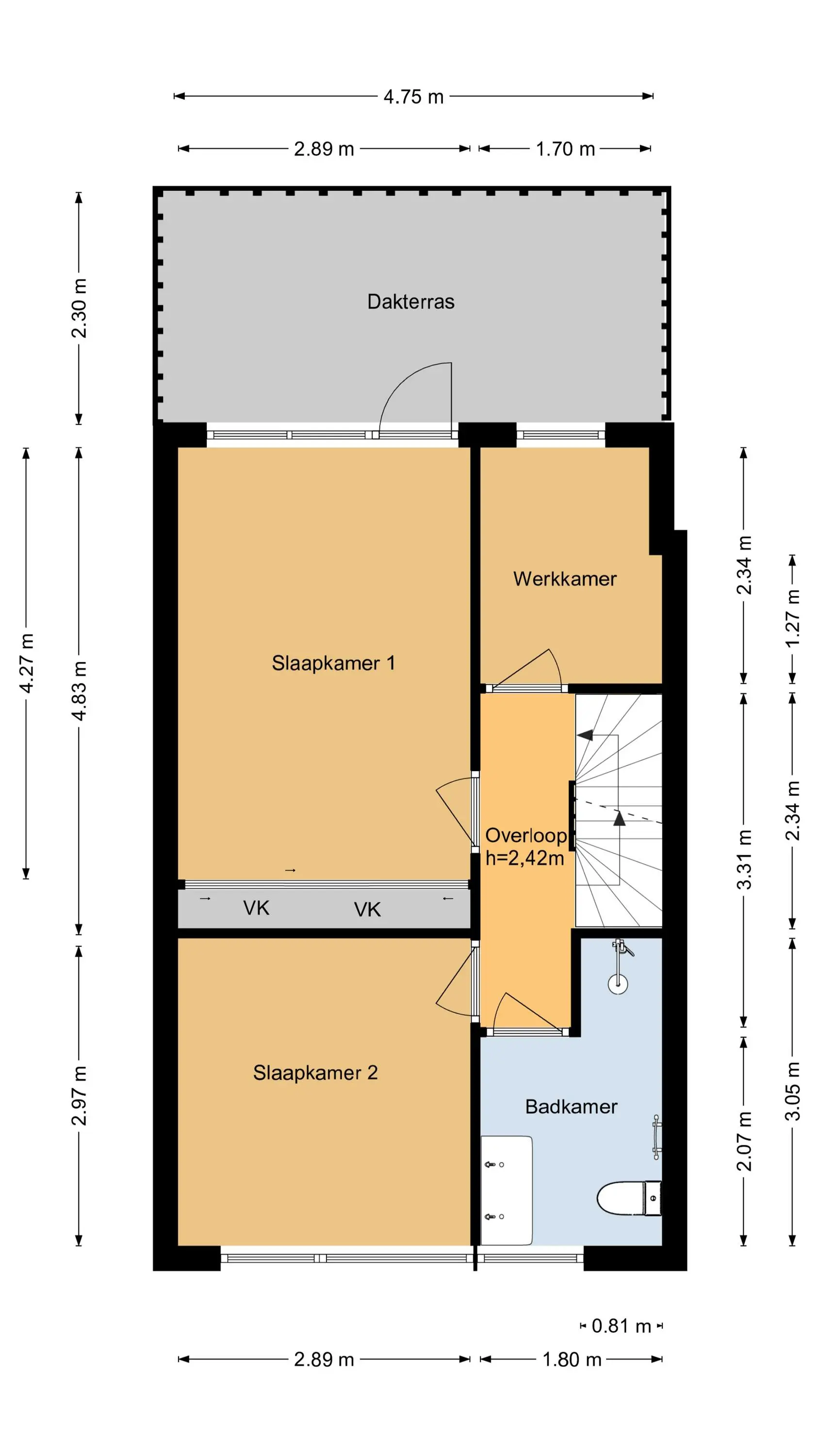 - Uitbouw op zowel de begane grond als eerste verdieping;