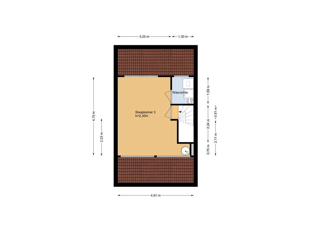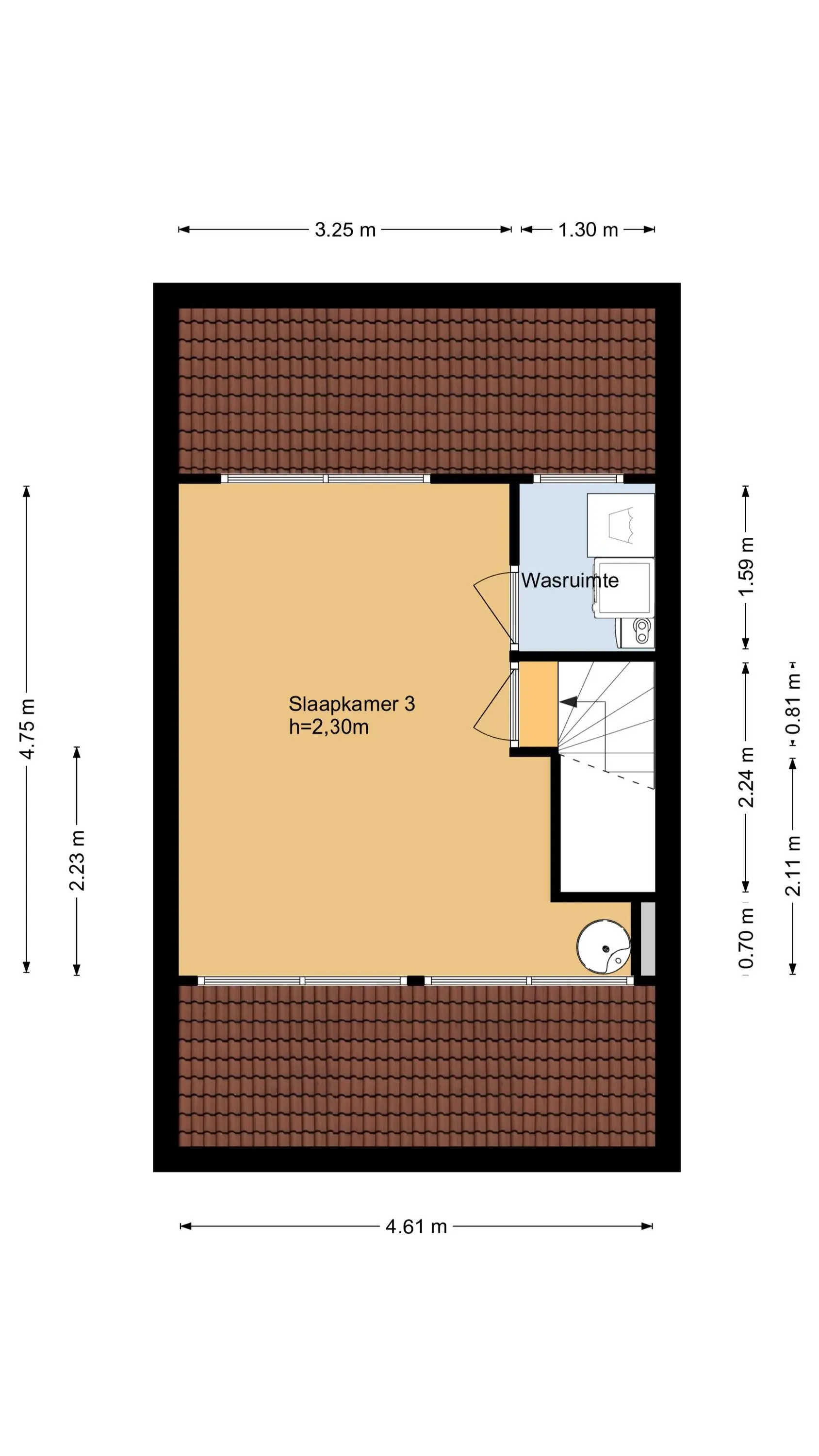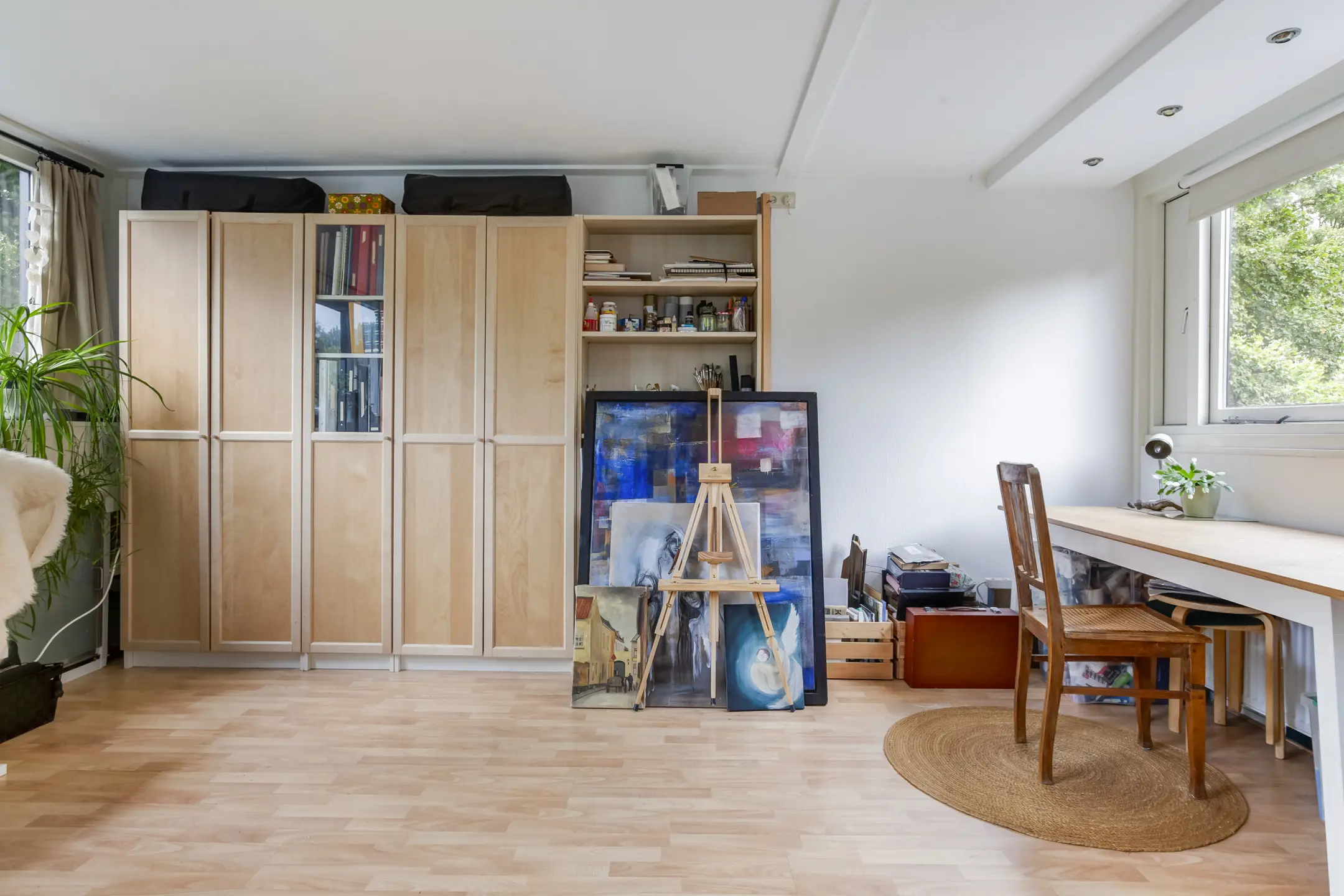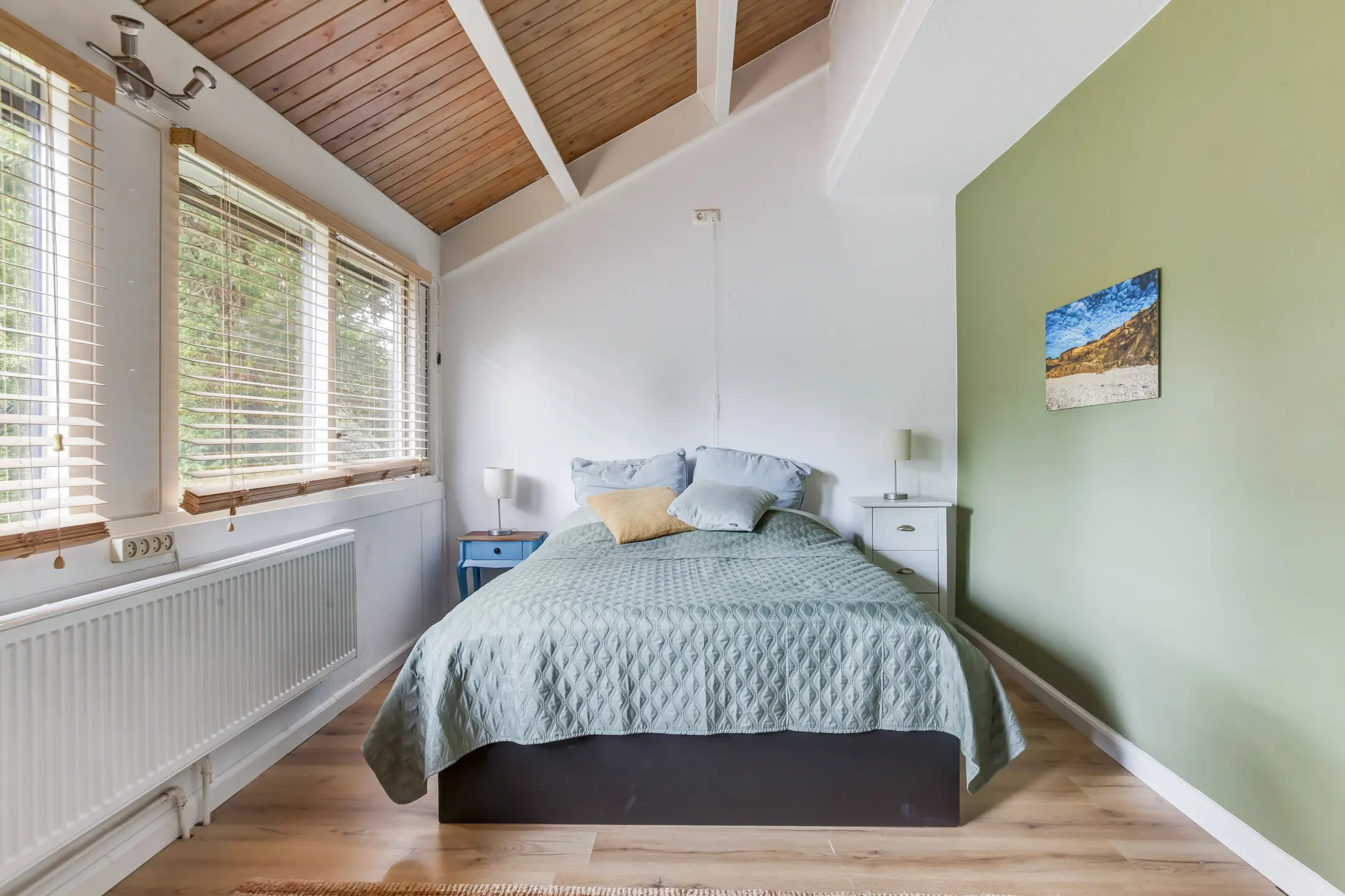 De zolderkamer is royaal en heeft een dakkapel waardoor er volop daglicht binnenkomt. In de aparte technische ruimte vind je de aansluitingen voor wasmachine en droger en de opstelling van de cv-ketel.