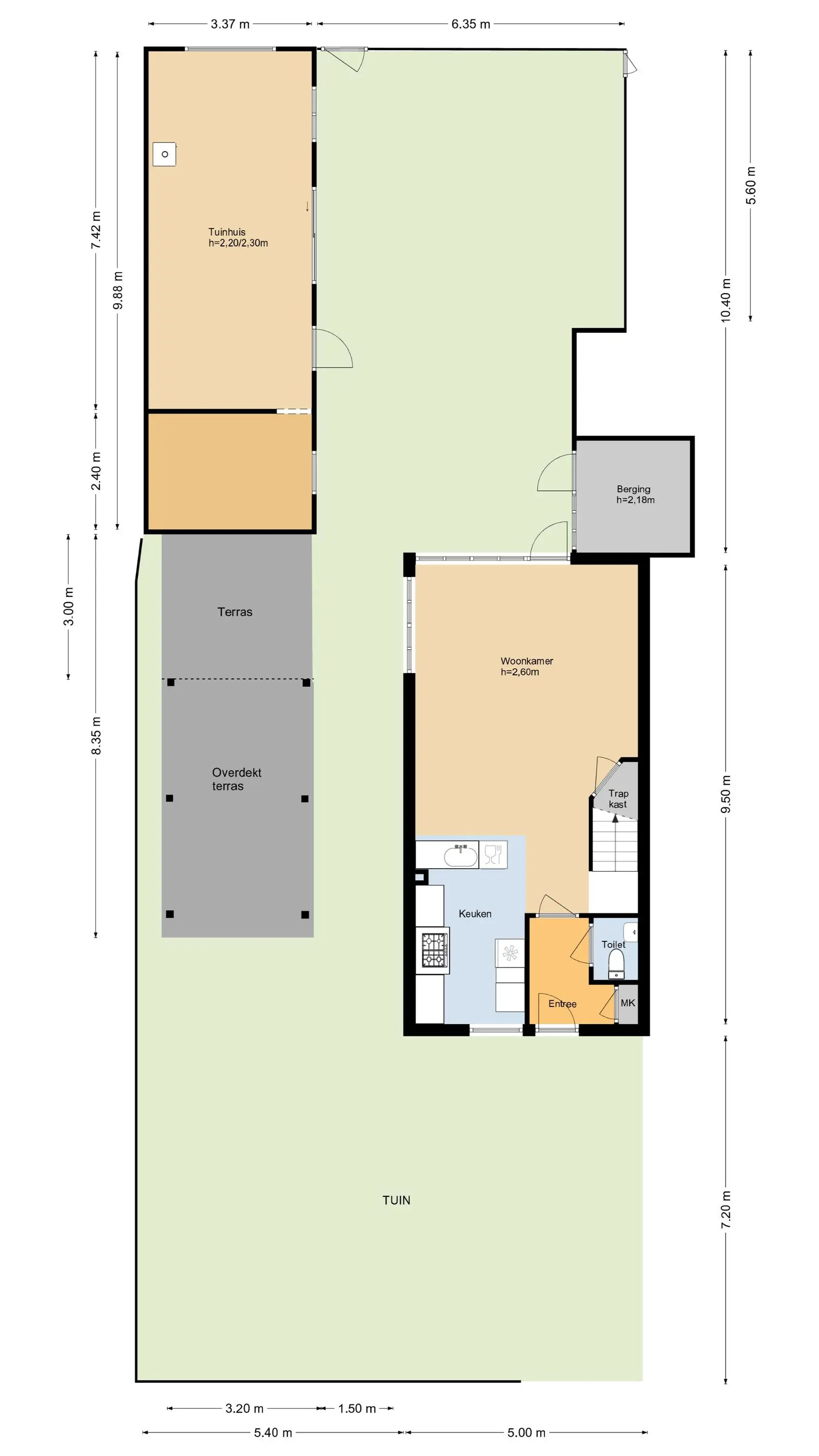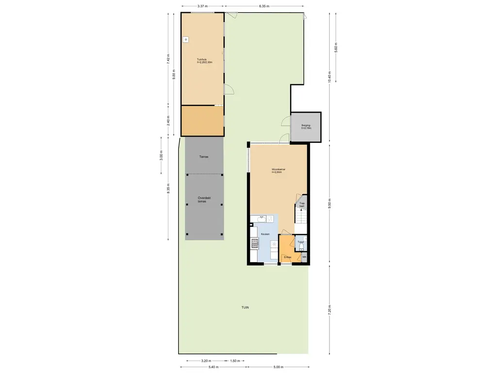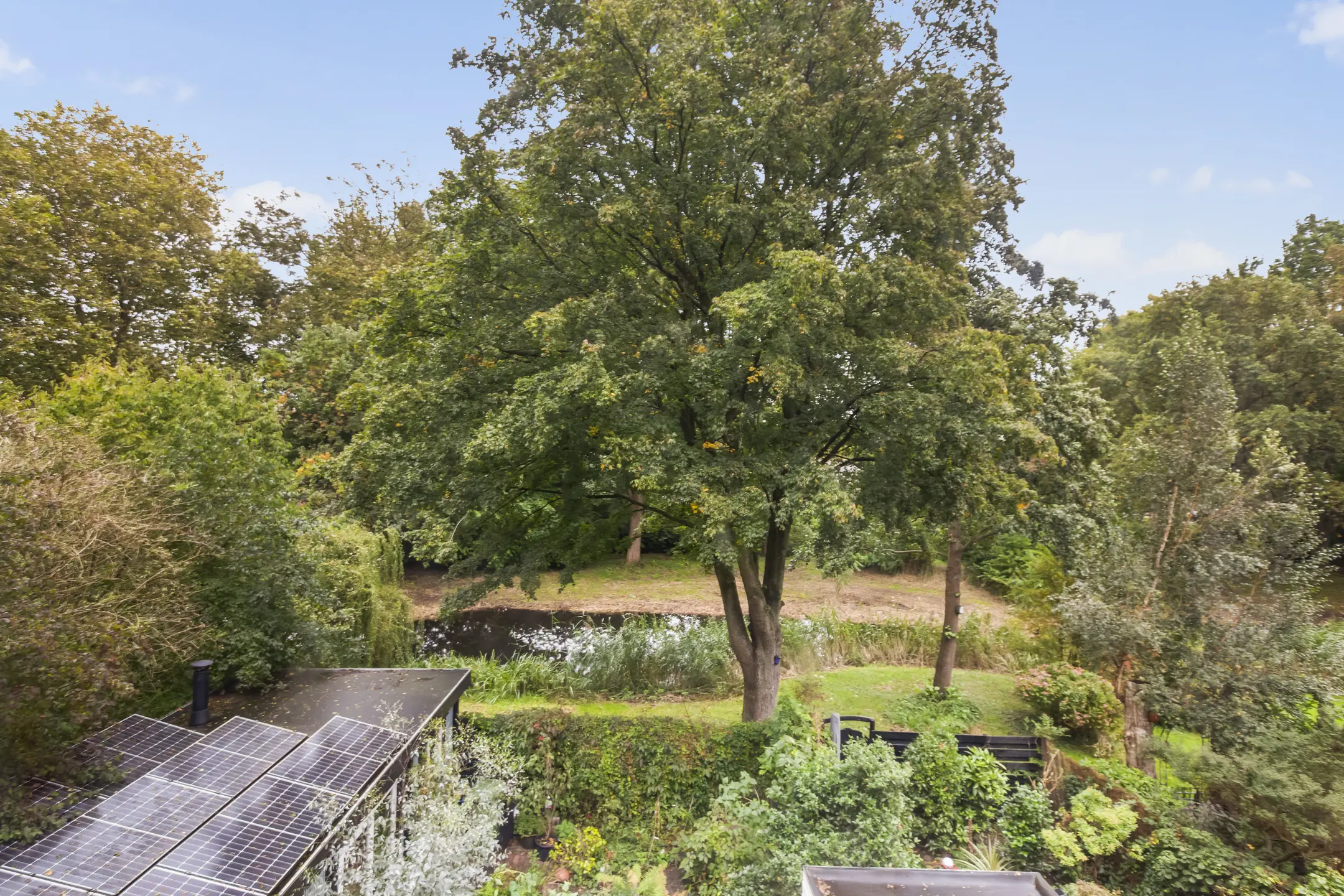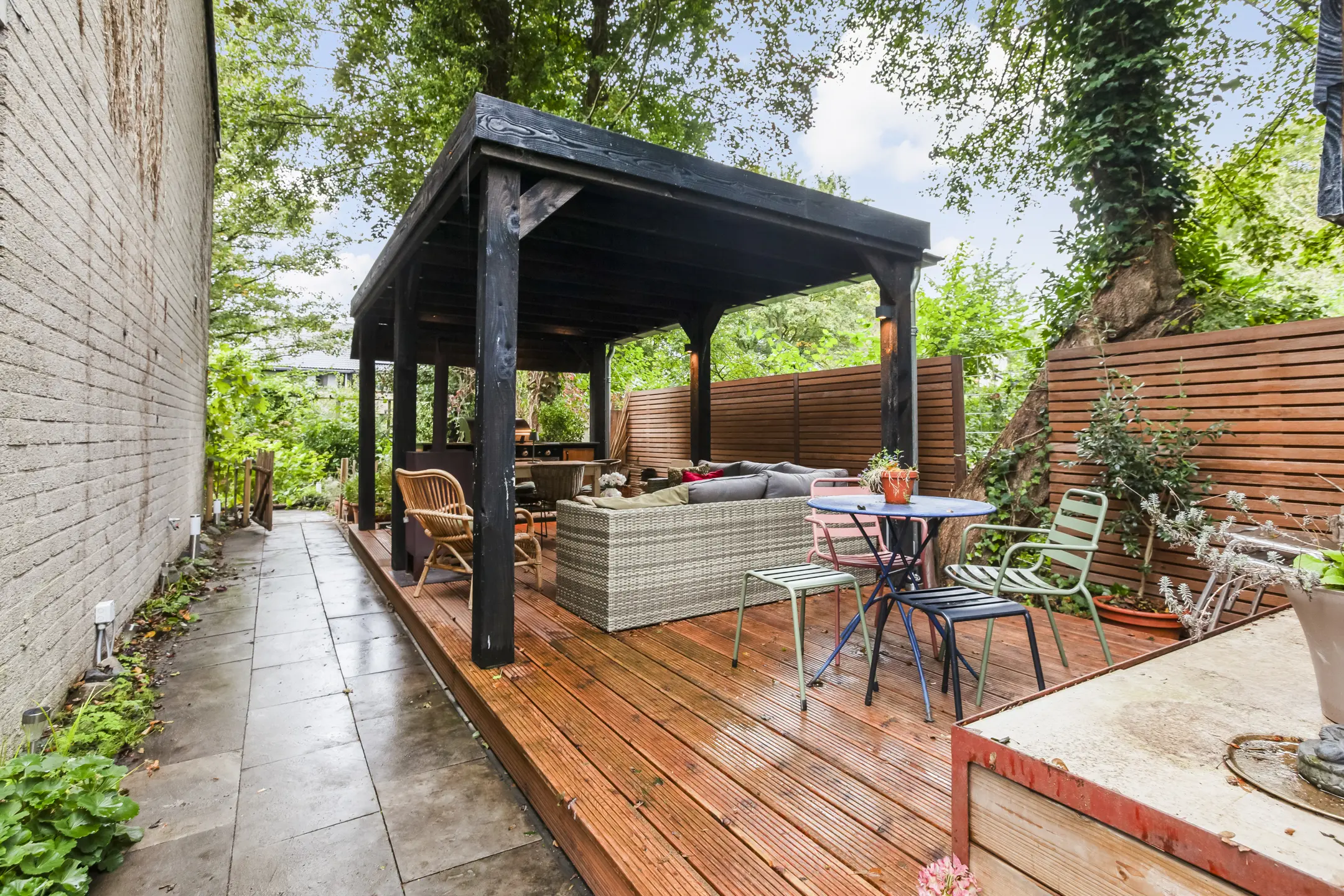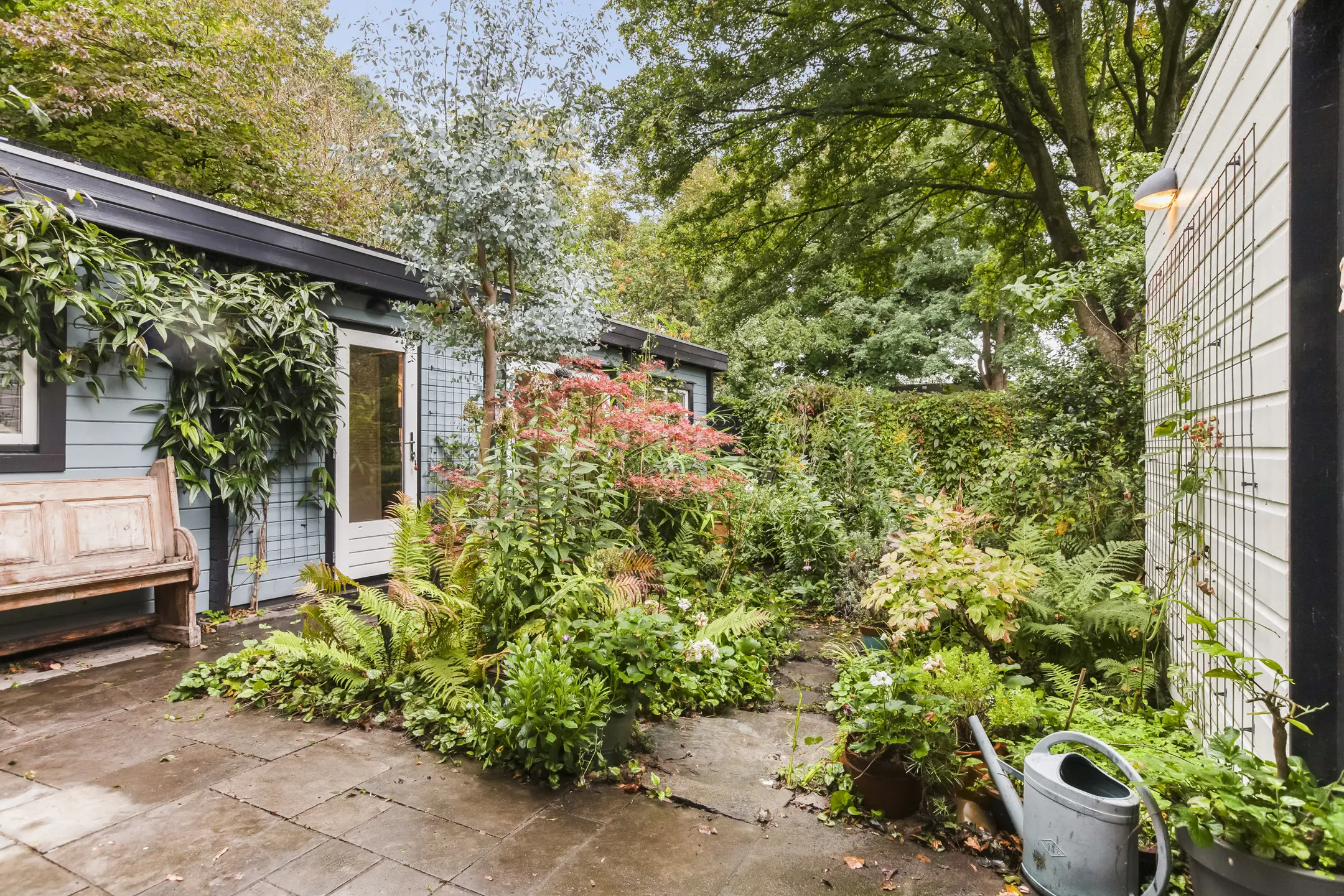 De achtertuin is verrassend ruim en biedt veel mogelijkheden. Achterin de tuin staat een bijgebouw/kantoor dat in 2020 is gerealiseerd en is voorzien van een schuifpui, houtkachel en zonnepanelen. Dit is een fijne plek om te werken of te ontspannen. In 2025 is het buitenschilderwerk van de woning nog professioneel uitgevoerd inclusief de kozijnen van het bijgebouw. Verder vind je in de tuin een houten berging en een royale overkapping met buitenkeuken, geplaatst begin 2025 en voorzien van elektra. Ideaal voor lange zomeravonden.