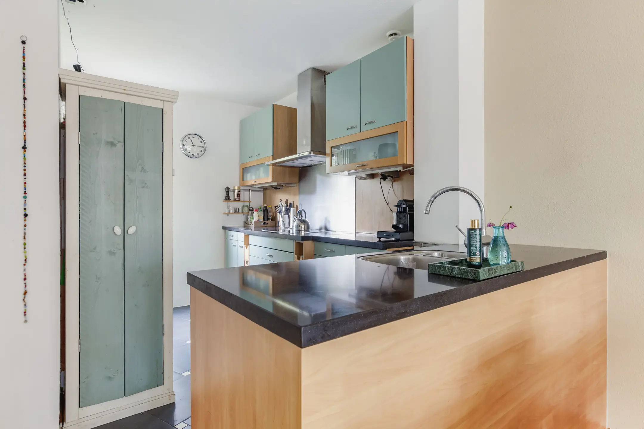 Je komt binnen in een nette hal met garderobe, vernieuwde meterkast en toiletruimte met staand toilet en fonteintje. De keuken ligt aan de voorzijde van de woning en is voorzien van onder meer: