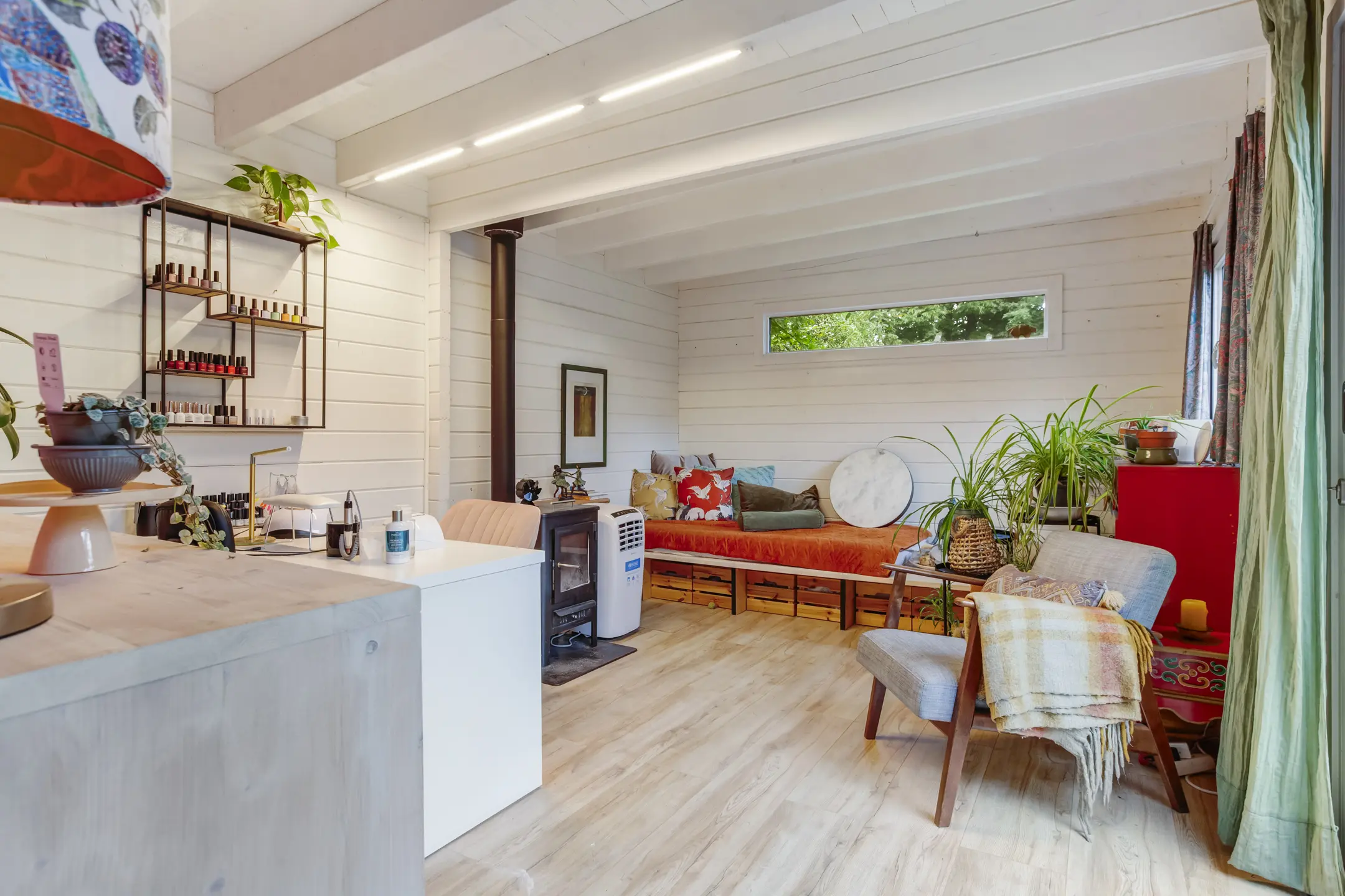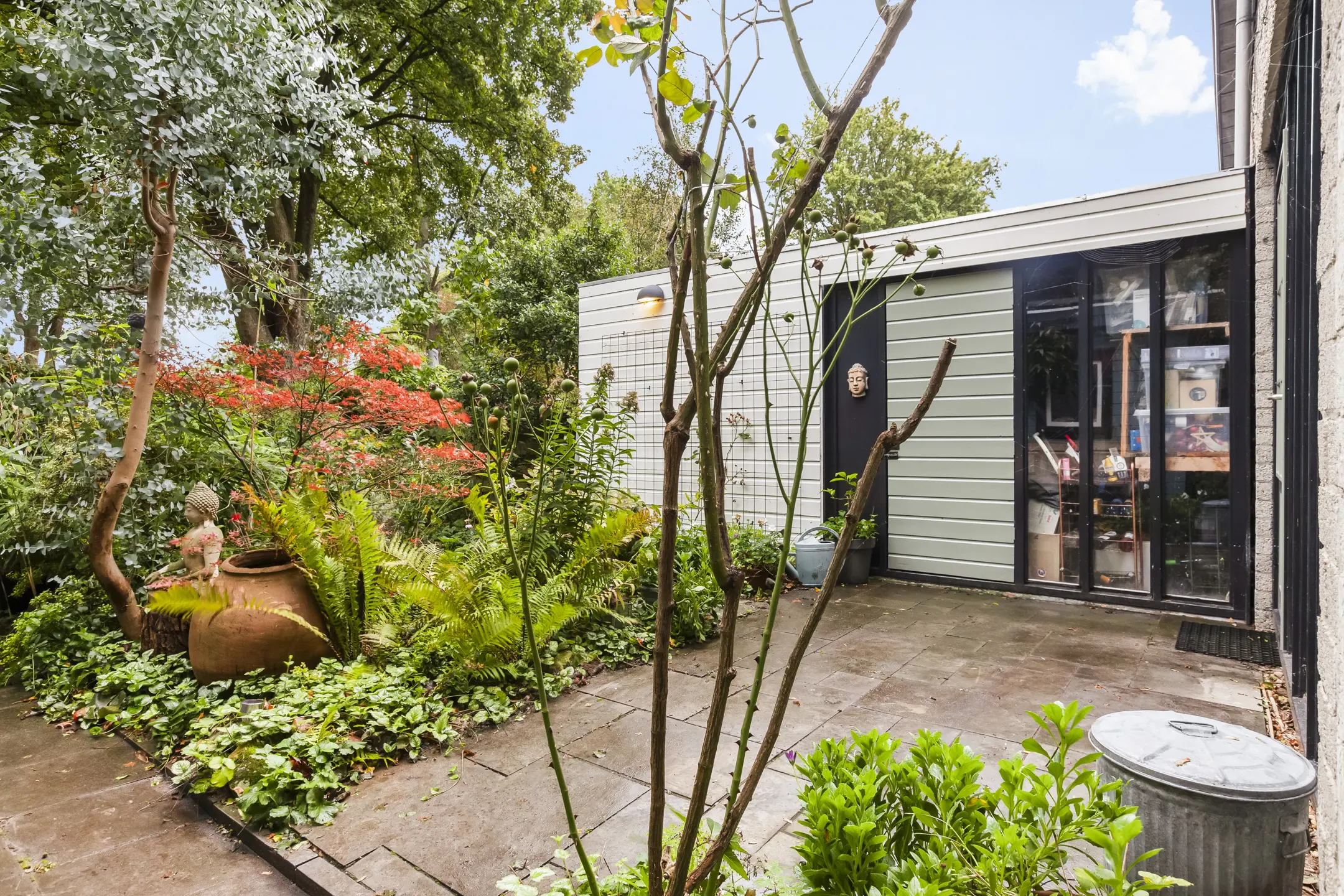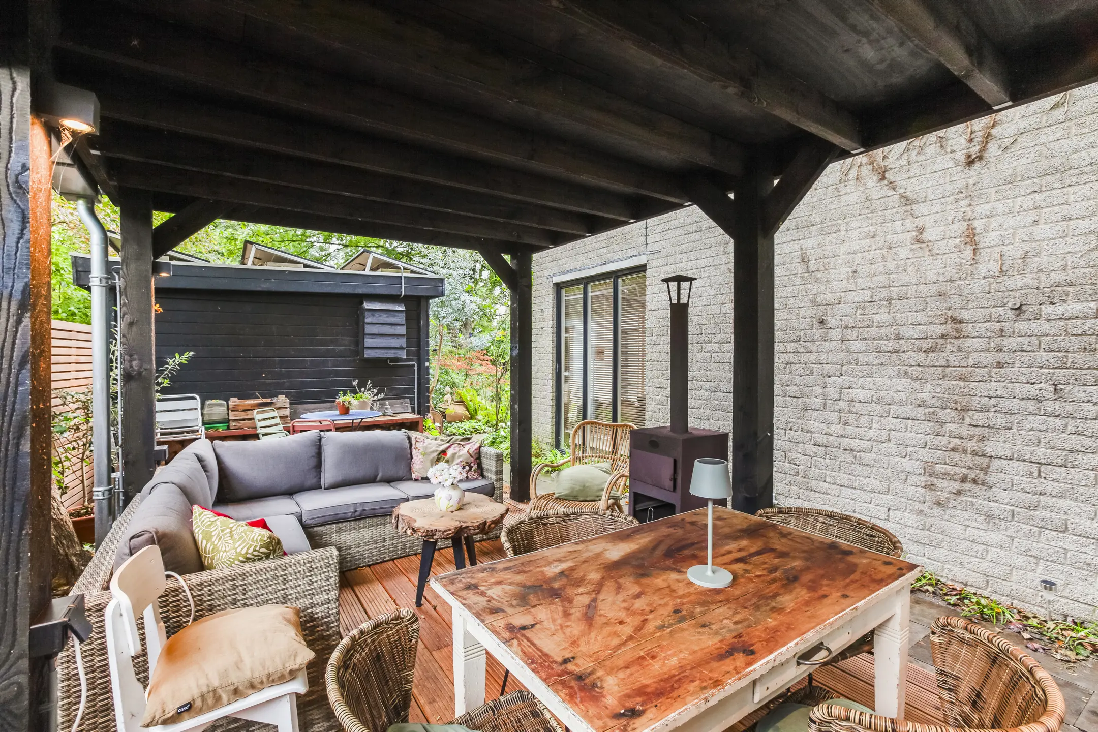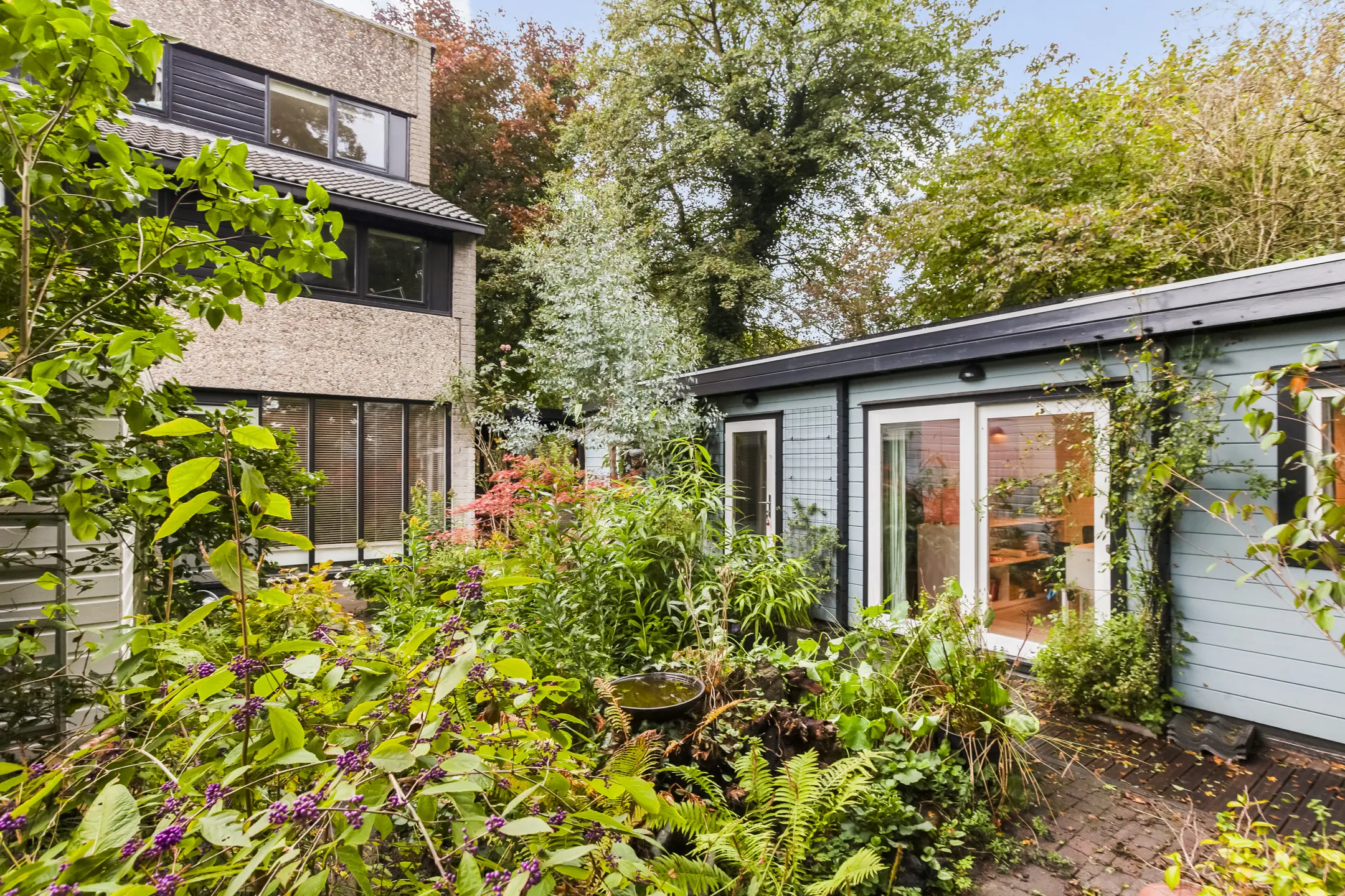 - Ruim, vrijstaand bijgebouw/kantoor in achtertuin (2020), voorzien van schuifpui, houtkachel en 12 zonnepanelen;