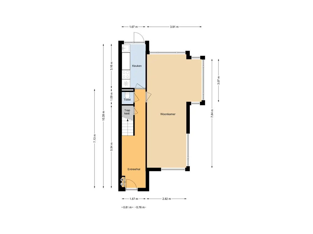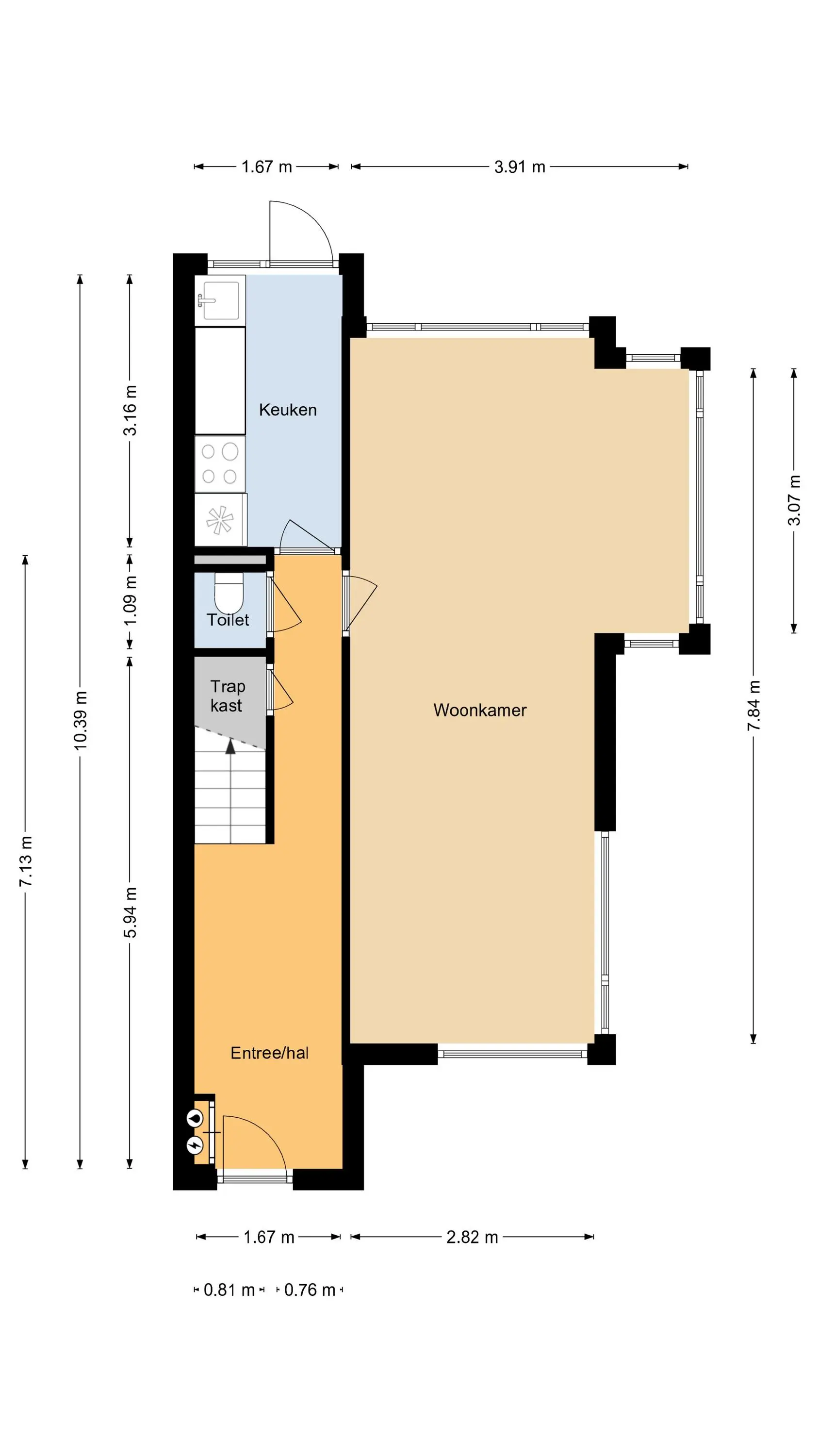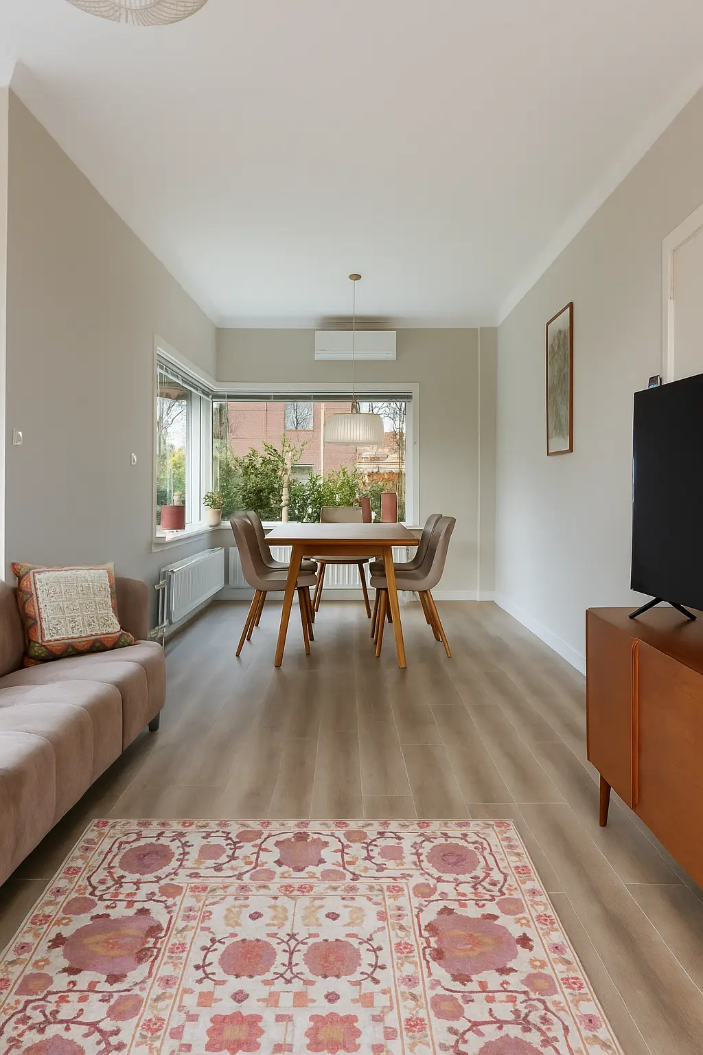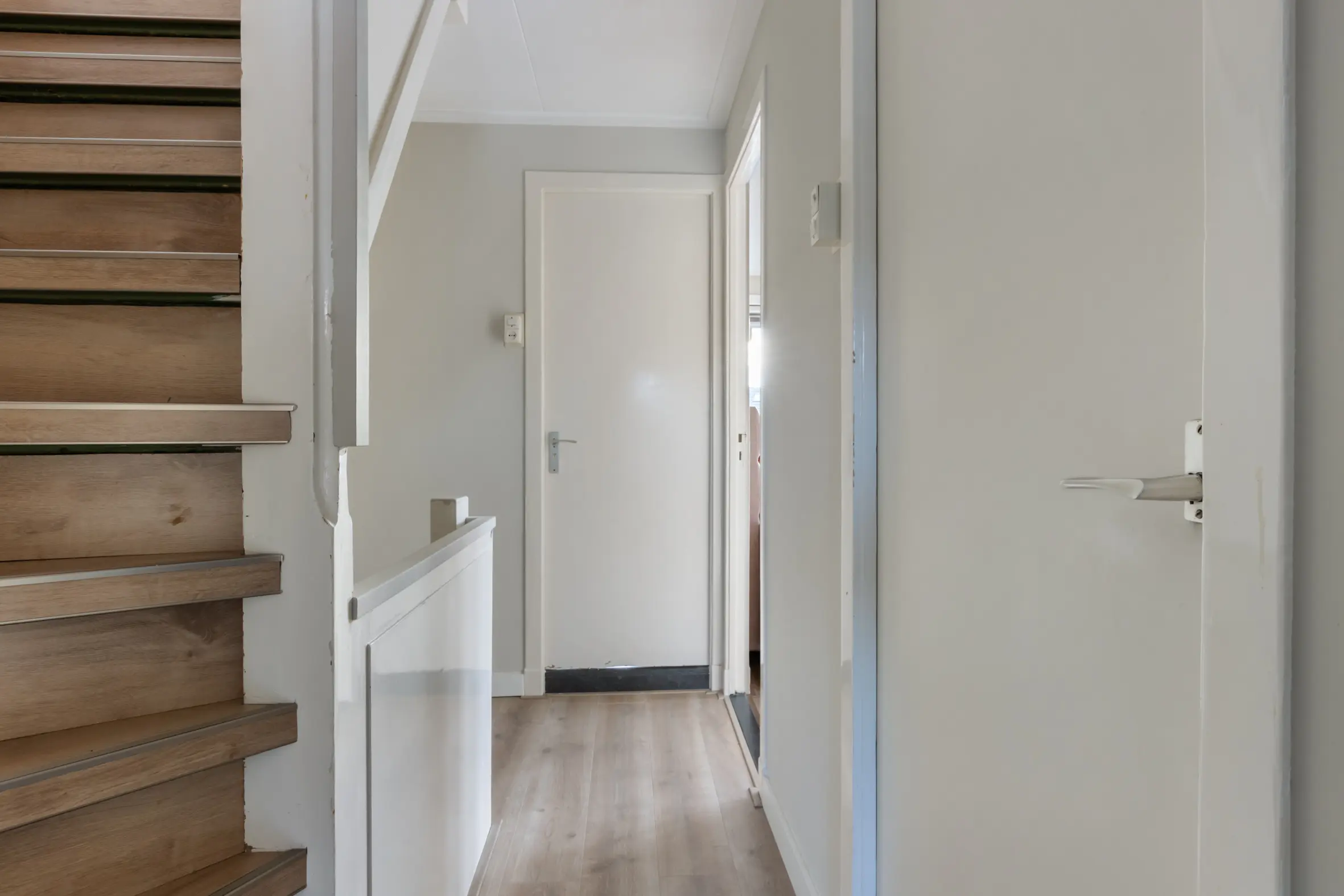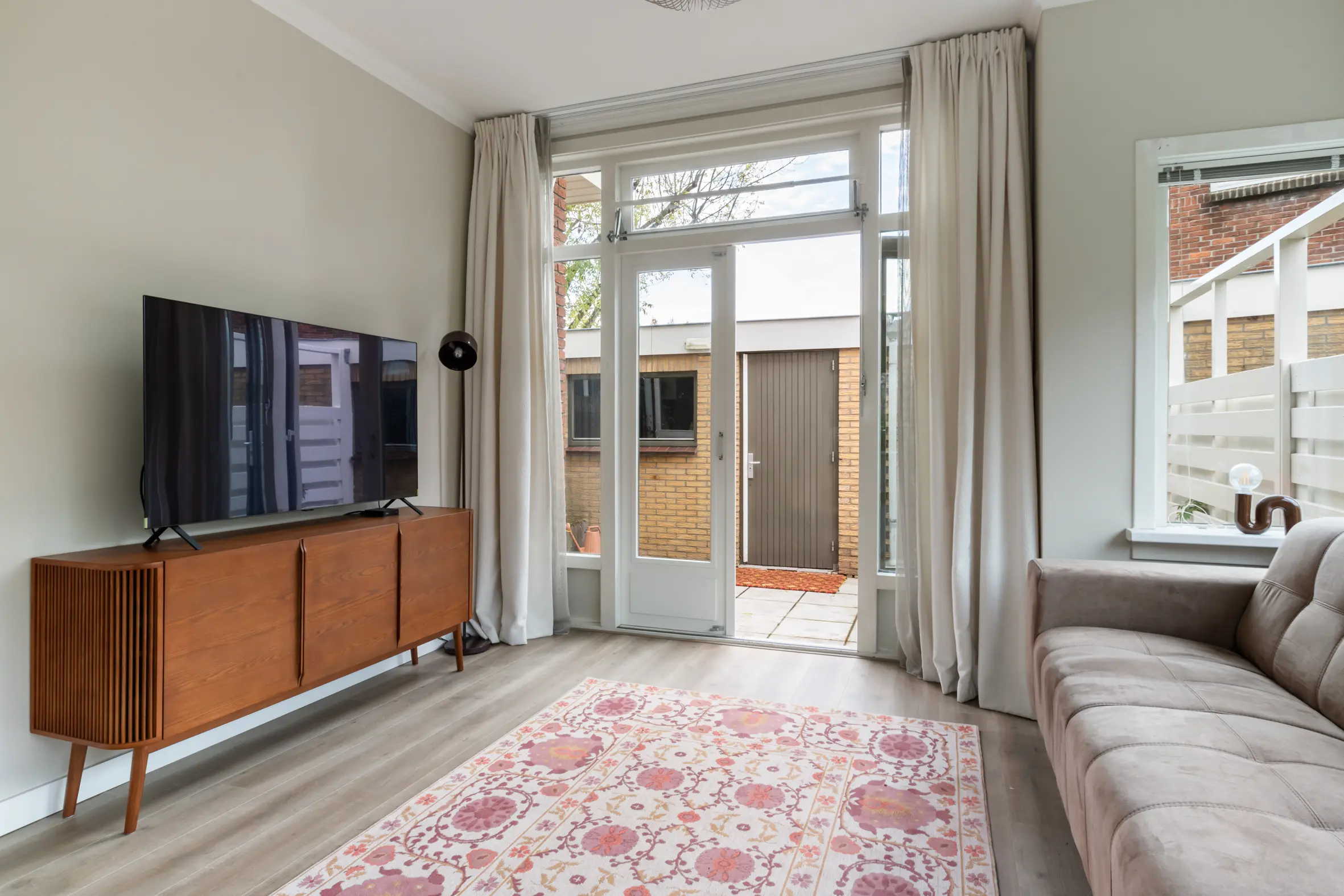 Binnenkomst in een ruime hal met vernieuwde meterkast, trapkast en toiletruimte. De lichte woonkamer heeft een erker aan de zijkant en openslaande deuren naar de achtertuin. Tevens is de woonkamer voorzien van een airco unit die zowel verkoeling als verwarming biedt.
