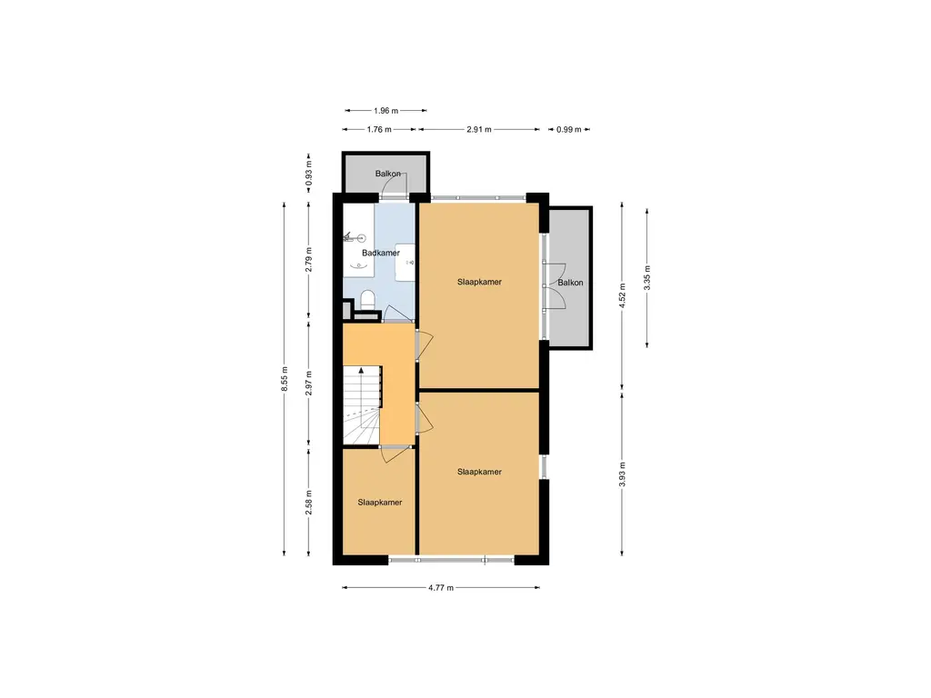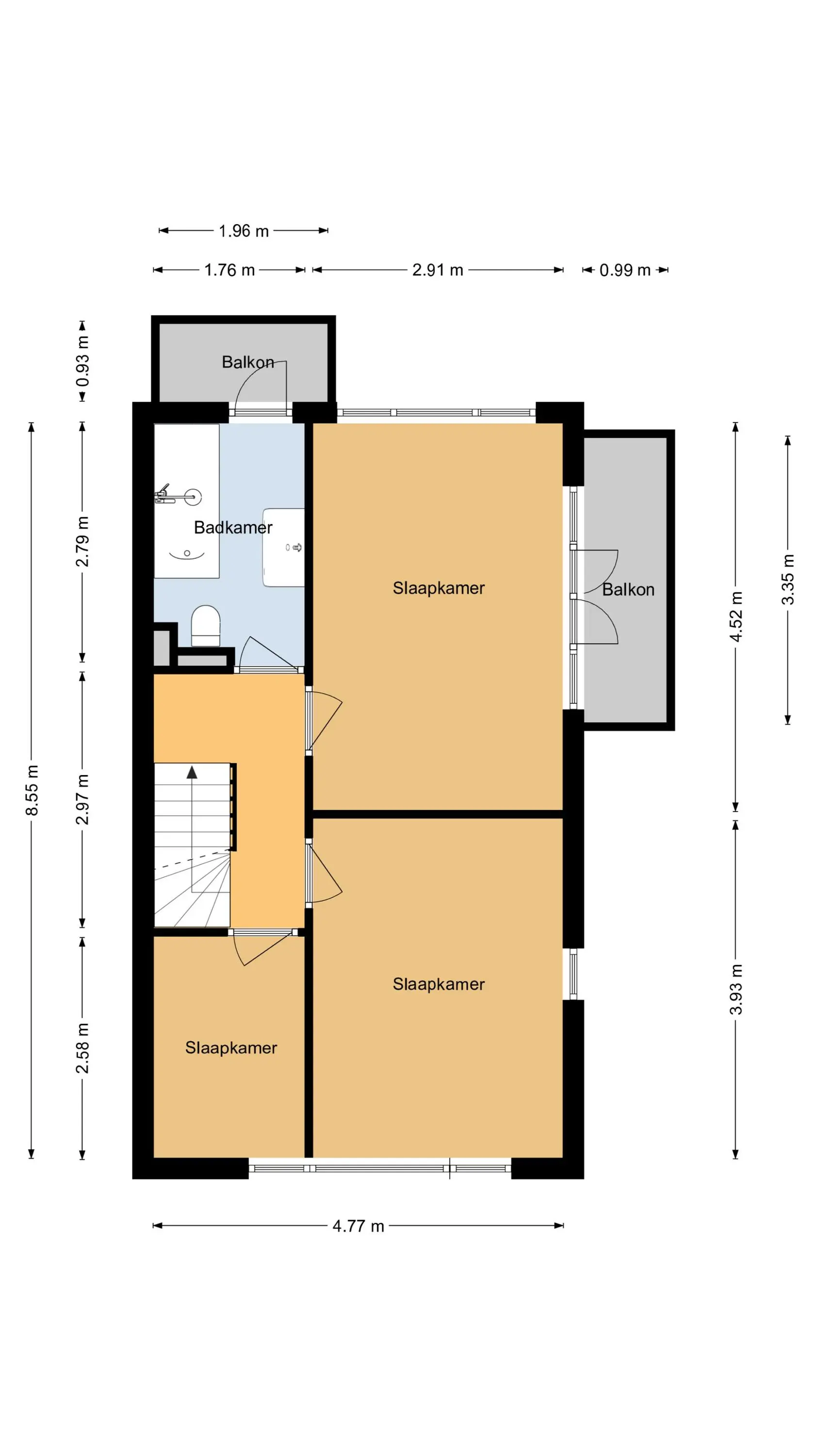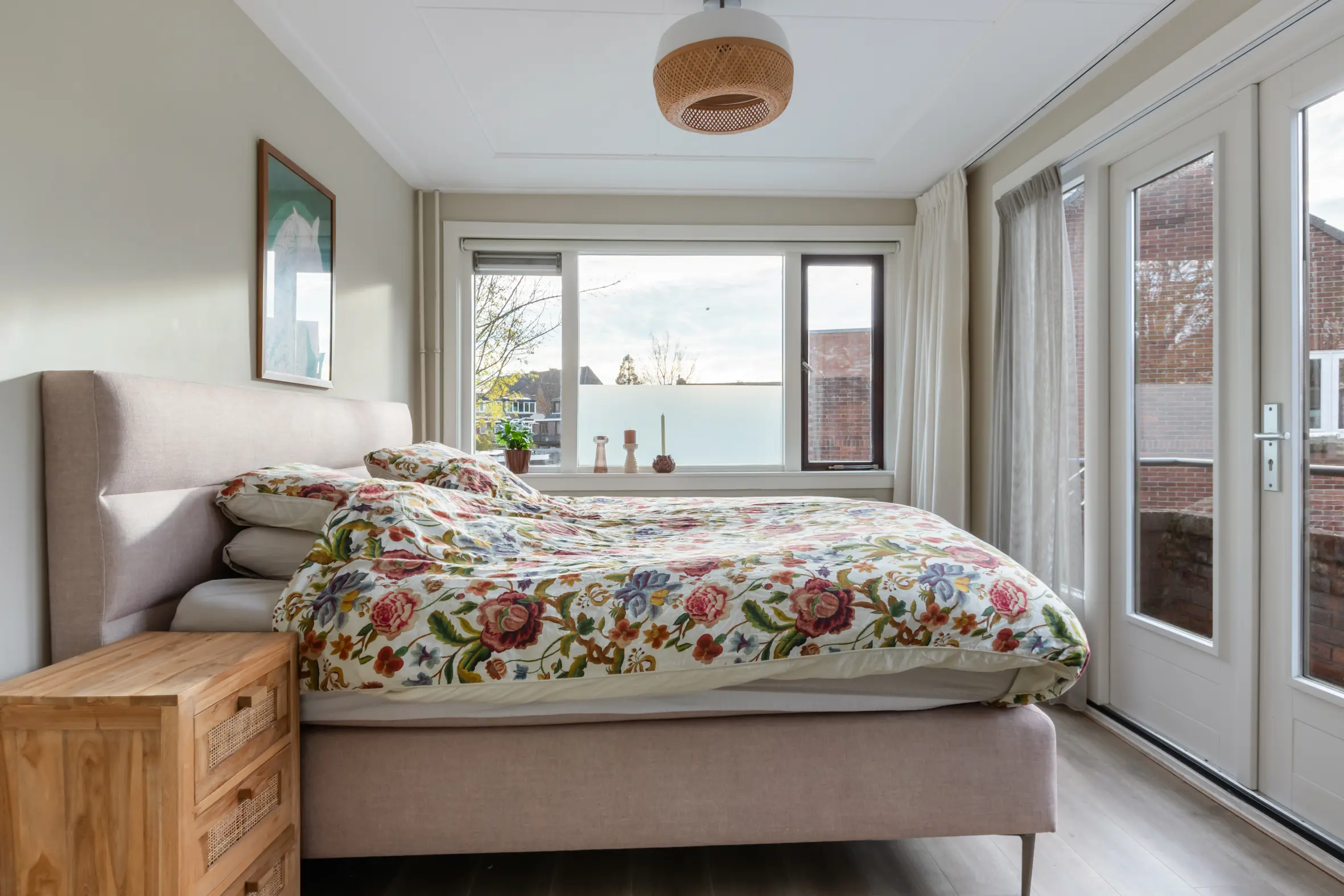 Op de 1e verdieping zijn drie slaapkamers te vinden, waarvan de grootste aan de achterzijde met toegang tot een balkon op het zonnige zuiden. De 2e ruime slaapkamer ligt aan de voorzijde. De 3e kleinere slaapkamer is goed te gebruiken als babykamer, werkplek of kastenkamer. Ook de badkamer bevindt zich op deze verdieping en is voorzien van: