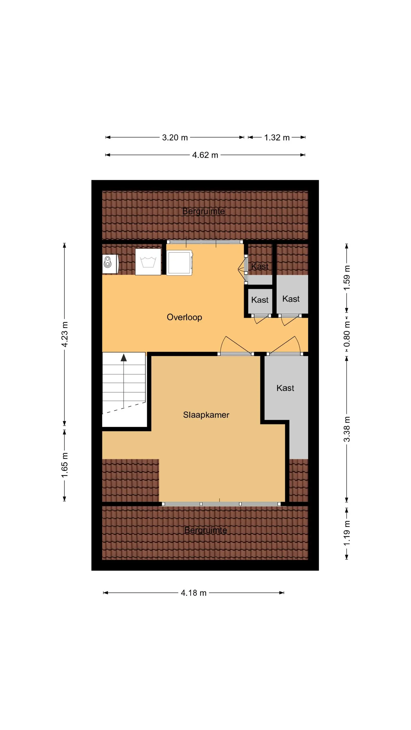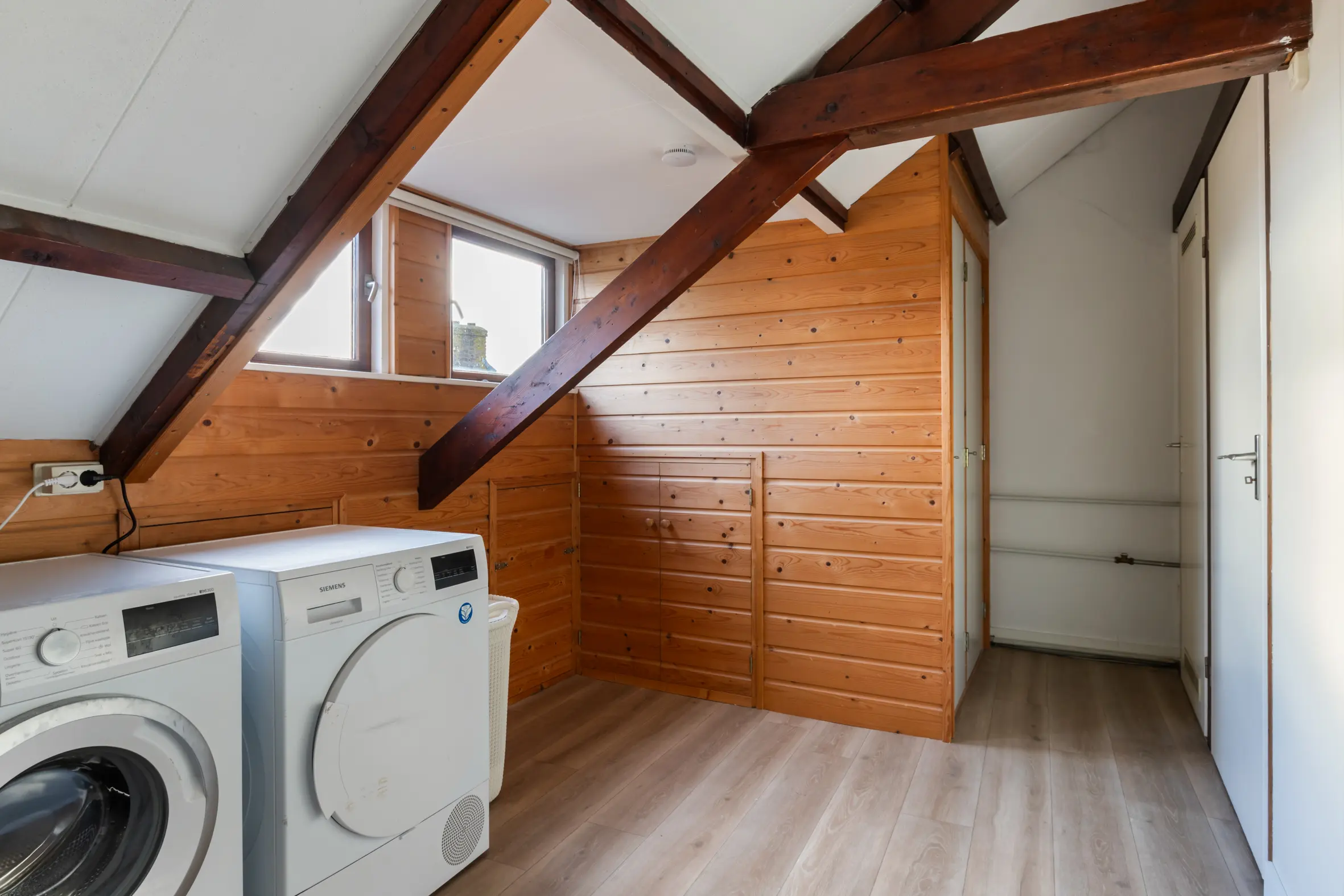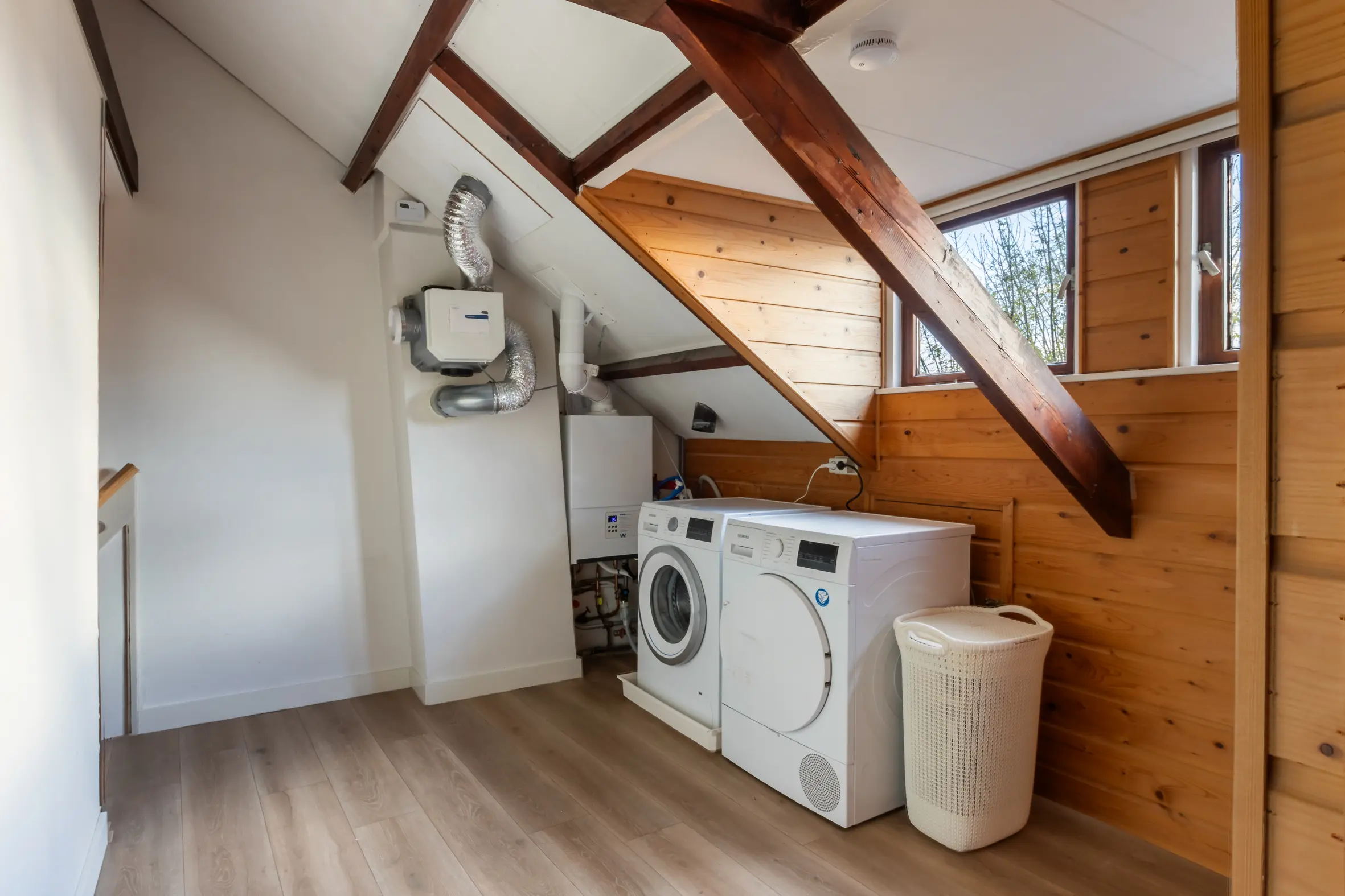 De zolder is uitgebreid met twee dakkapellen, wat zorgt voor veel extra ruimte en licht. Hier vind je een 4e slaapkamer, een overloop met opstelling voor wasmachine en droger en meerdere bergkasten. De ruimte is goed afgewerkt en multifunctioneel te gebruiken.
