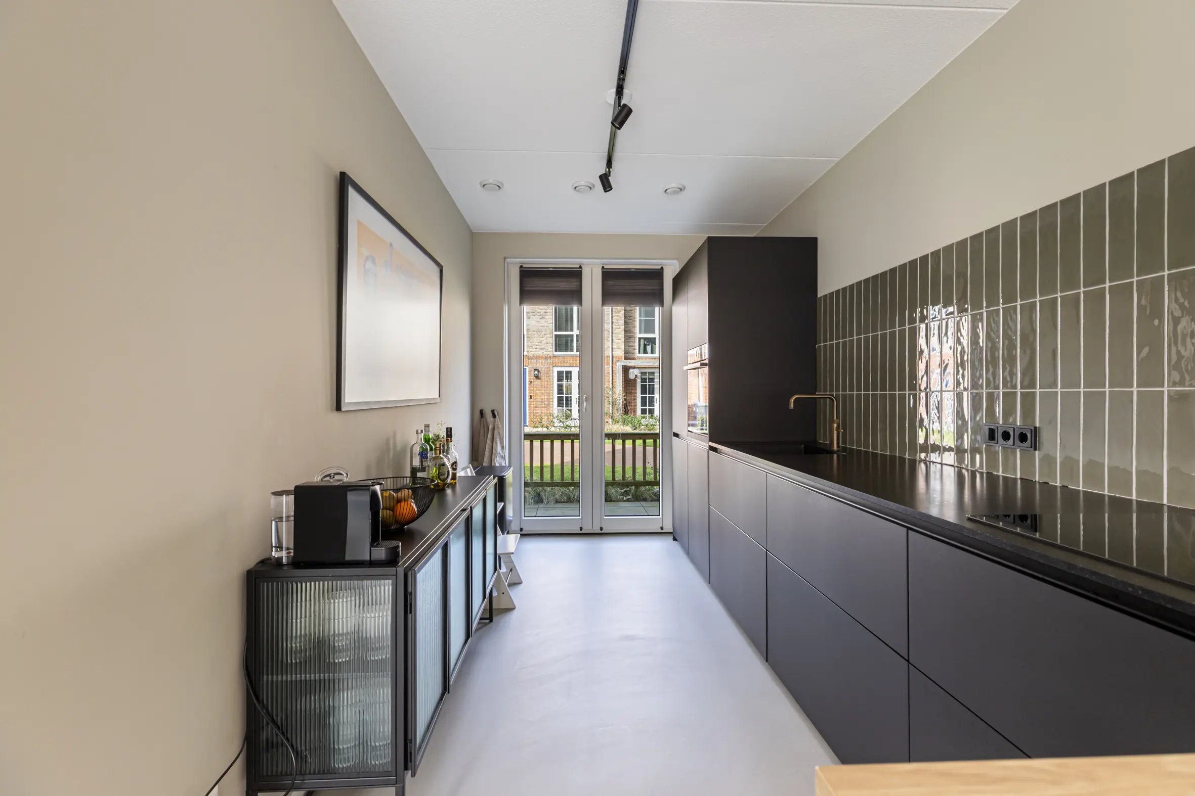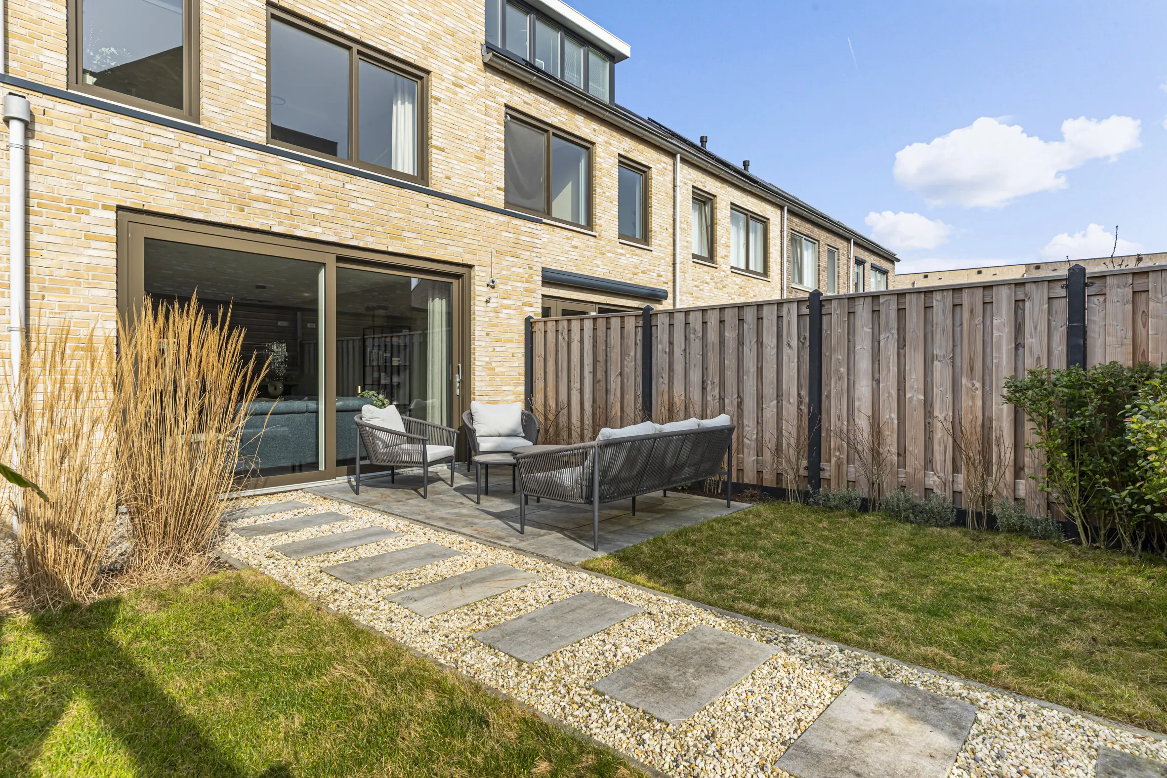 Vanuit de keuken kijk je uit over het gezellige hofje aan de voorzijde. Er zijn openslaande deuren vanuit de keuken naar het terras voor het huis. Op het terras kun je met mooi weer heerlijk genieten van de avondzon.