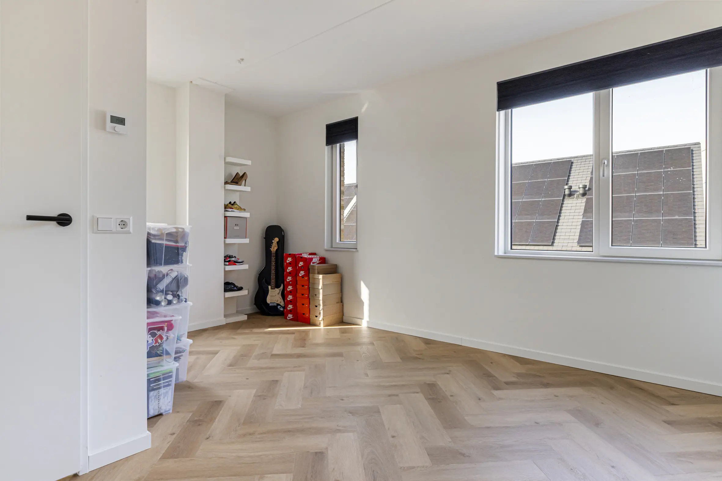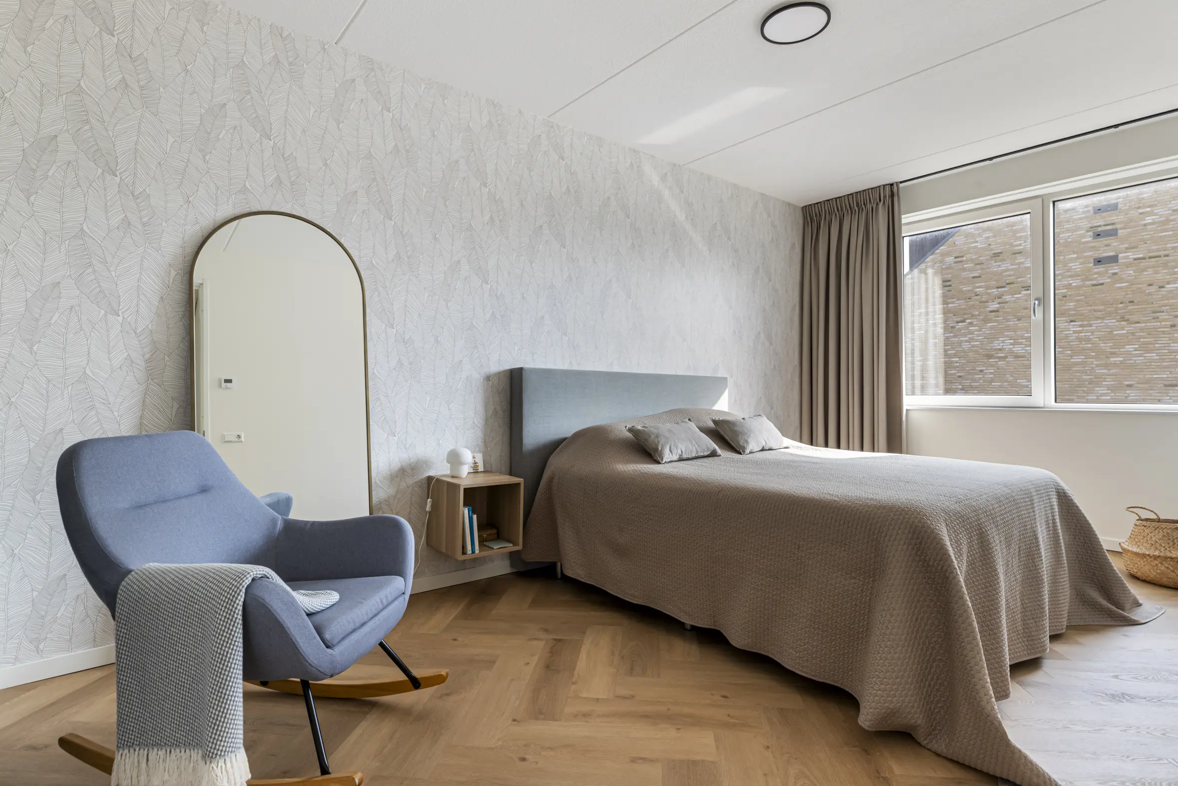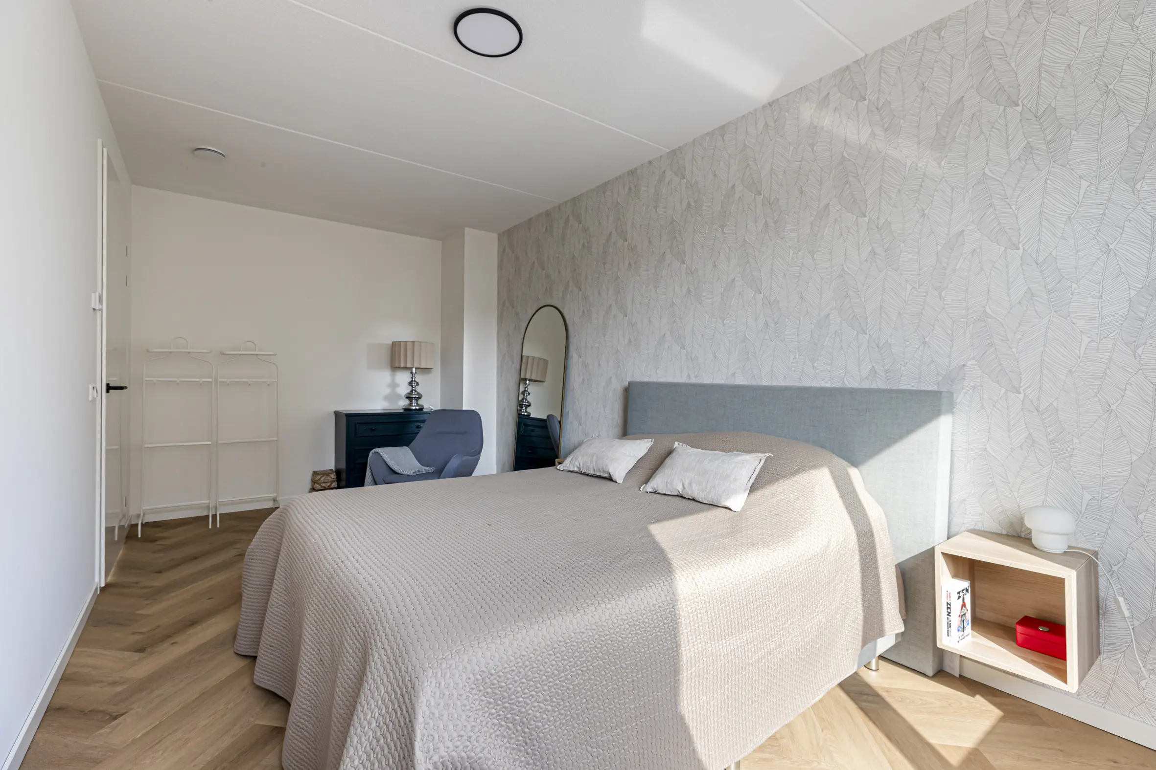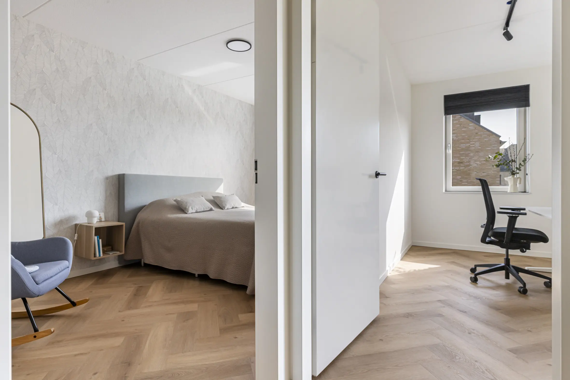 Ook deze verdieping biedt verrassend veel ruimte, ook deze is voorzien van een visgraat PVC-vloer. Hier bevinden zich nog twee grote slaapkamers, waarvan de kamer aan de achterzijde een Frans balkon heeft. Daarnaast is er een aparte wasruimte met onder andere de mechanische ventilatie box en extra bergruimte.