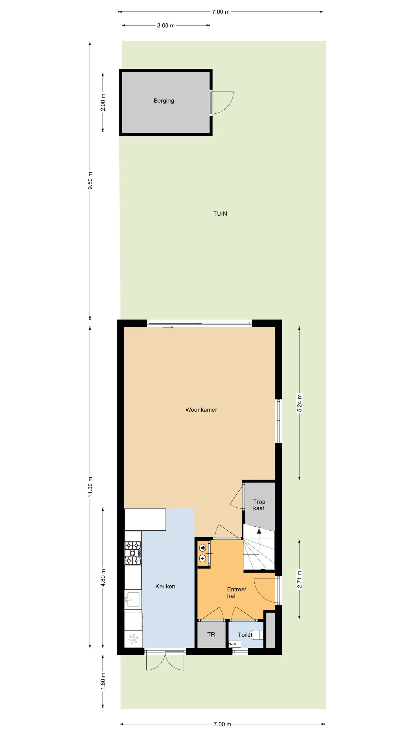 De woonkamer ligt aan de achterzijde en voelt licht en ruim dankzij het zijraam en de grote schuifpui naar de tuin. Er is voldoende plek voor een ruime zithoek en een grote eettafel. Onder de trap bevindt zich een praktische trapkast voor extra bergruimte.