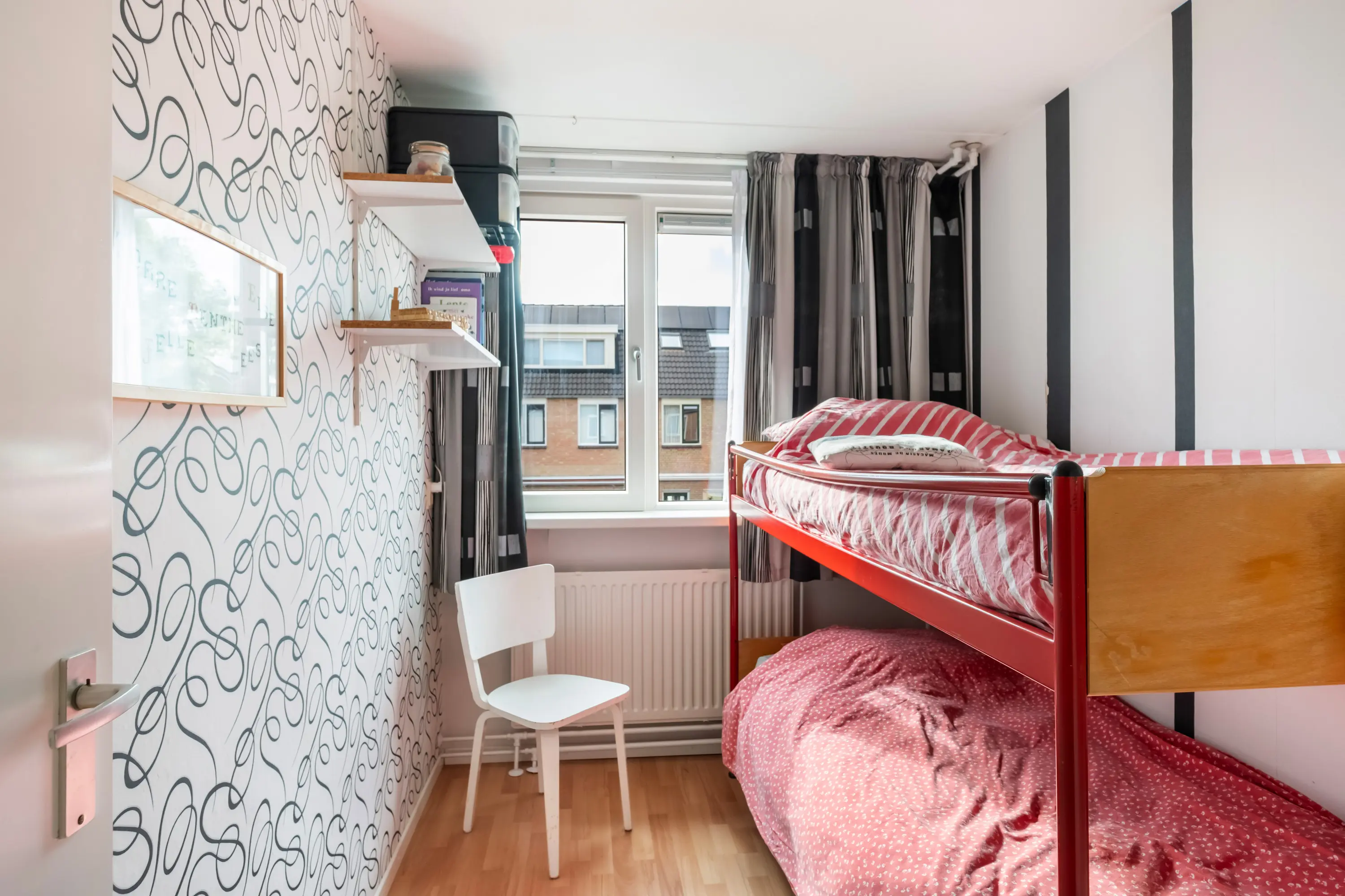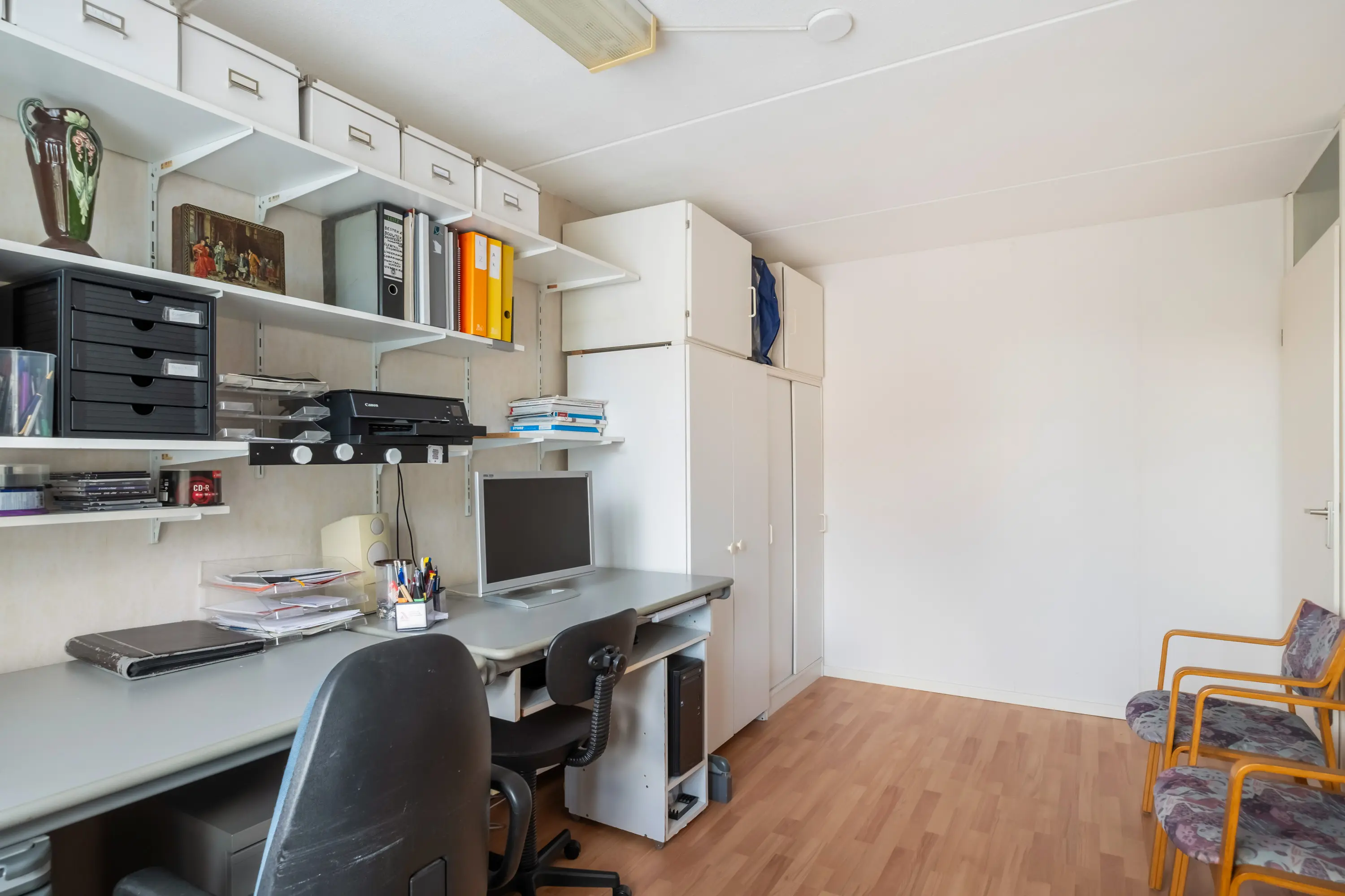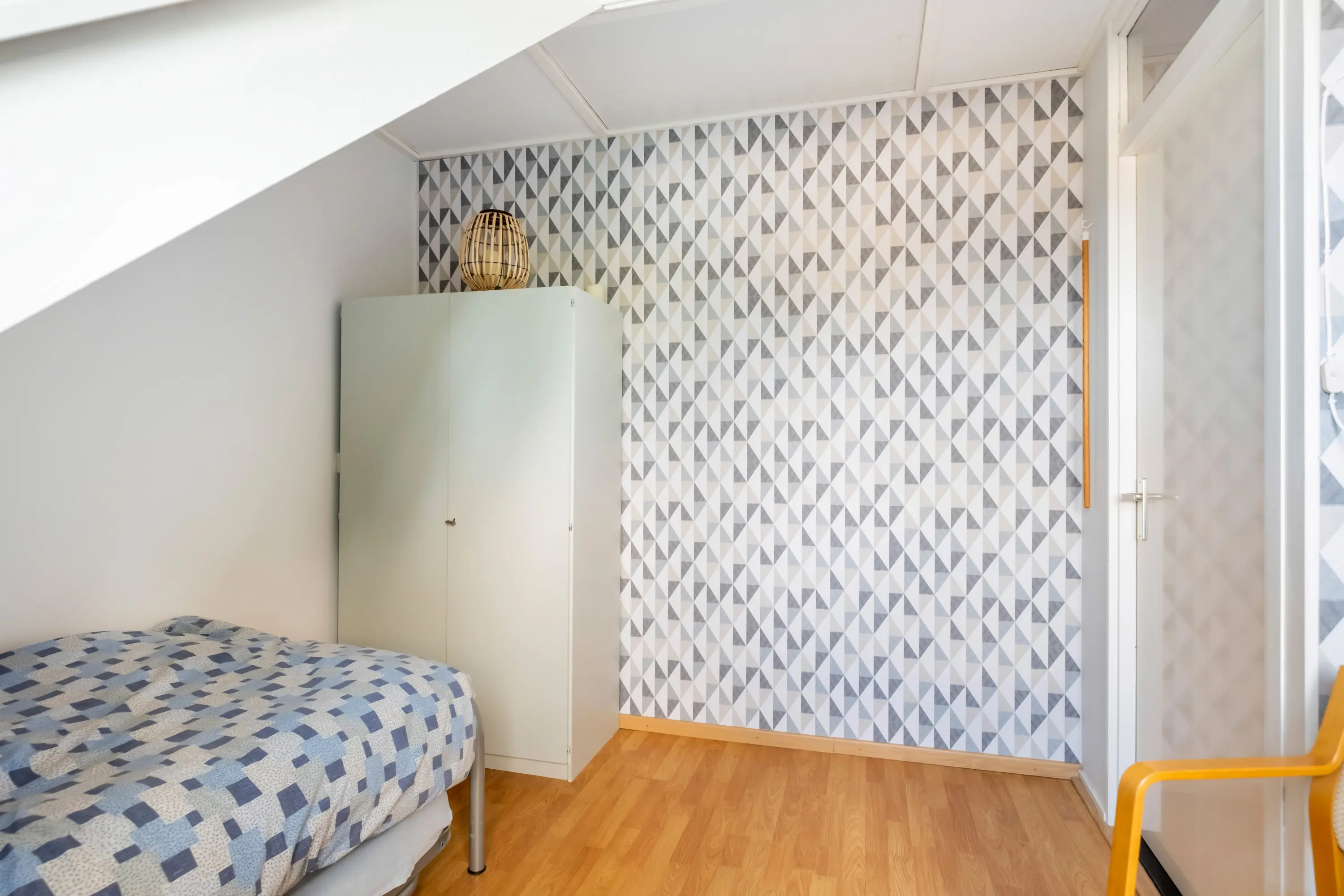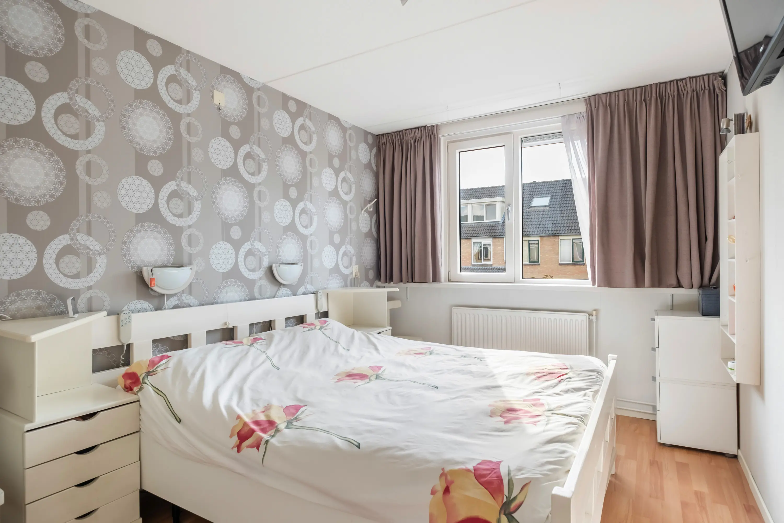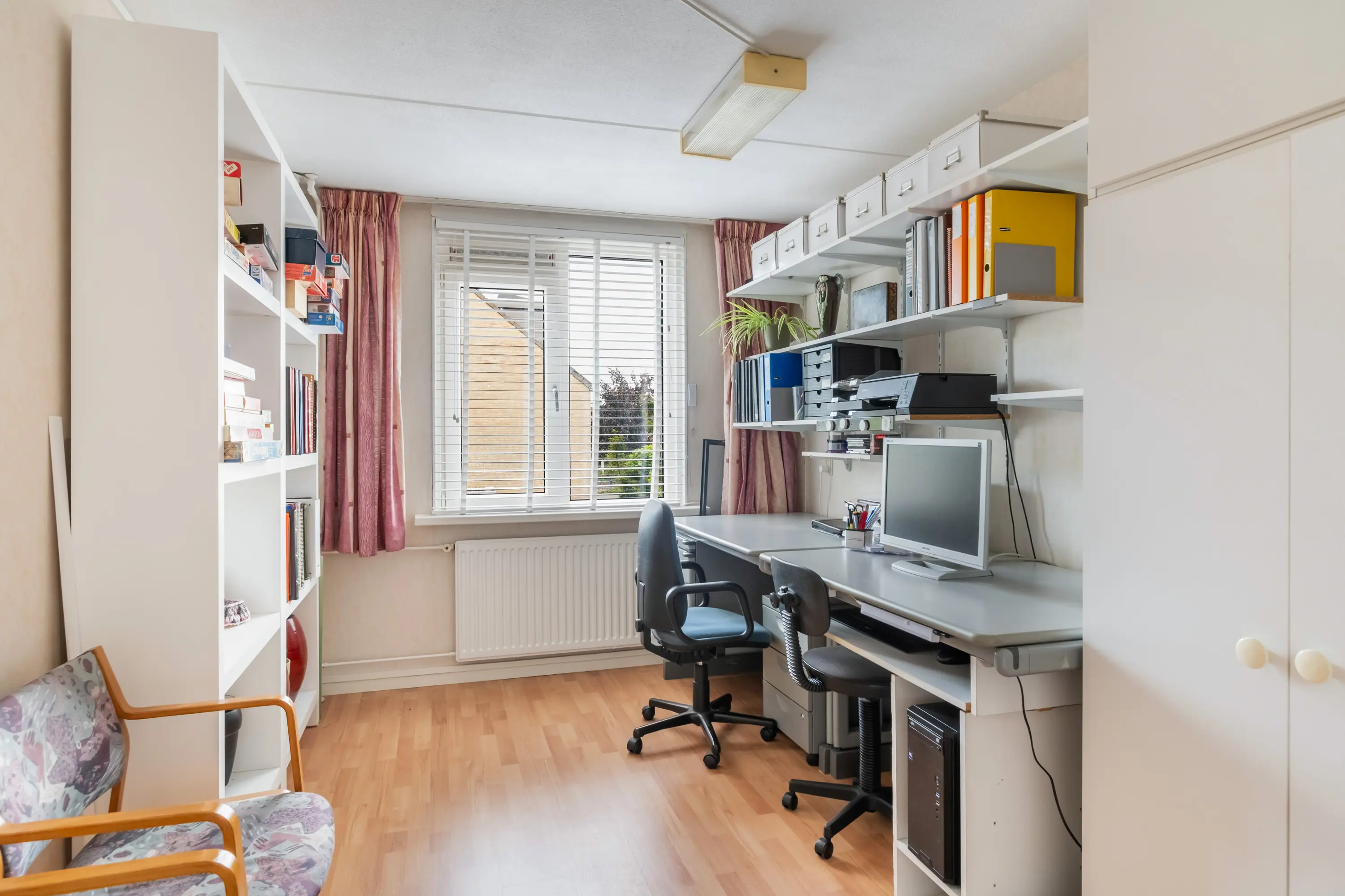 Aan de achterzijde van de woning vind je nog eens twee slaapkamers: de master bedroom met praktische kastenwand en een kleinere slaapkamer, die goed te gebruiken is als werk- of kinderkamer. Verder zijn alle slaapkamers voorzien van een laminaatvloer, de muren zijn afgewerkt met behang en ze beschikken over elektrische rolluiken.