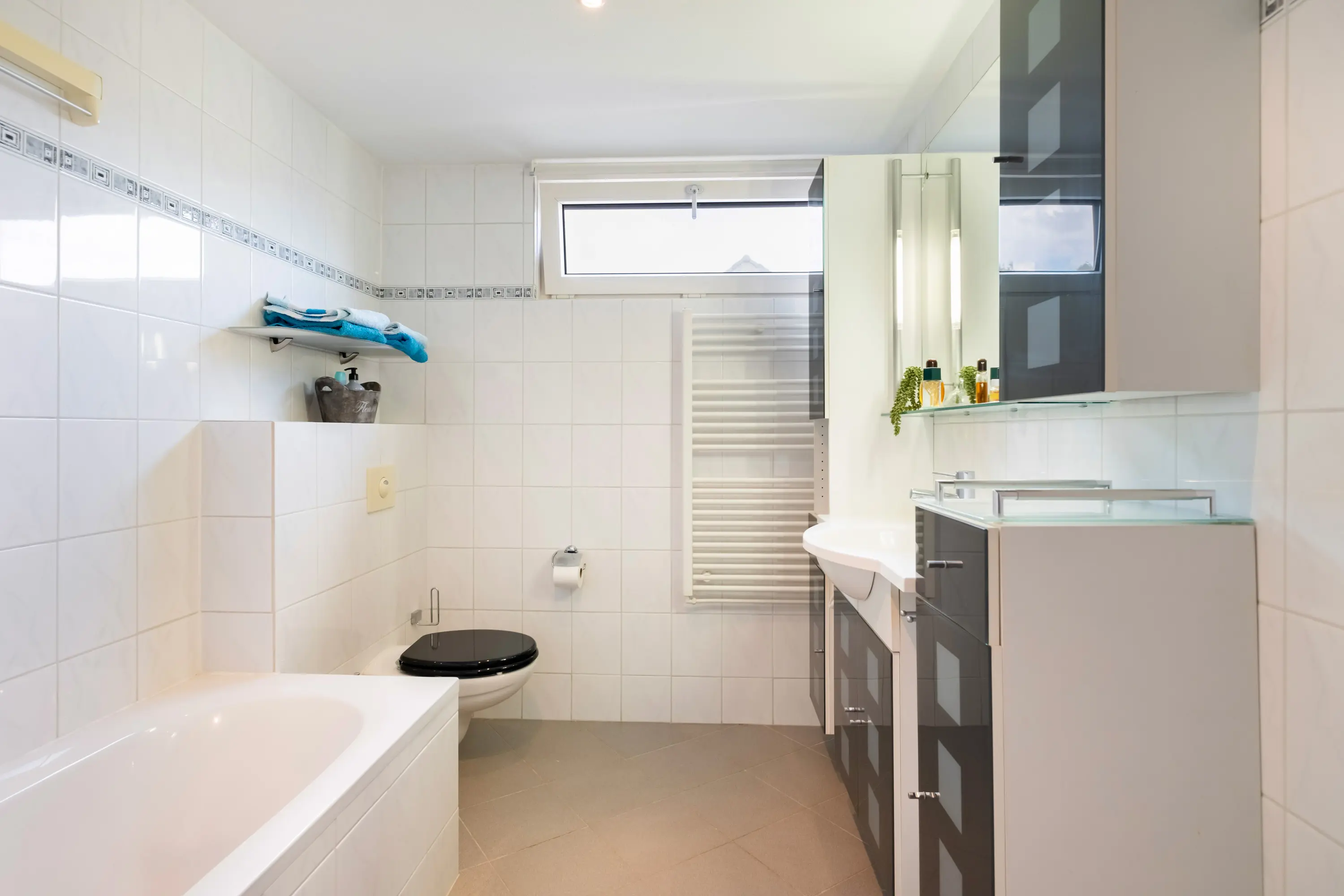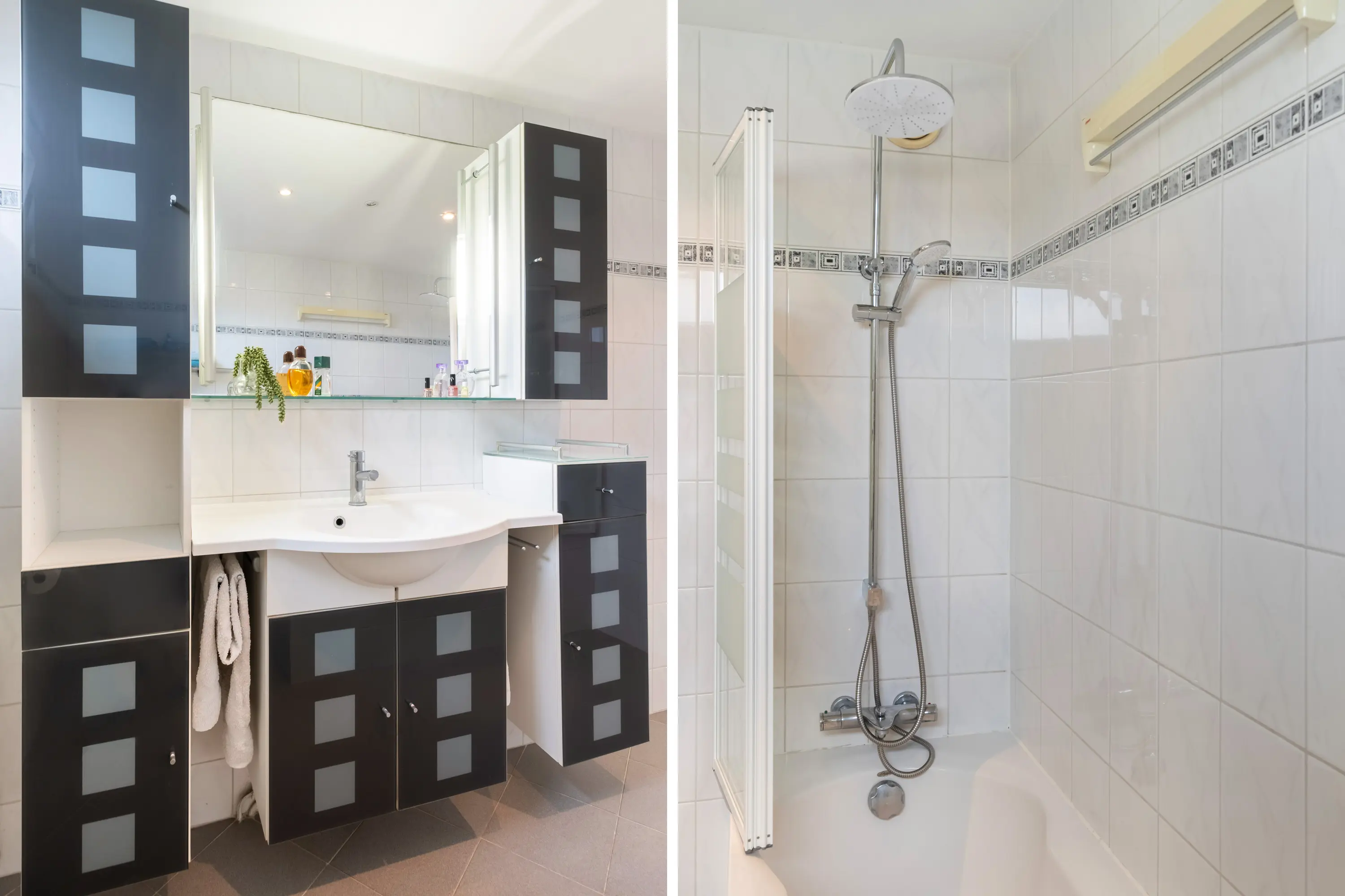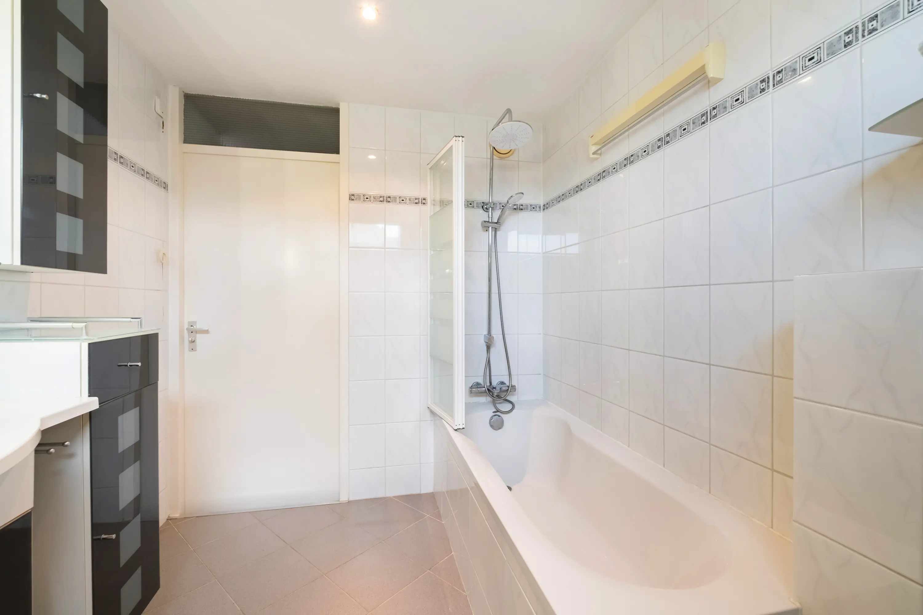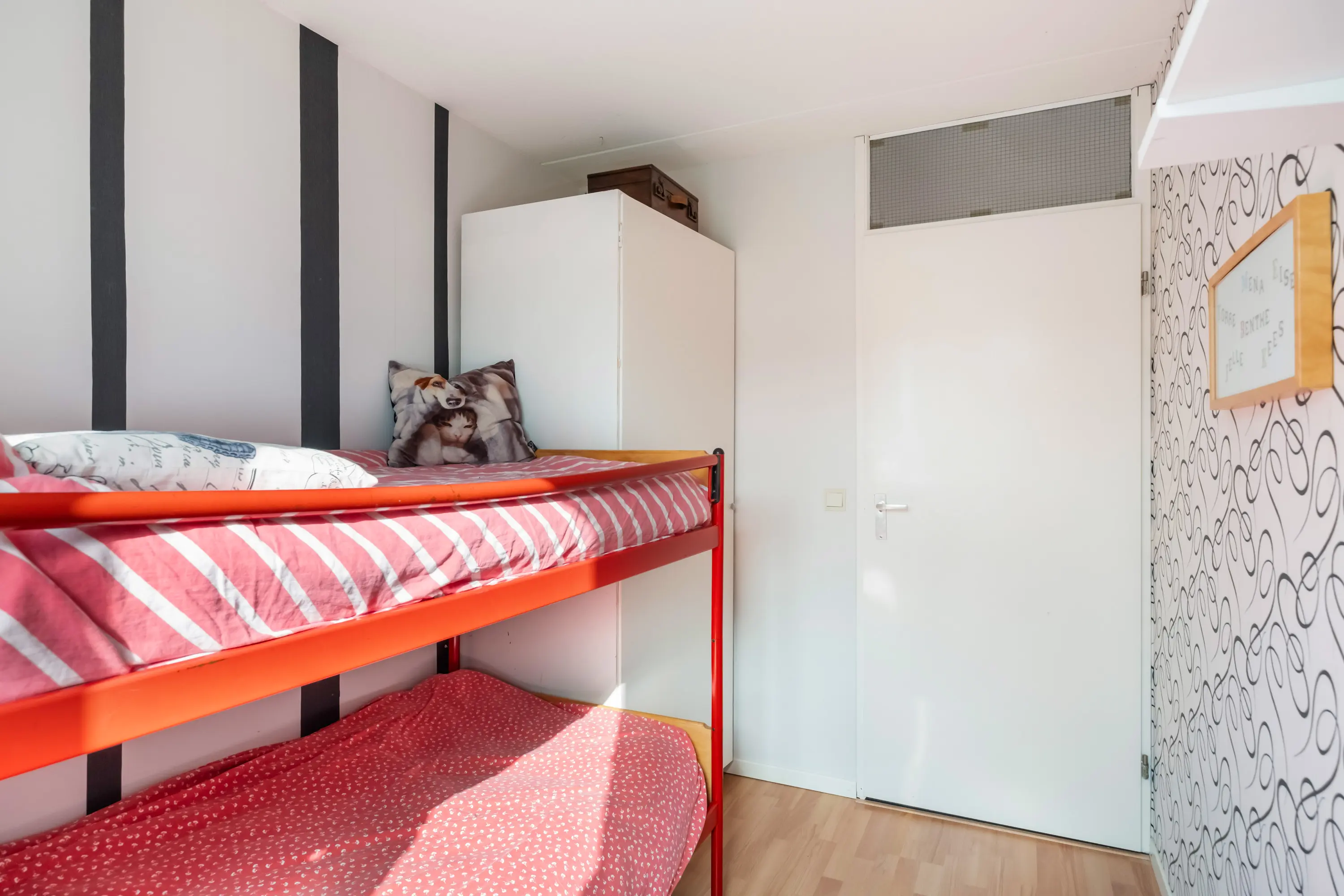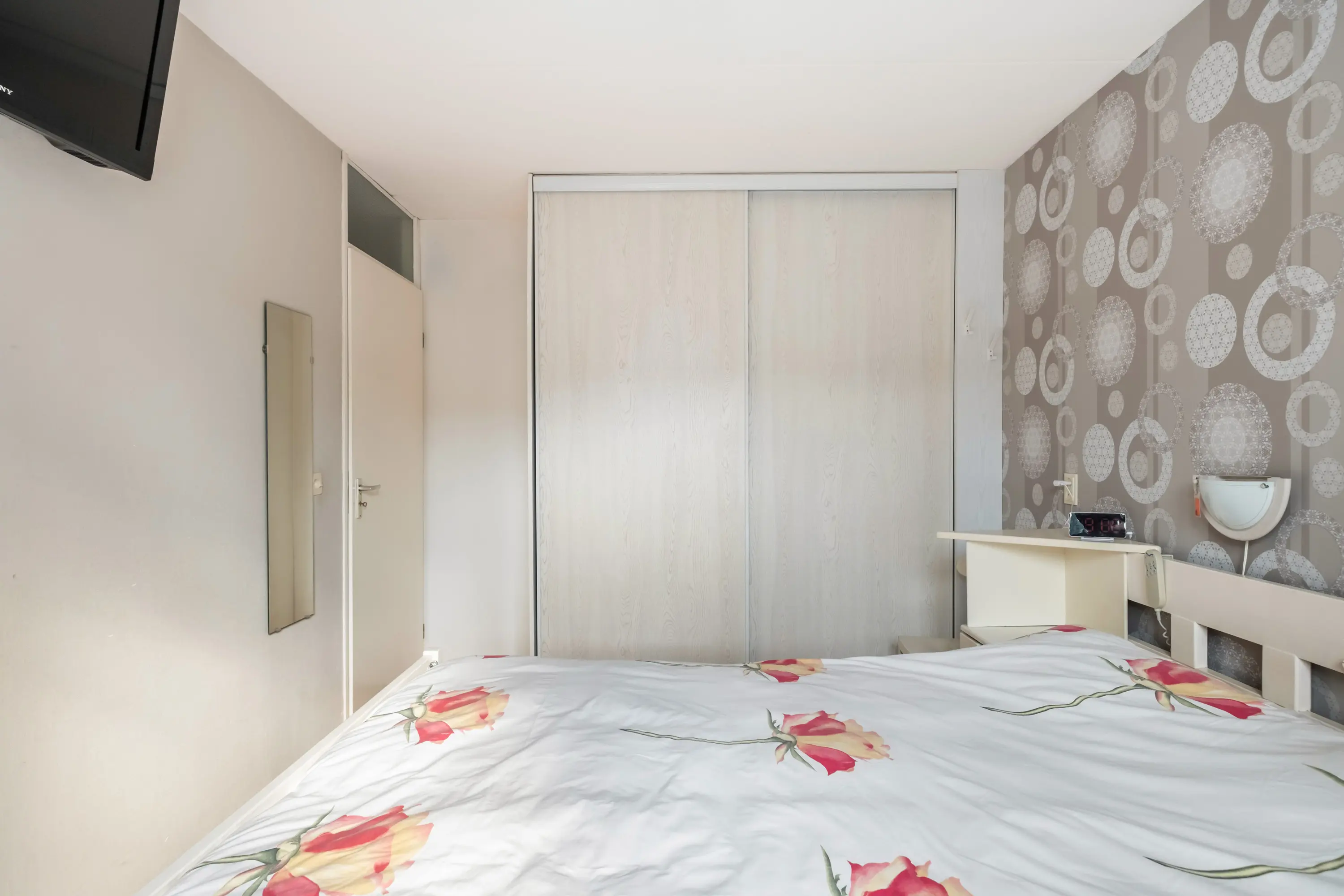 Aan de achterzijde van de woning vind je nog eens twee slaapkamers: de master bedroom met praktische kastenwand en een kleinere slaapkamer, die goed te gebruiken is als werk- of kinderkamer. Verder zijn alle slaapkamers voorzien van een laminaatvloer, de muren zijn afgewerkt met behang en ze beschikken over elektrische rolluiken.