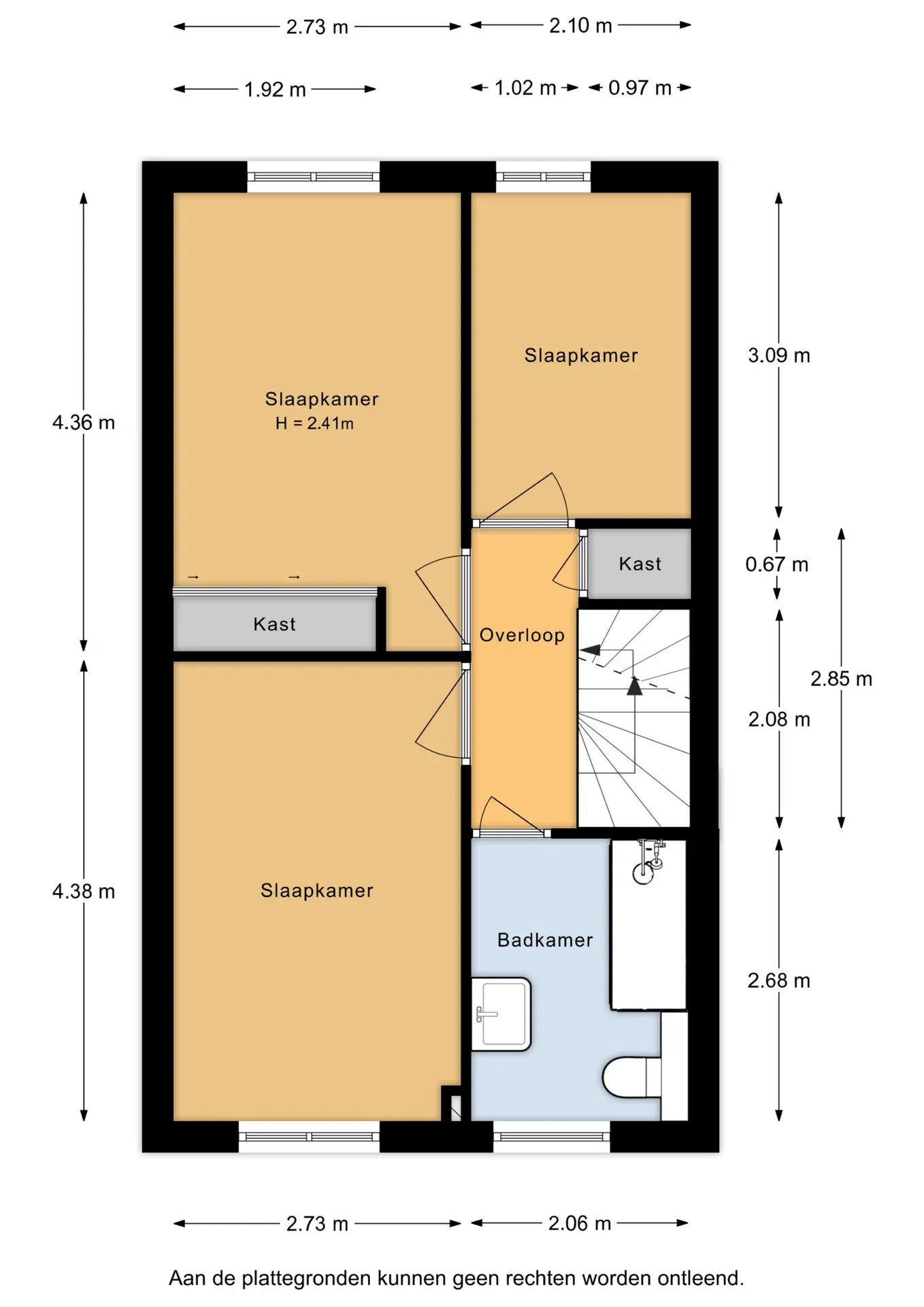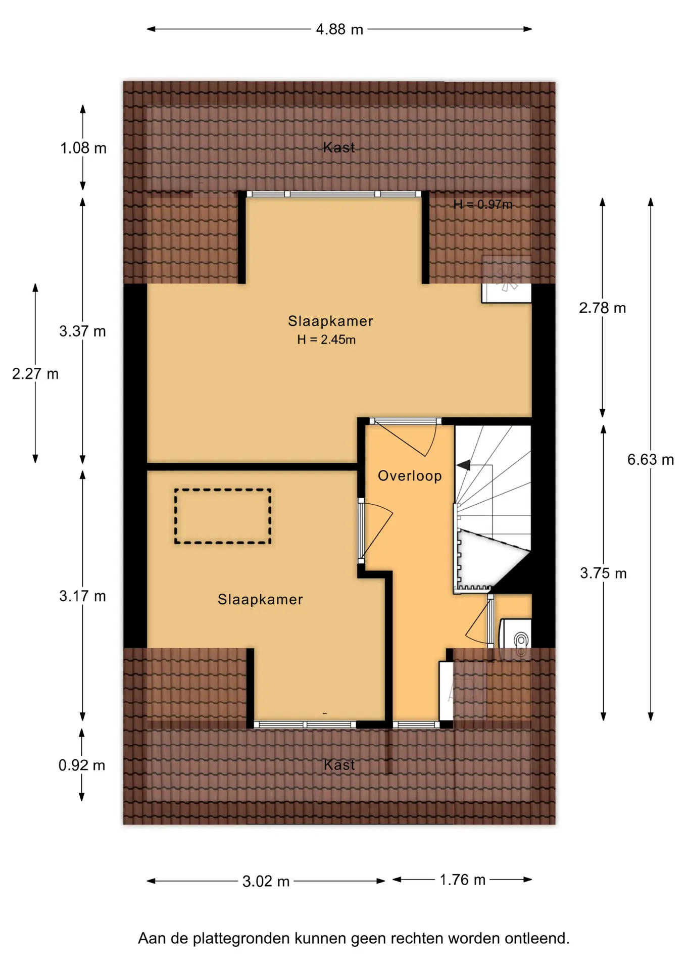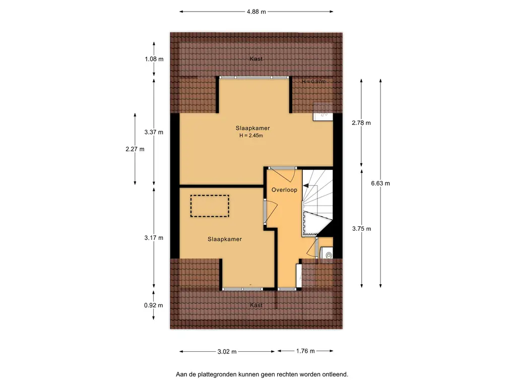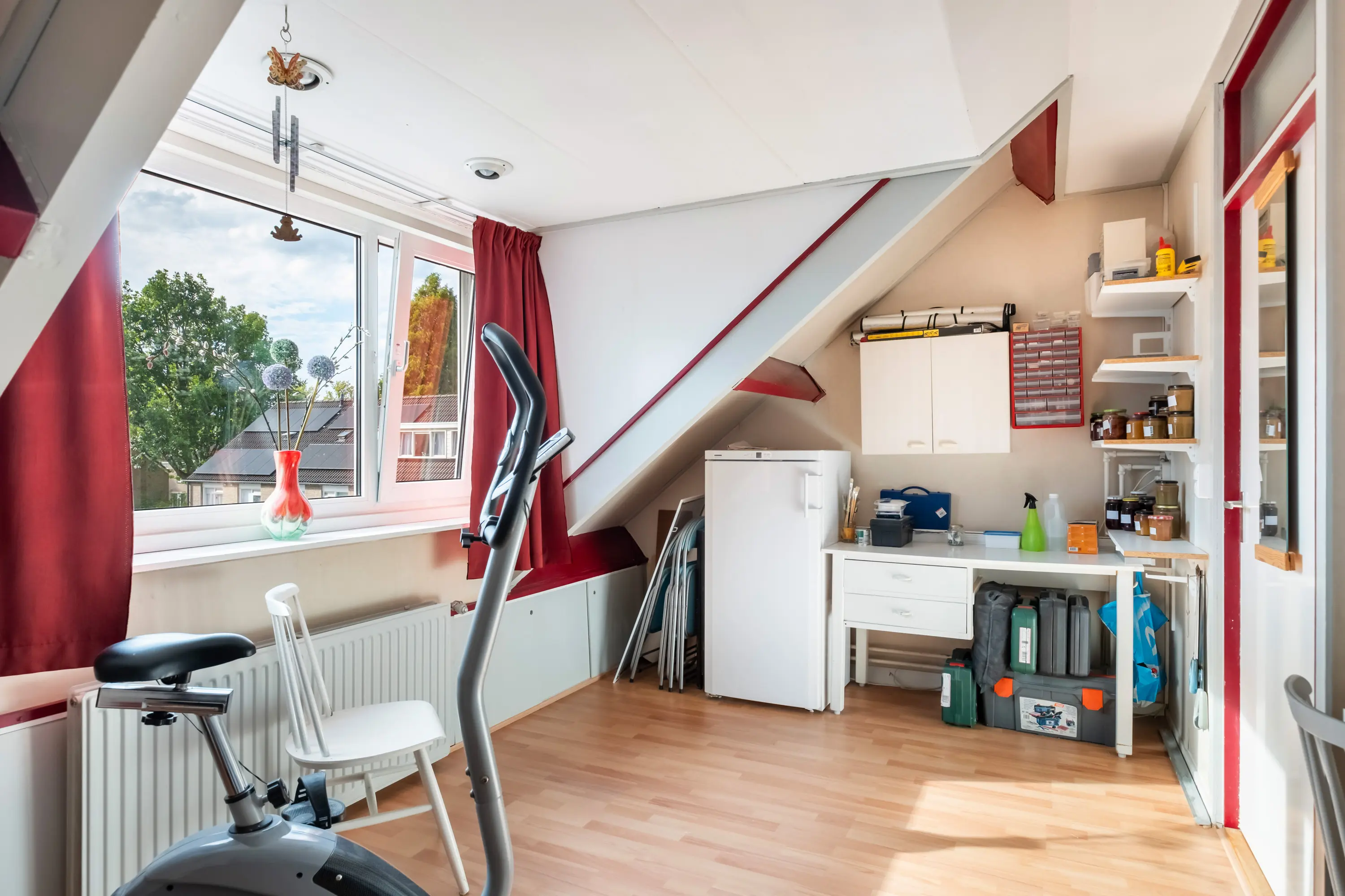 Deze verdieping telt nog eens twee ruime slaapkamers, beide voorzien van een dakkapel en bergruimte achter de knieschotten. De slaapkamer aan de voorzijde biedt toegang tot een handige bergvliering. Aan de achterzijde vind je een royale slaapkamer. Beide kamers zijn goed van formaat en kunnen gebruikt worden als bijvoorbeeld slaapkamer, logeerkamer, werk- of hobbyruimte.