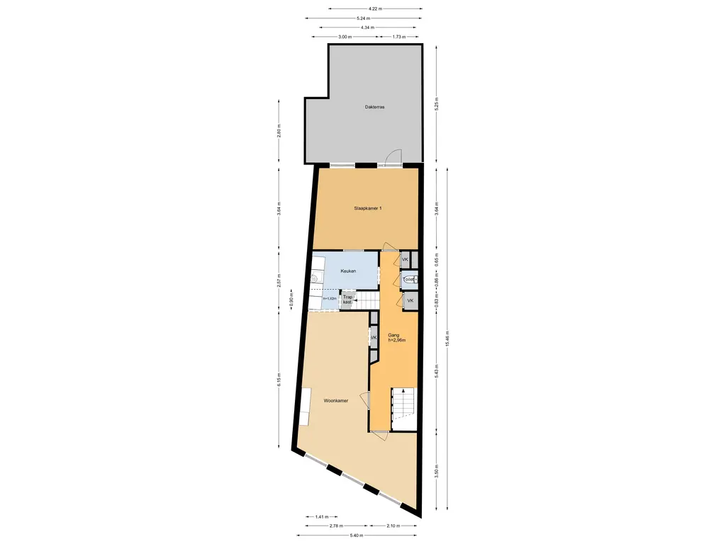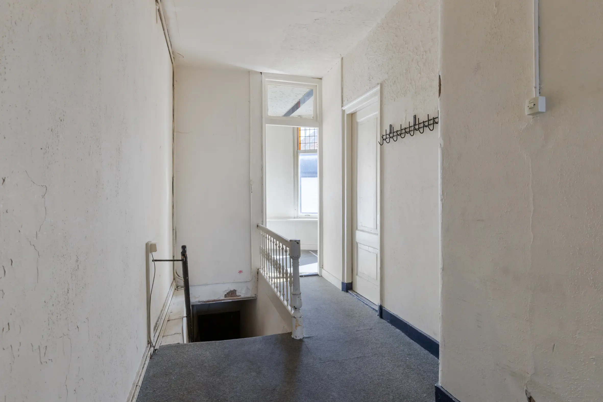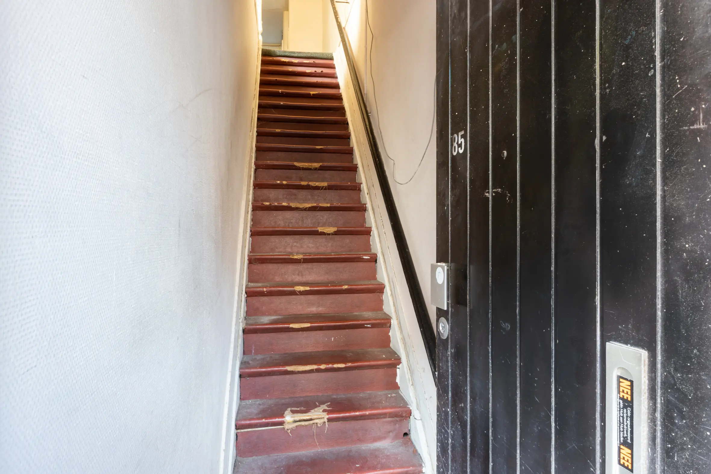 De woning is bereikbaar via een eigen entree, waarna een trap naar de bovenverdiepingen leidt.