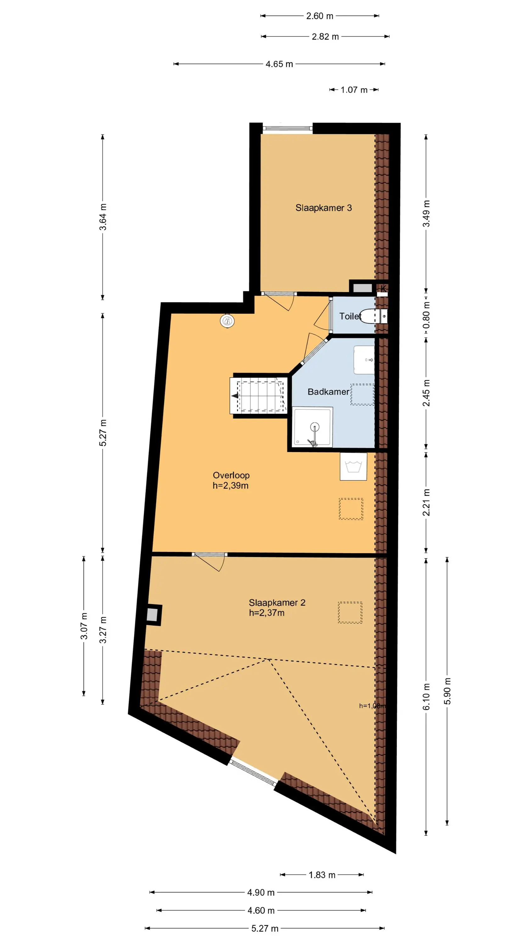 Deze verdieping biedt extra (slaap)kamers en bergruimte. Dankzij de dakkapel en de mogelijkheden om hier naar eigen smaak indelingen te maken, kan deze verdieping worden ingericht als royale master bedroom of juist meerdere kleinere kamers.