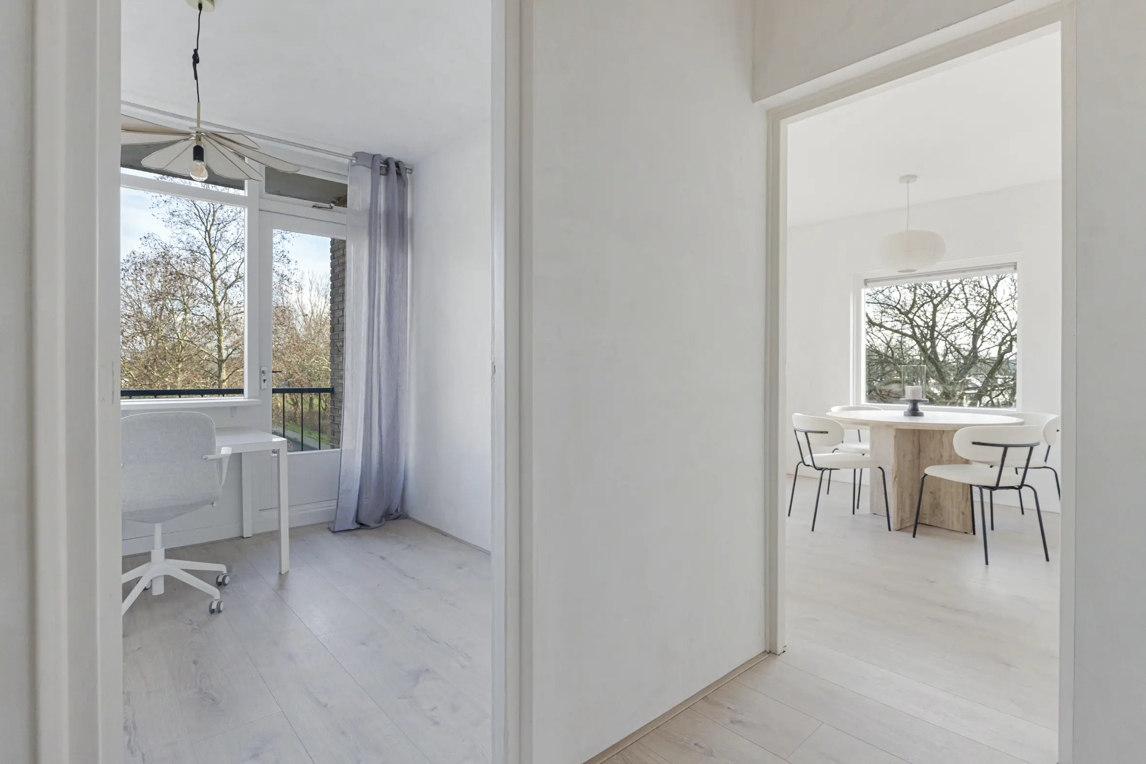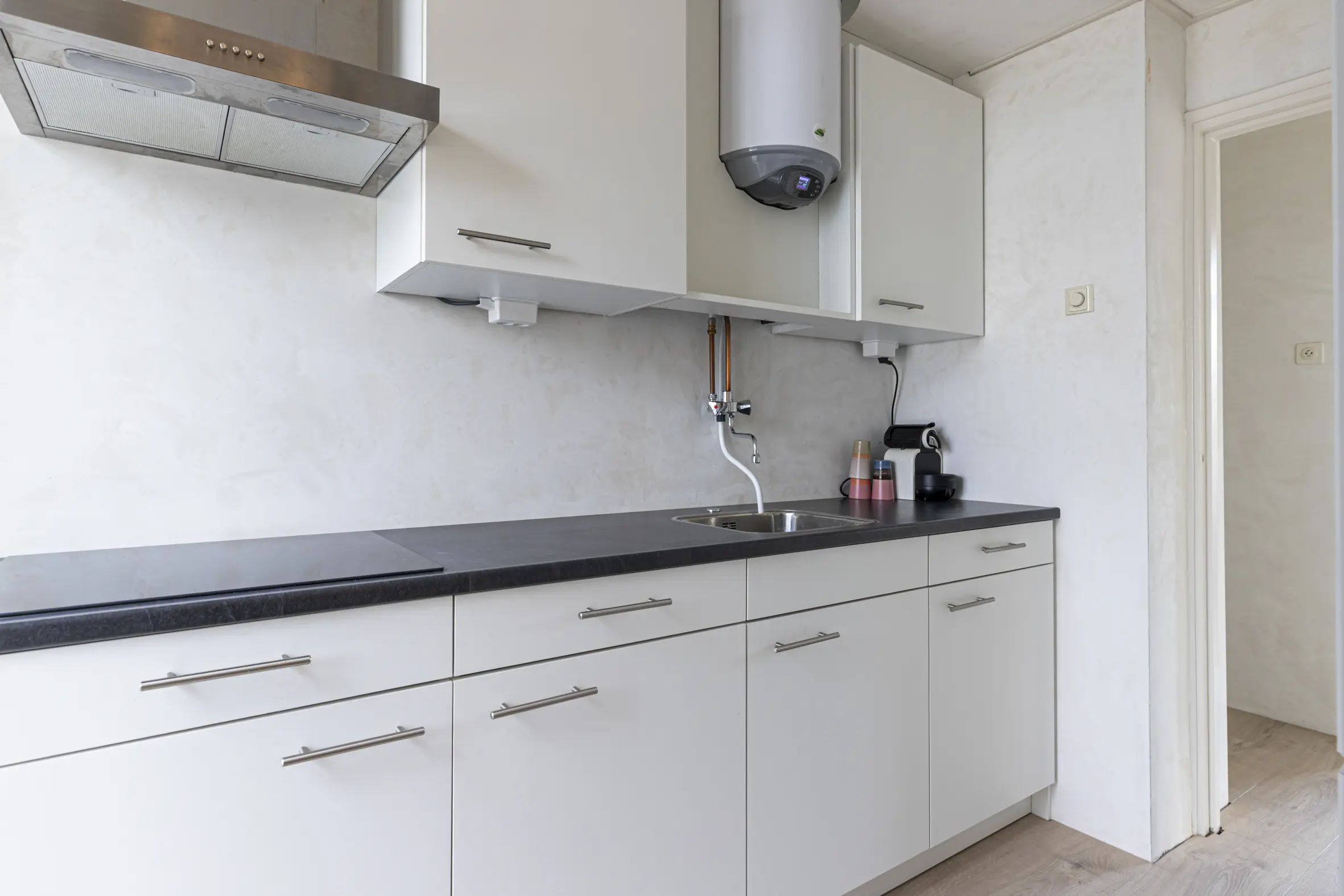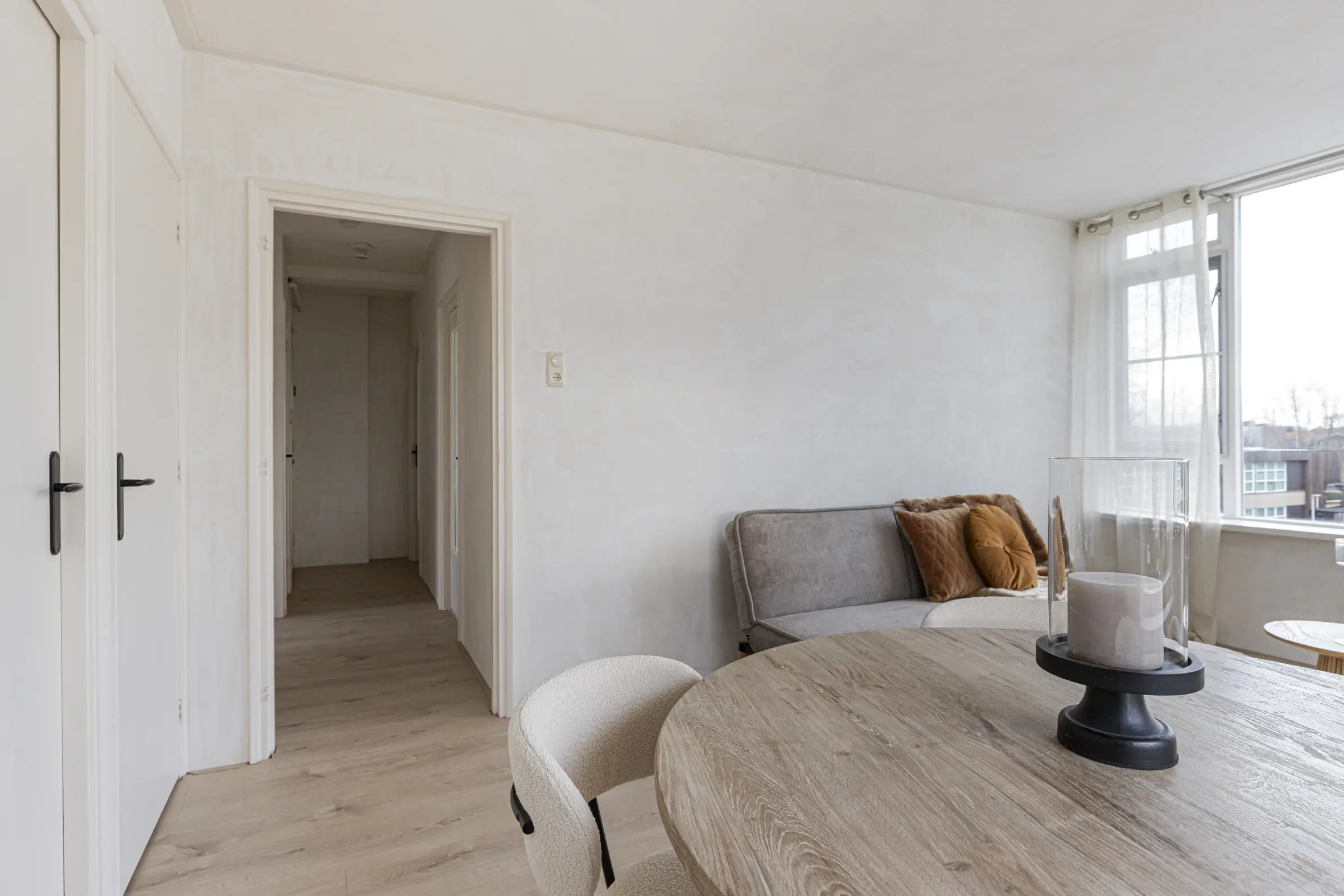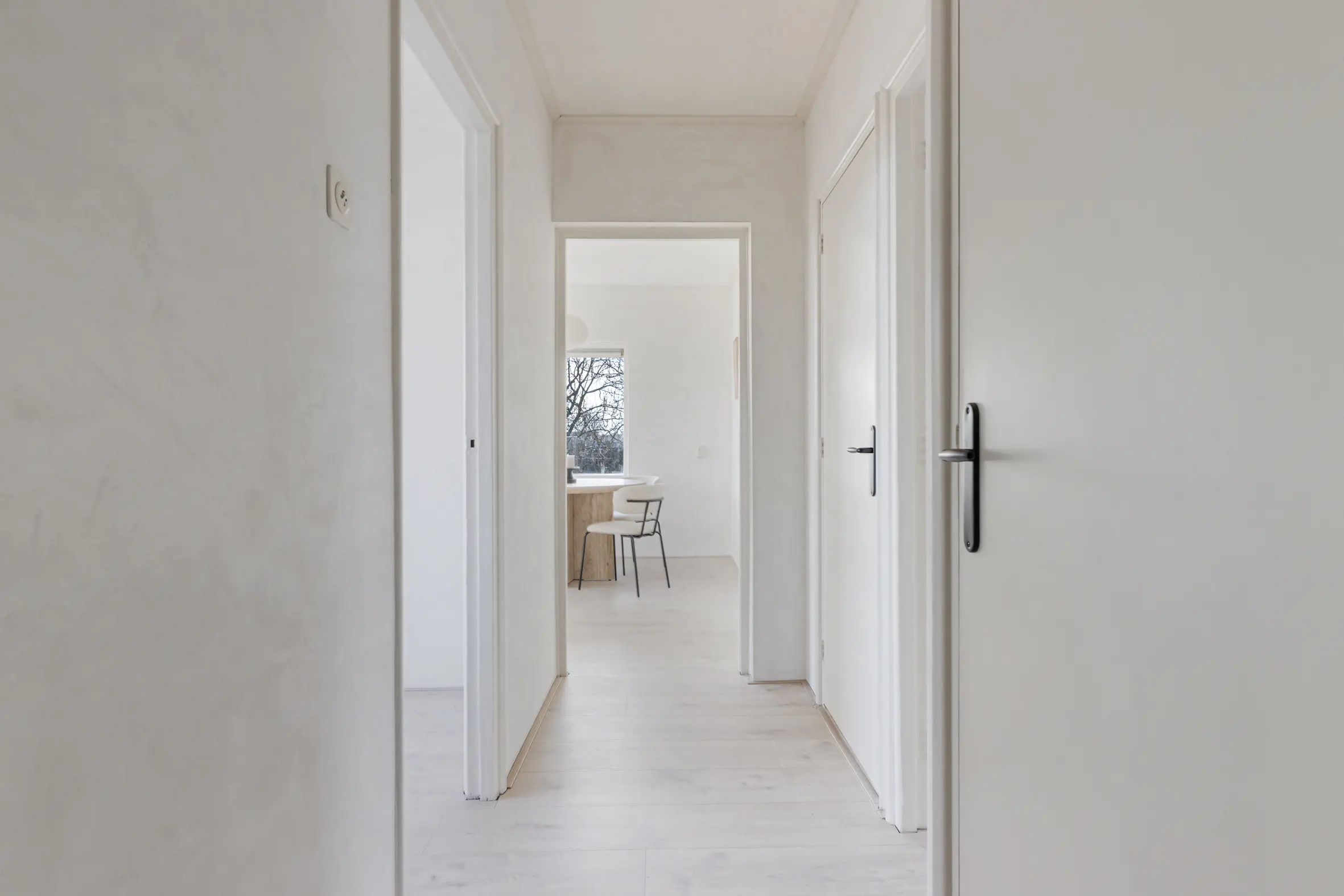 - Overal laminaat en strak gestuukte wanden;