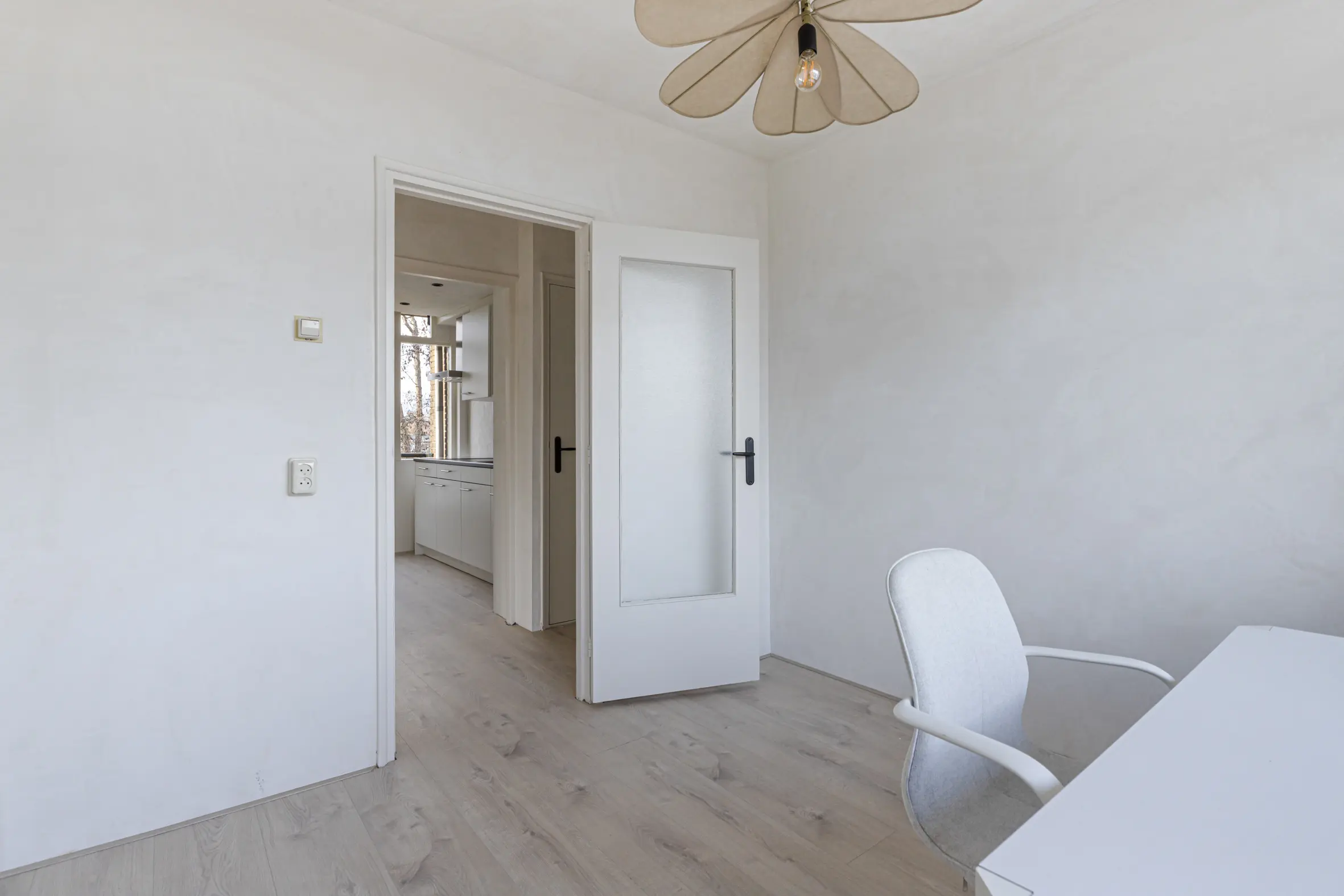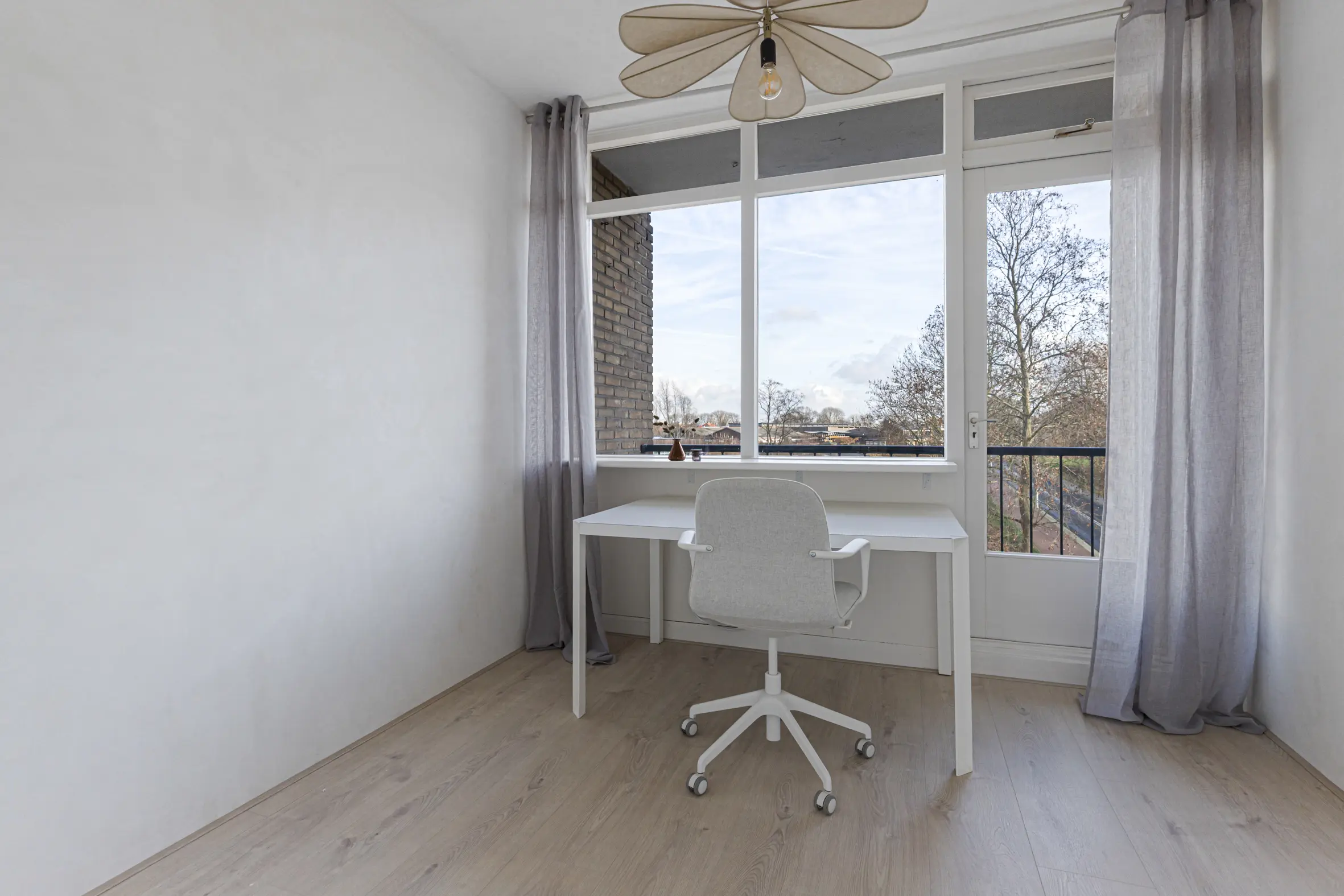 De tweede slaapkamer ligt aan de achterzijde van het appartement en is ook geschikt als werk- of logeerkamer. Hiernaast ligt ook de 3e slaapkamer met deur naar het balkon op het oosten.