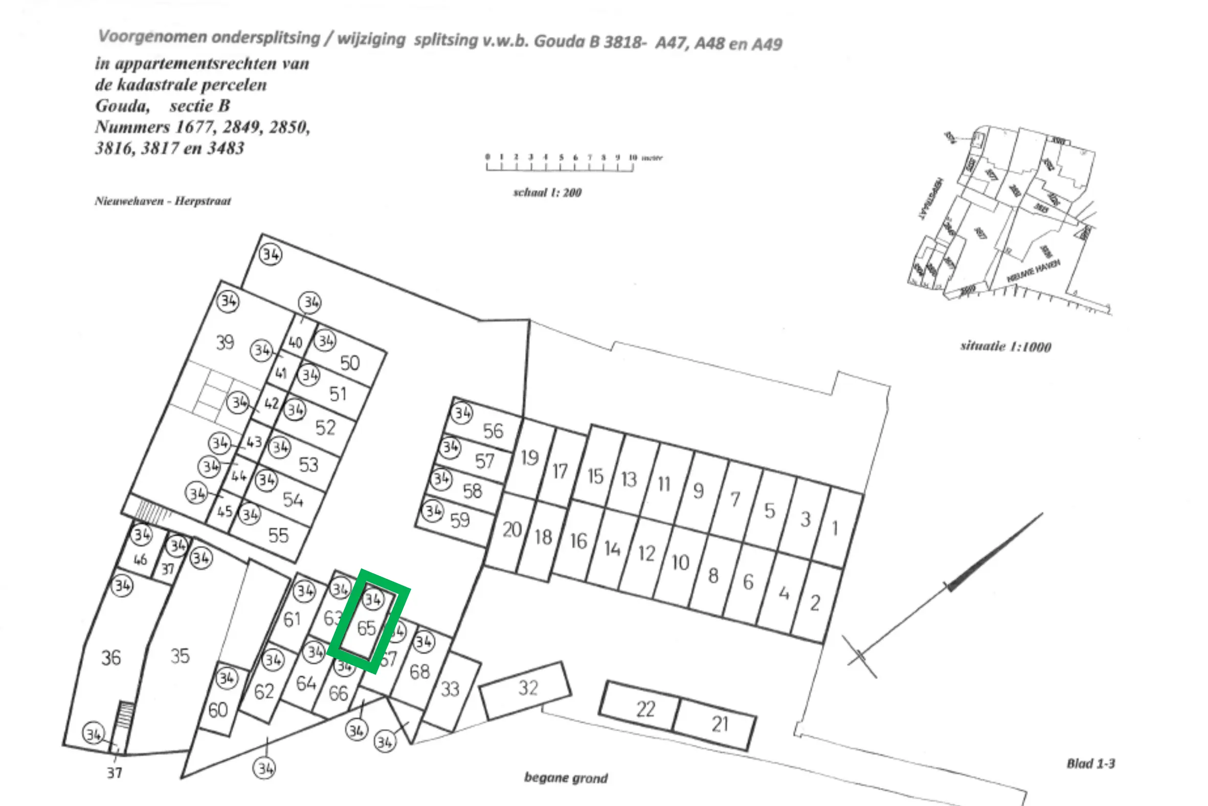 De parkeerplaats is kadastraal bekend onder : gemeente Gouda, sectie B, perceel nummer 3818, appartementsindexnummer: A65. De VvE bijdrage is ca. € 206,- per jaar