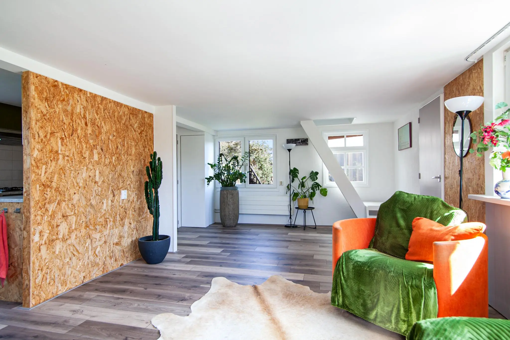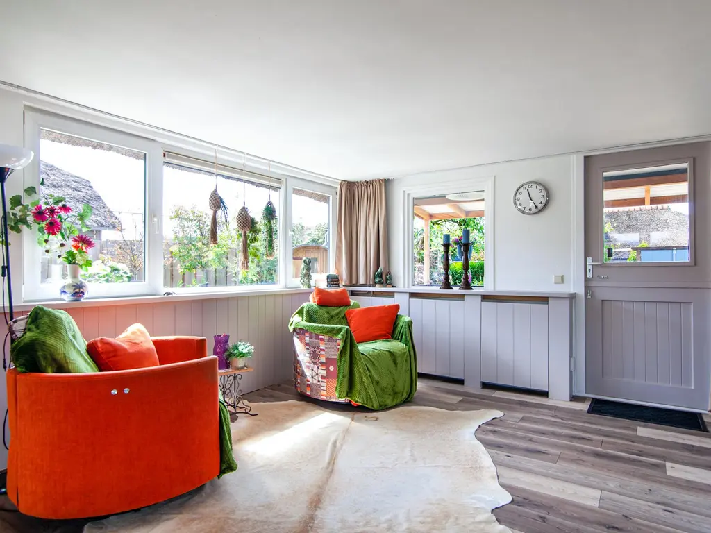 Via de veranda is er toegang tot de woning in de woonkamer. Deze ruimte is verrassend groot en biedt voldoende plek voor een comfortabel bankstel en bijvoorbeeld een boekenkast of werkplekje.