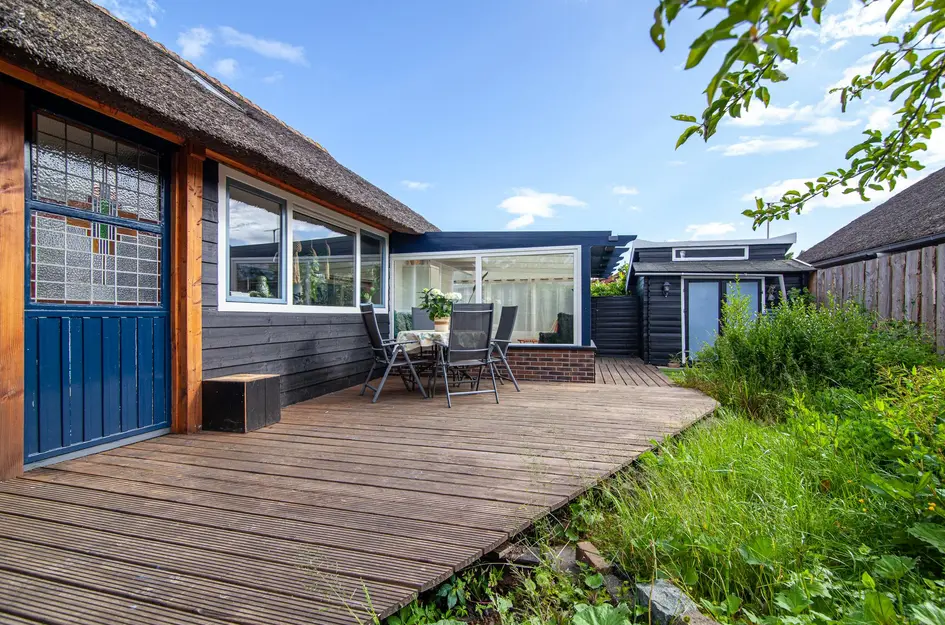 Midden in het groen, aan de rand van Moordrecht op recreatiepark De Poldertuin, ligt deze vrijstaande rietgedekte recreatiewoning op een bijzonder ruim perceel van maar liefst 387 m². Het perceel biedt veel privacy en heeft een gunstige zonligging. De woning ligt aan het eind van een autovrij pad, vlakbij de oevers van de Ringvaart. Een sfeervolle plek om te onthaasten, dichtbij de stad maar middenin het groen.