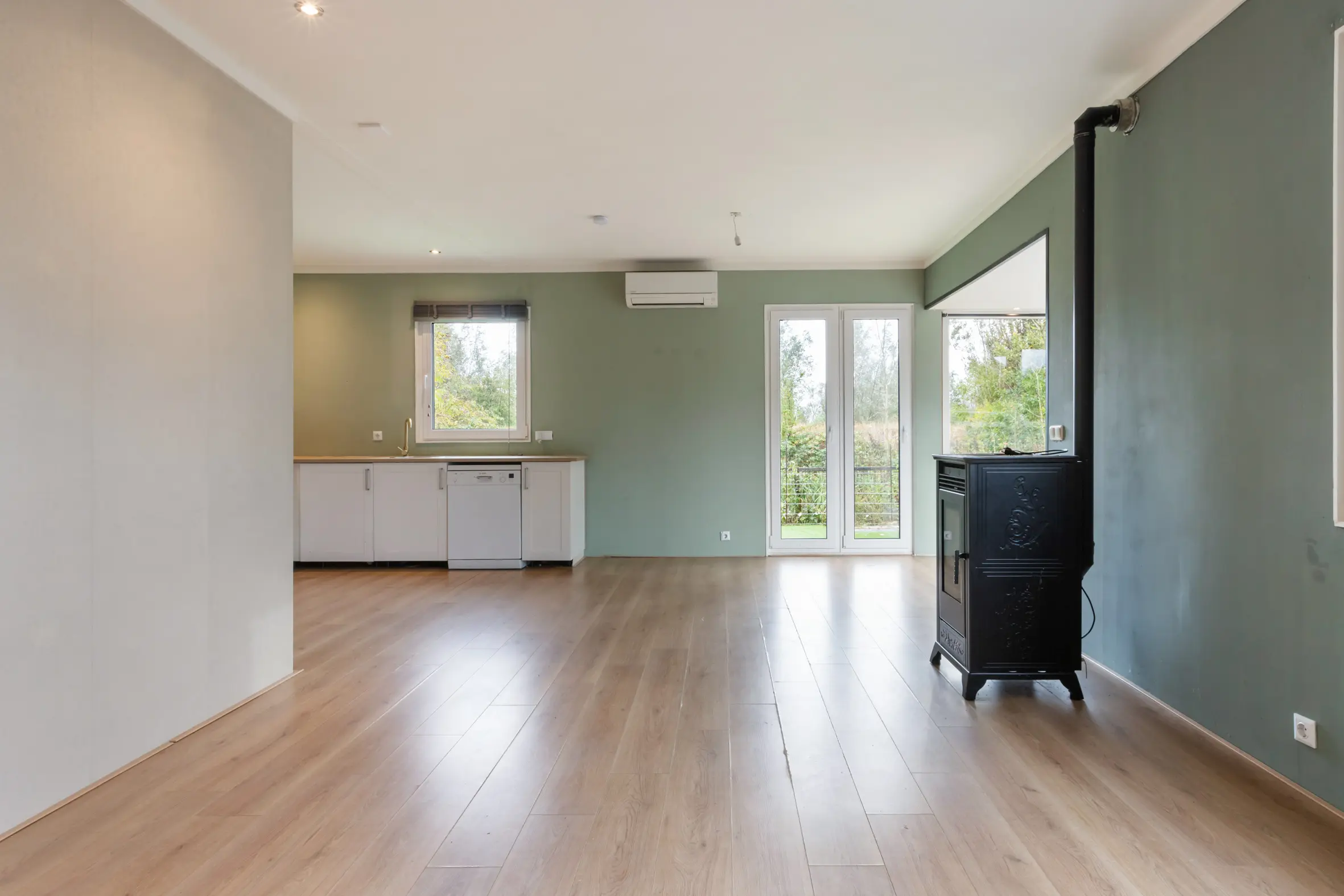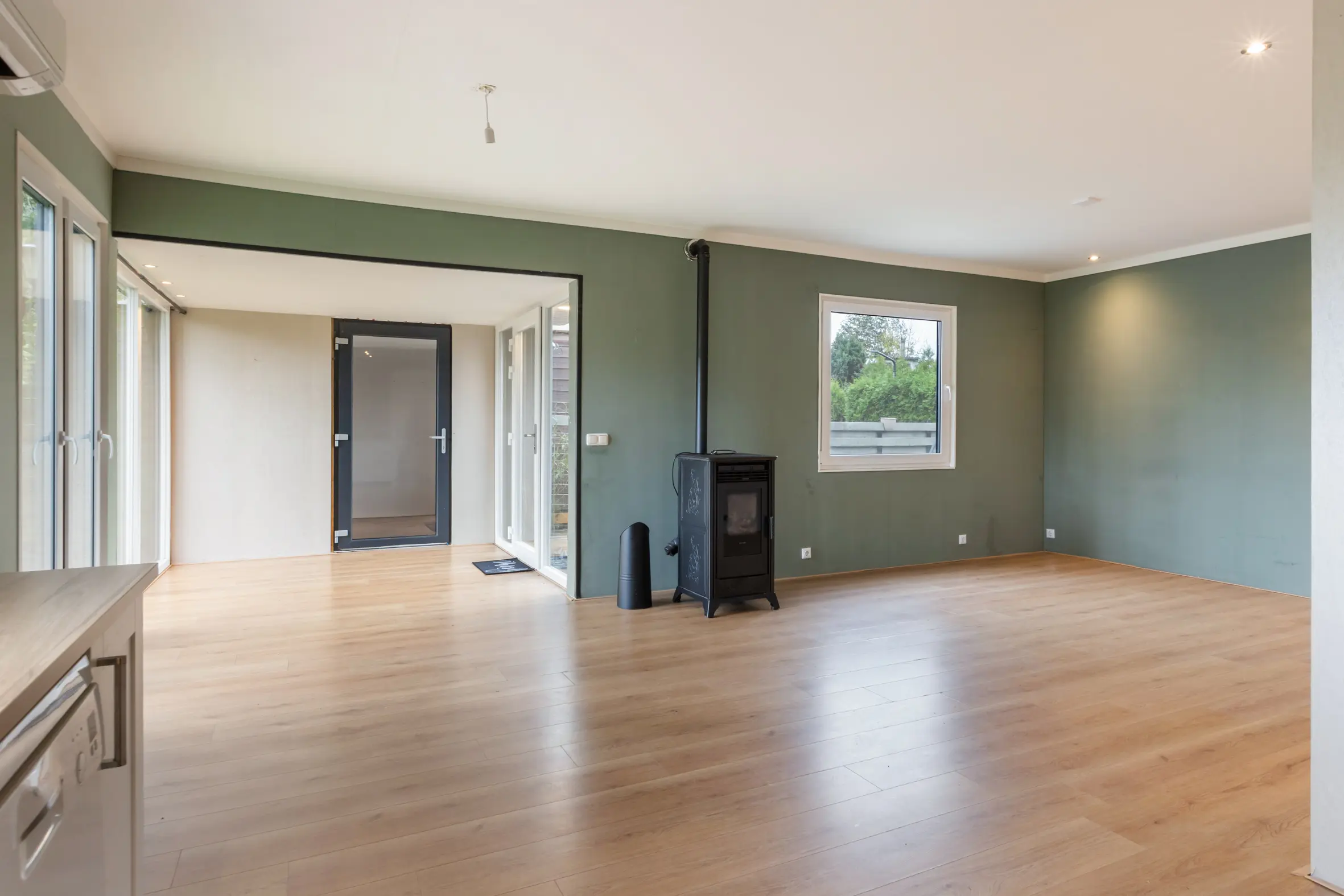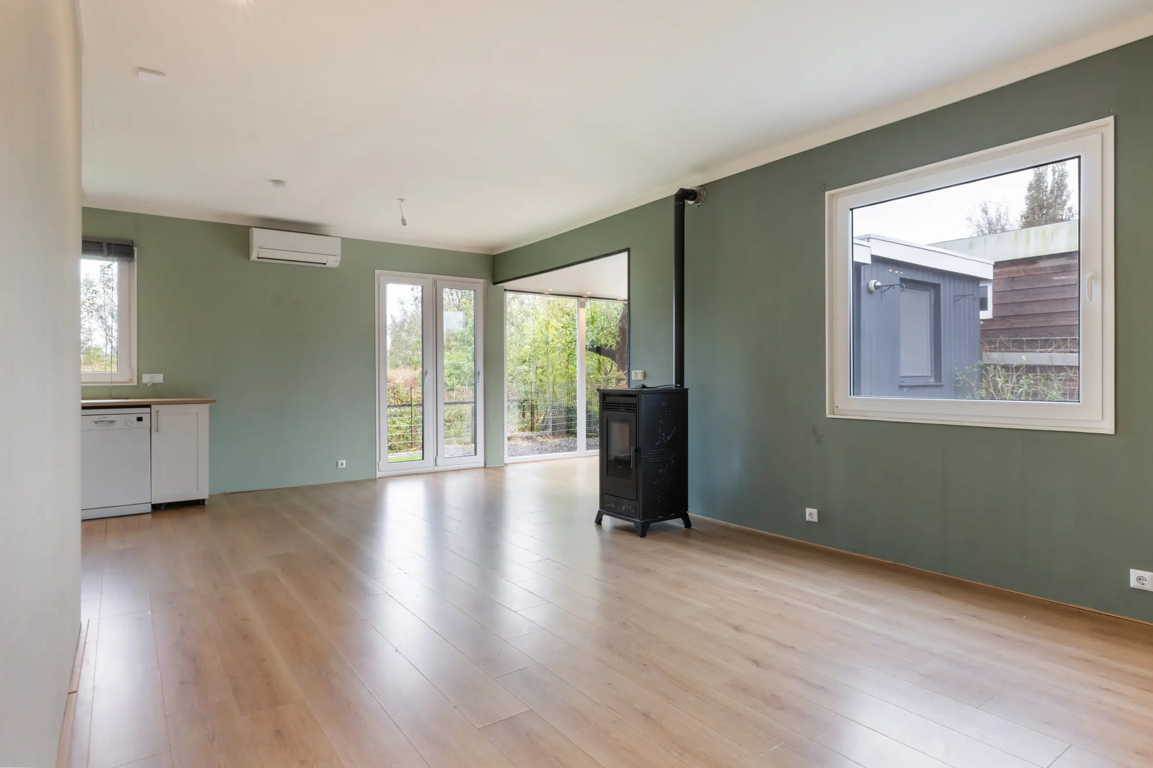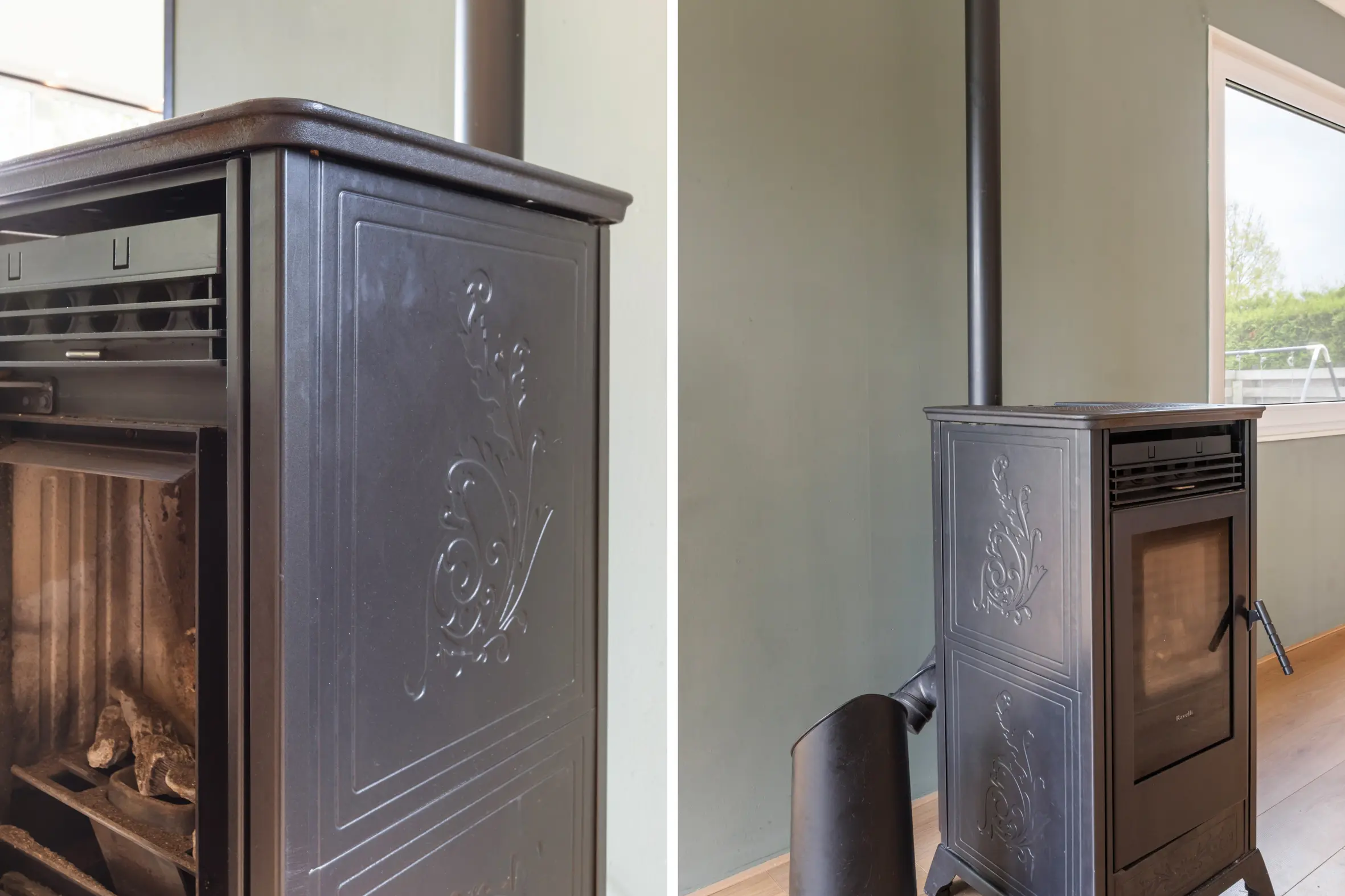 - Verwarming via pelletkachel en airco;