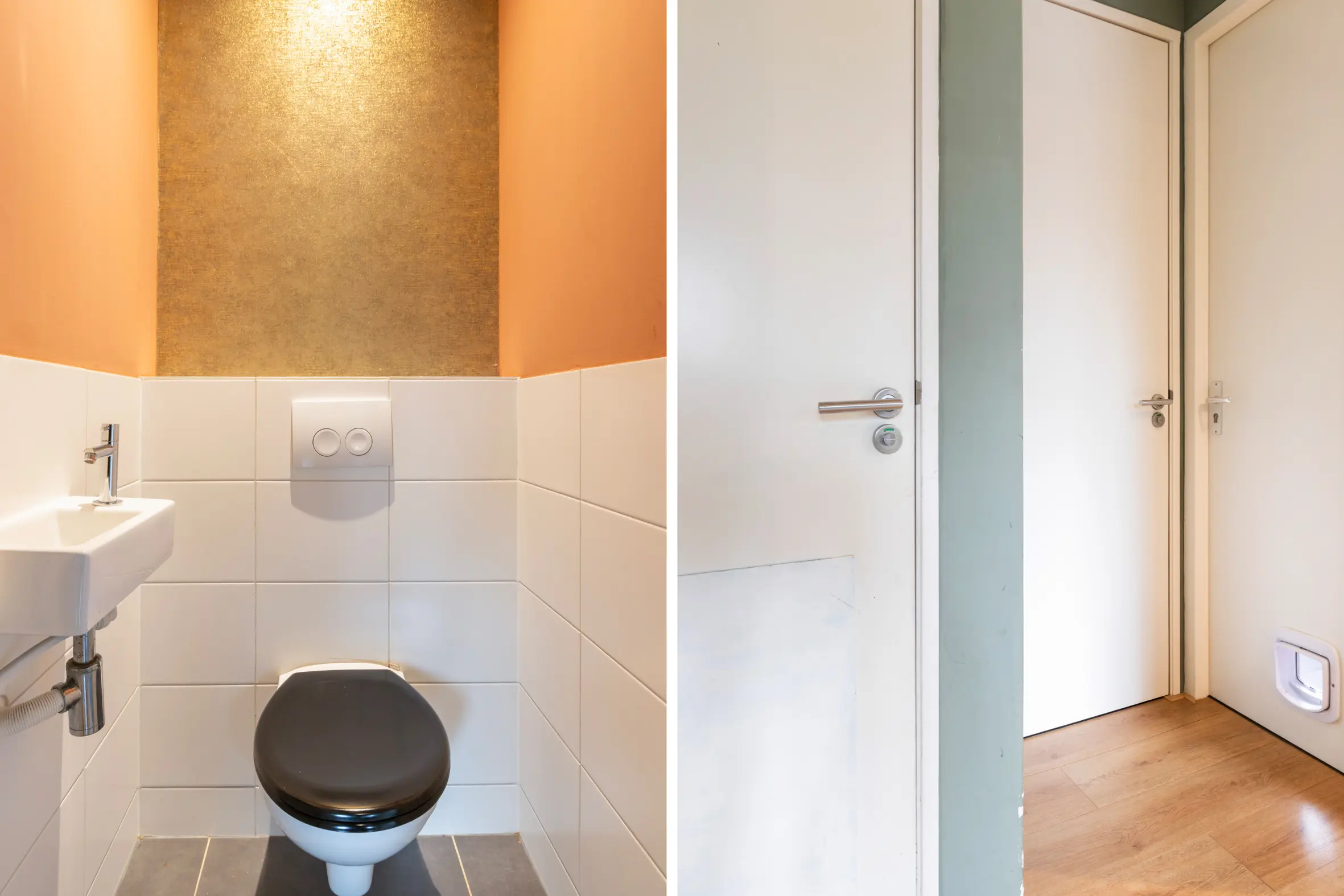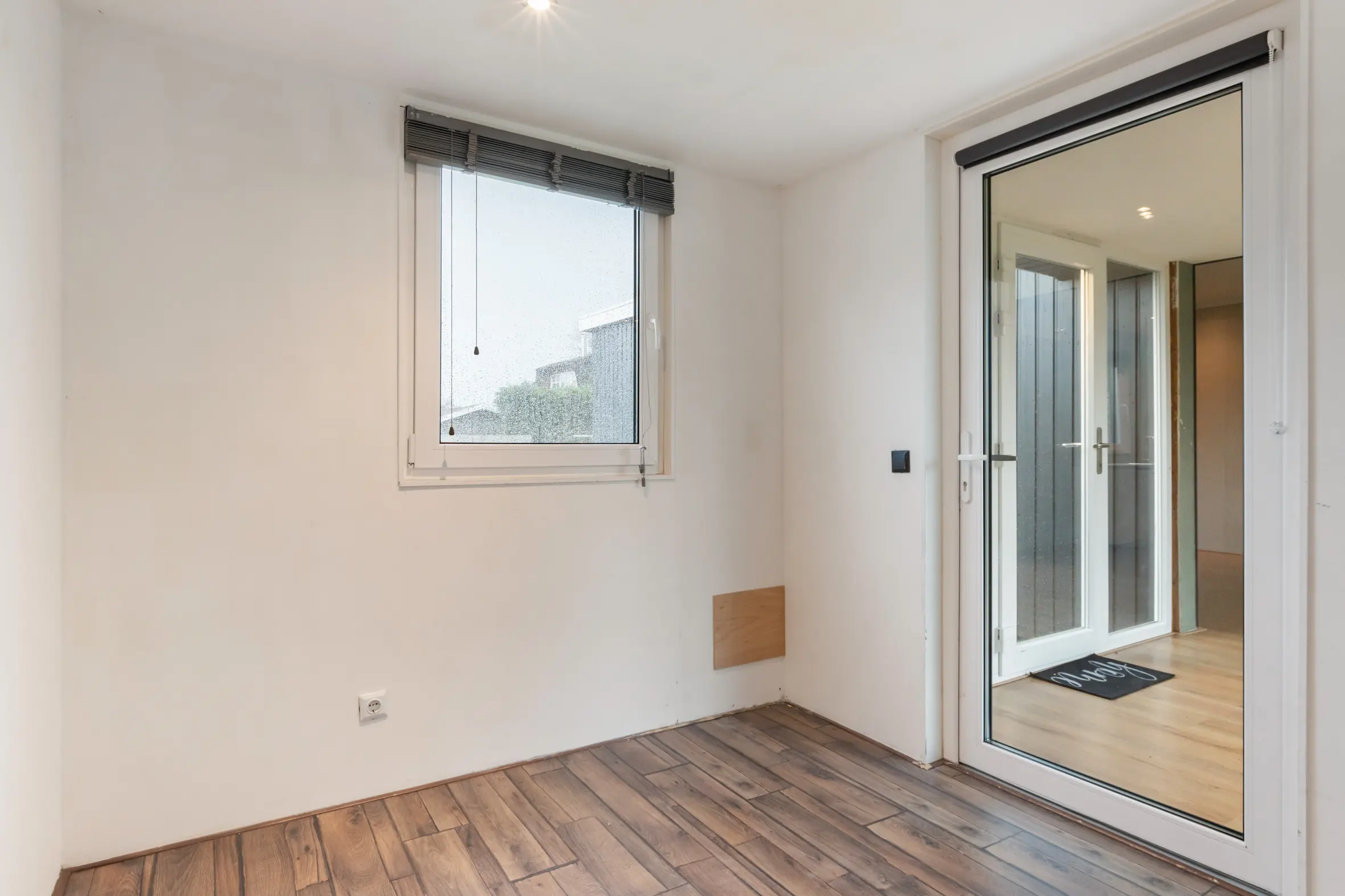 Via de entree kom je in een hal met toegang tot de meterkast, toiletruimte met fonteintje en een kast met de boiler. De voormalige schuur is bij de woning betrokken en vormt nu een extra kamer, welke bruikbaar is als werk- of hobbyruimte.